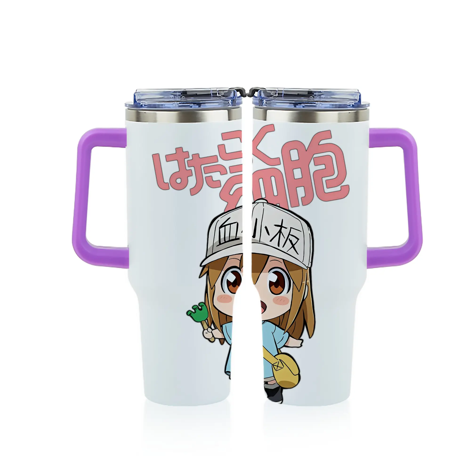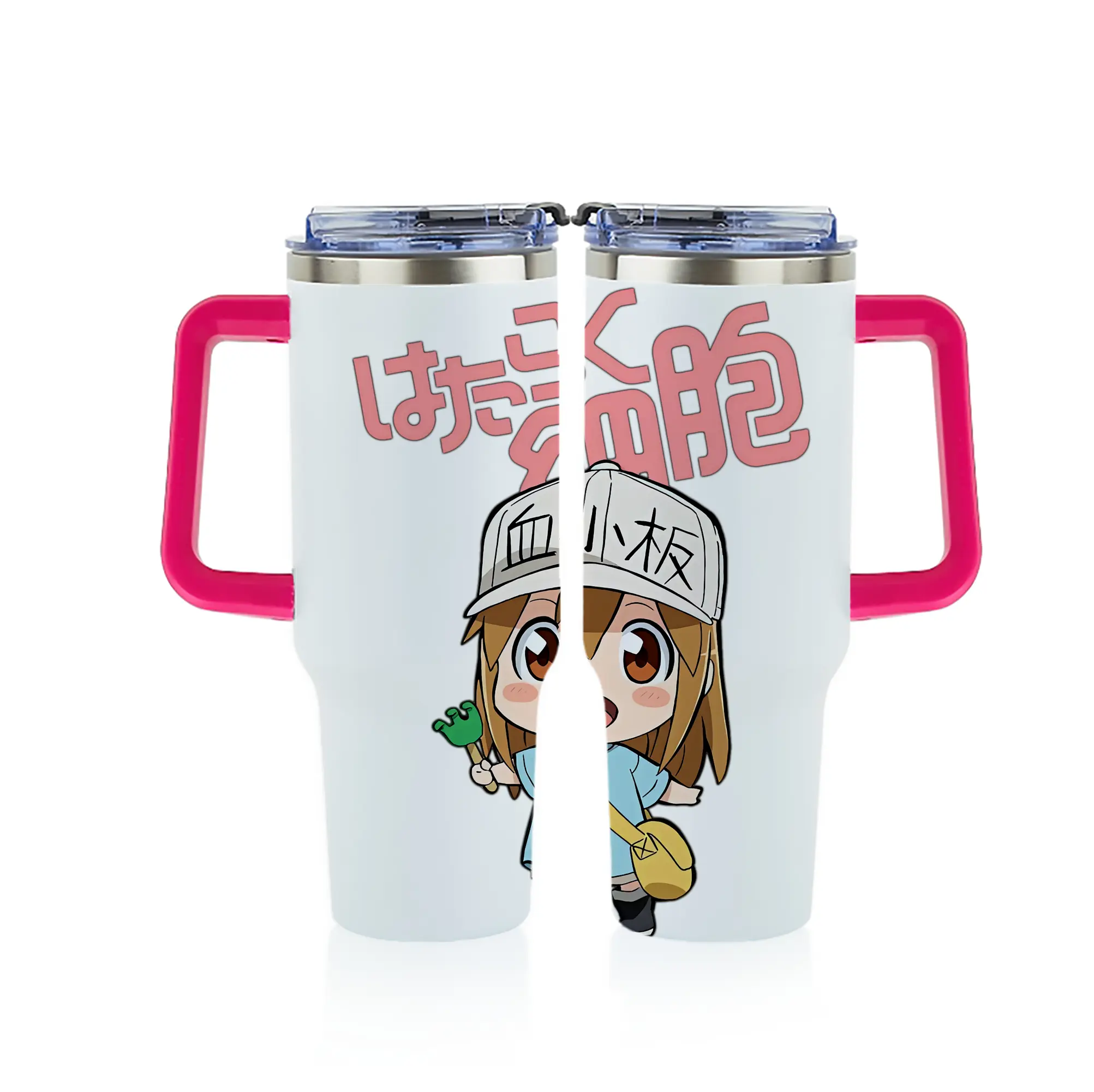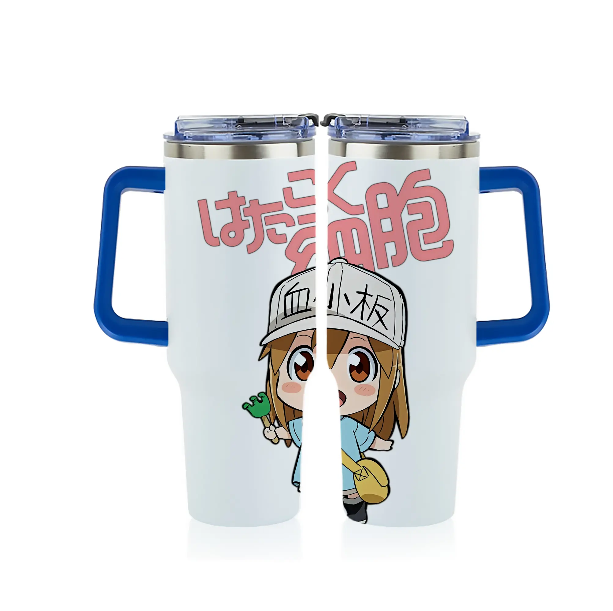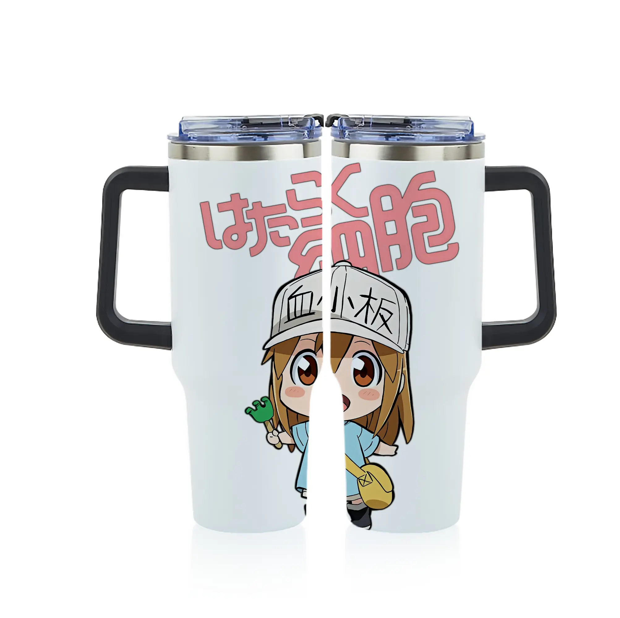 はたらく細胞 グッズ,血小板 - 1200mL フルプリント車用タンブラー ・ 304ステンレス 内側 ・ 201ステンレス 外側 ・ 保温 保冷 ・ 通勤 ドライブ アウトドア用