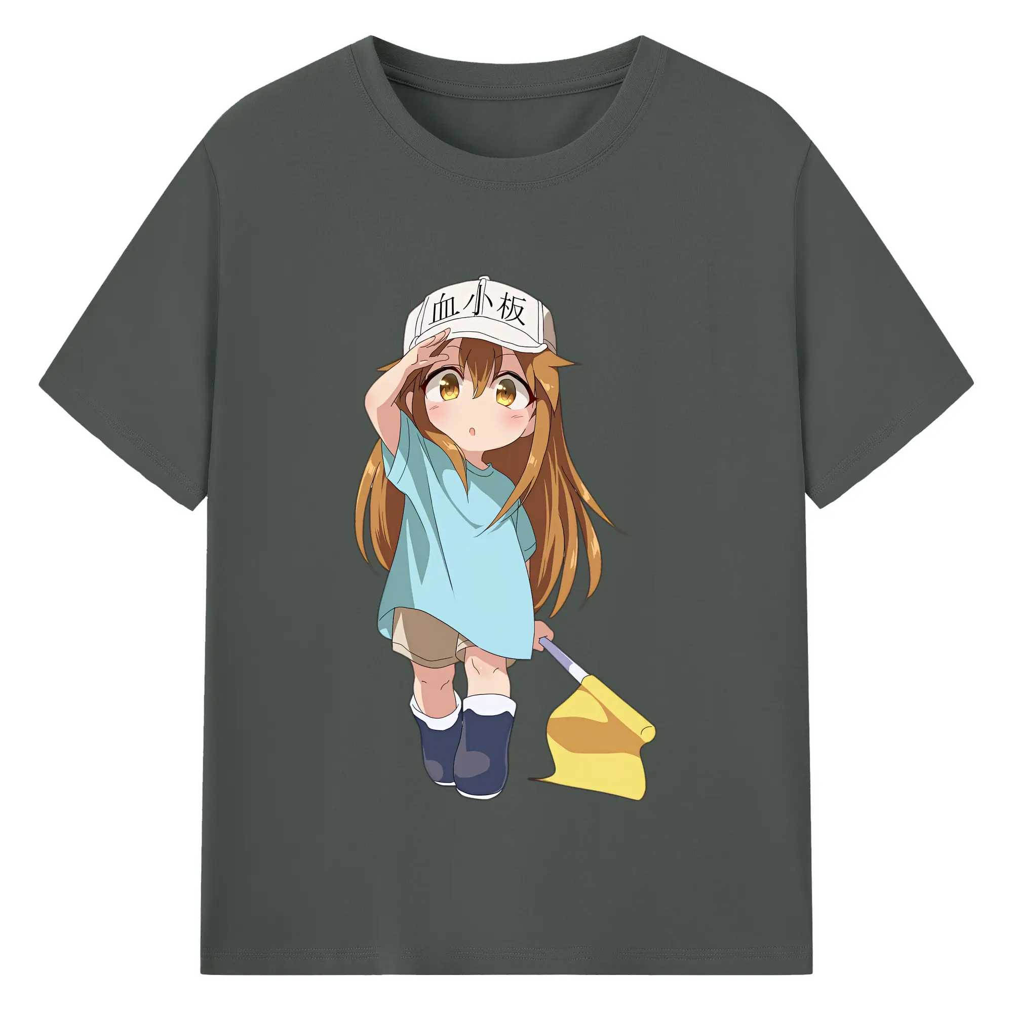 はたらく細胞 グッズ,血小板 - 綿100% ヴィンテージ風 半袖Tシャツ ・ フロントプリント ・ 柔らか肌触り ・ 通気性 快適 ・ スポーツ カジュアル 外出用