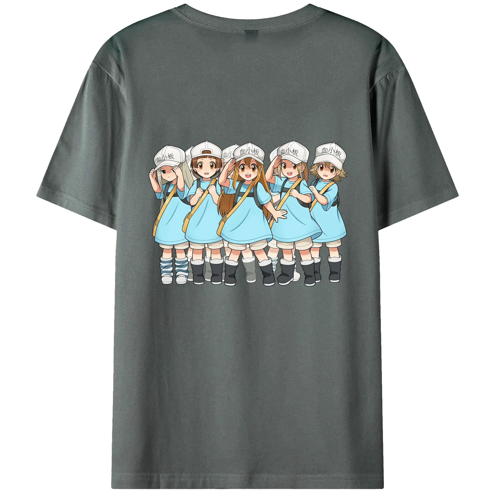 はたらく細胞 グッズ,血小板 - 綿100% 半袖Tシャツ ・ フロントプリント ・ 快適 通気性 ・ 日常使い 散歩 スポーツ用
