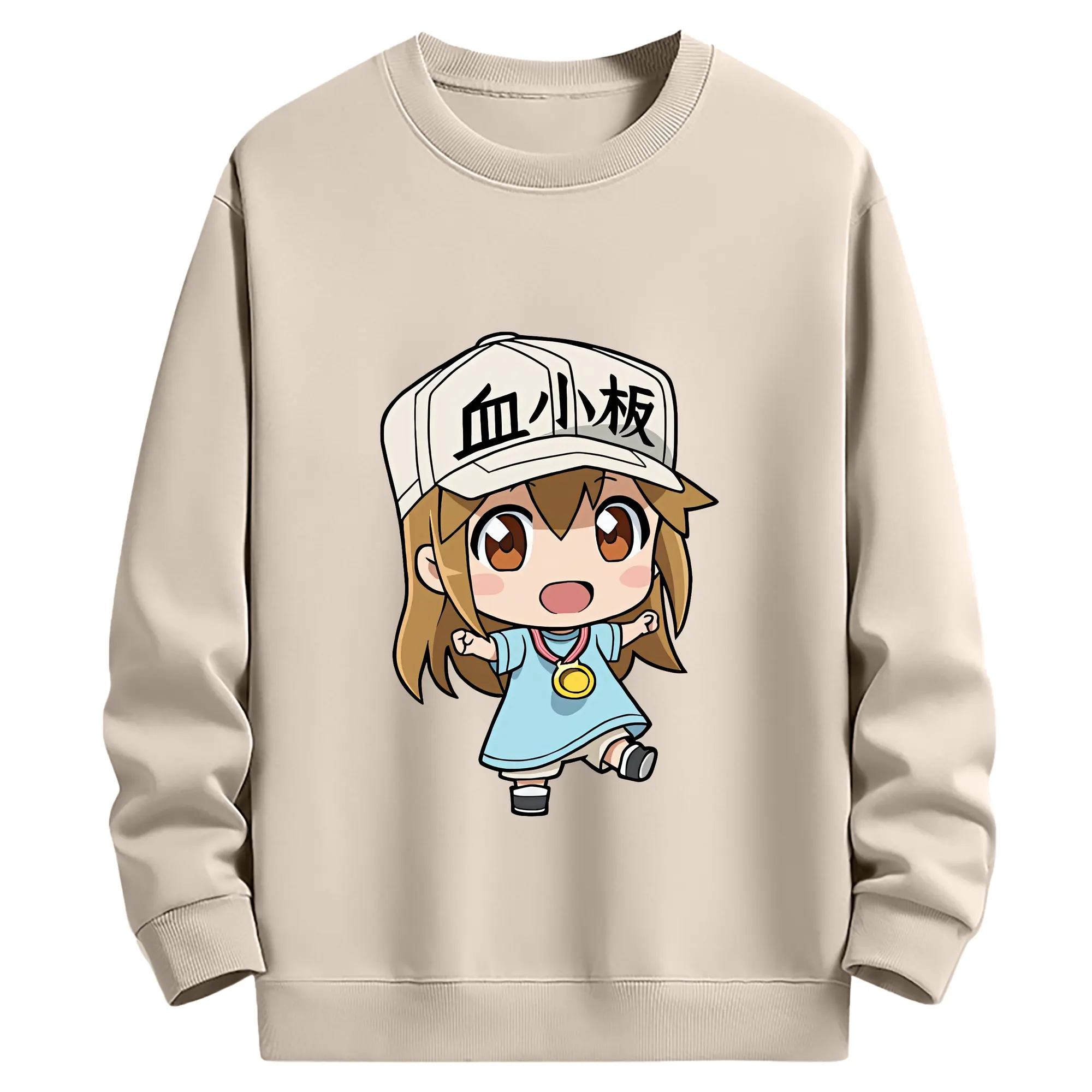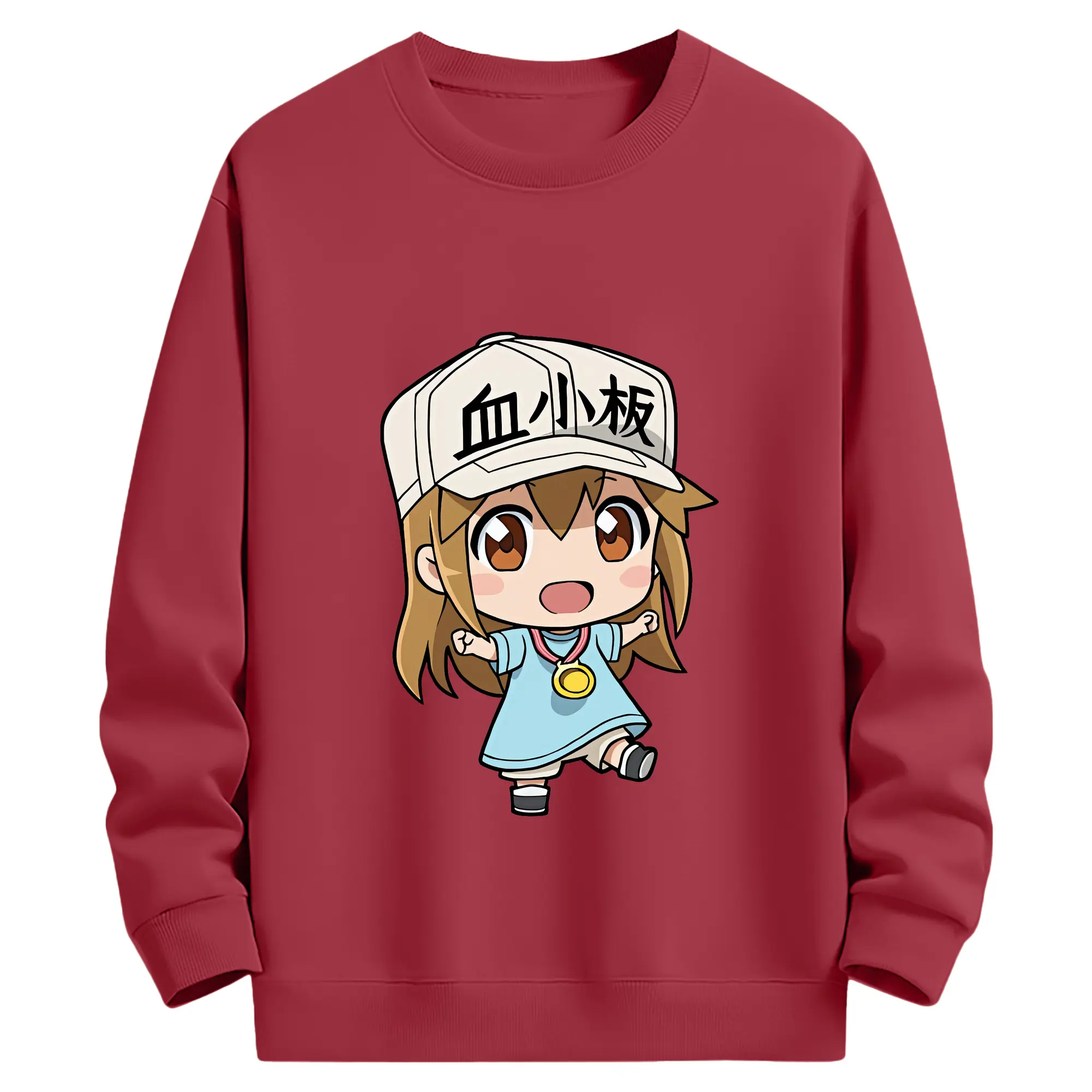 はたらく細胞 グッズ,血小板 - 薄手 クルーネック スウェット 裏毛260g · ポリエステル 春秋向け カジュアル 男女兼用 · トレーナー デイリー スポーツ 散歩に最適