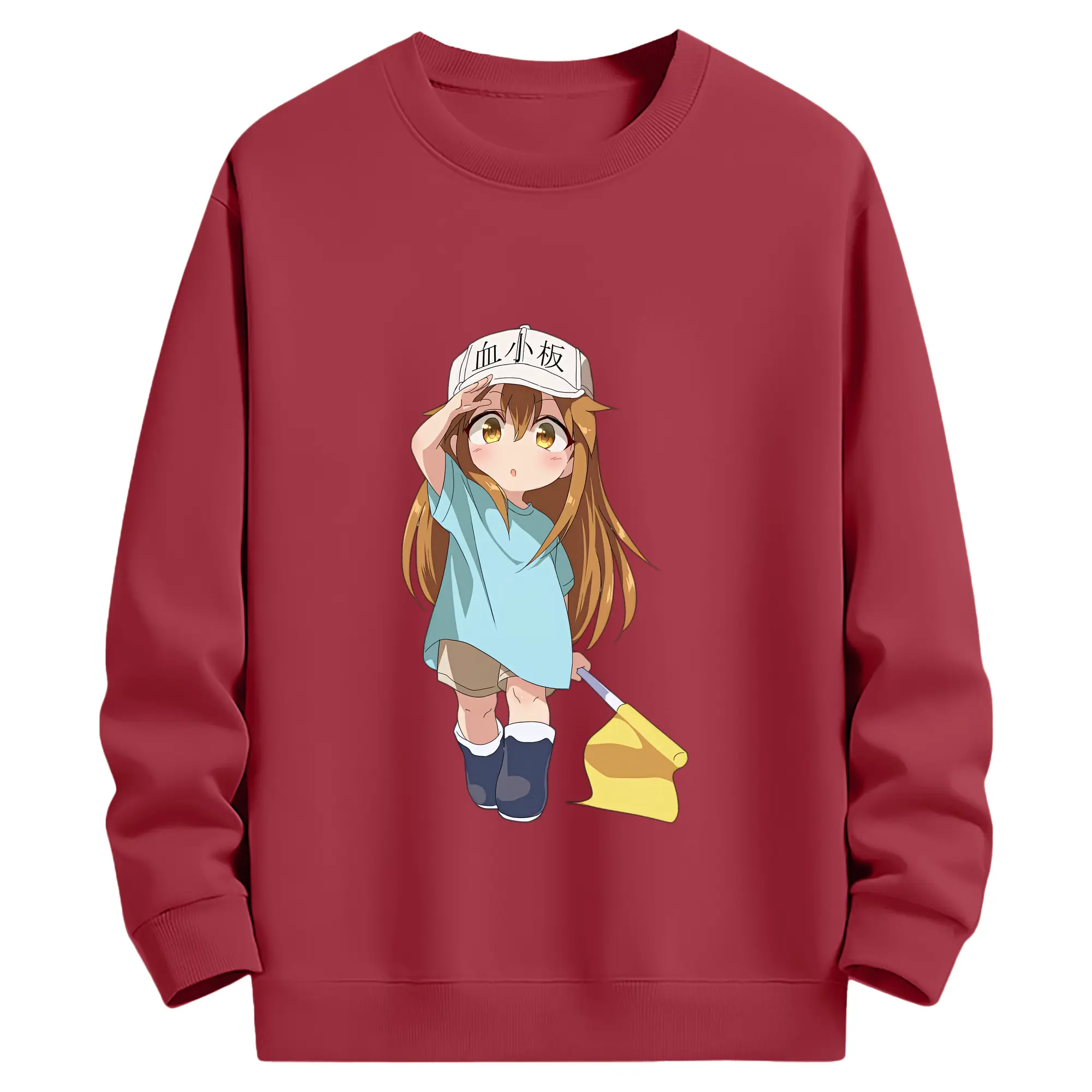 はたらく細胞 グッズ,血小板 - 薄手 クルーネック スウェット 裏毛260g · ポリエステル 春秋向け カジュアル 男女兼用 · トレーナー デイリー スポーツ 散歩に最適