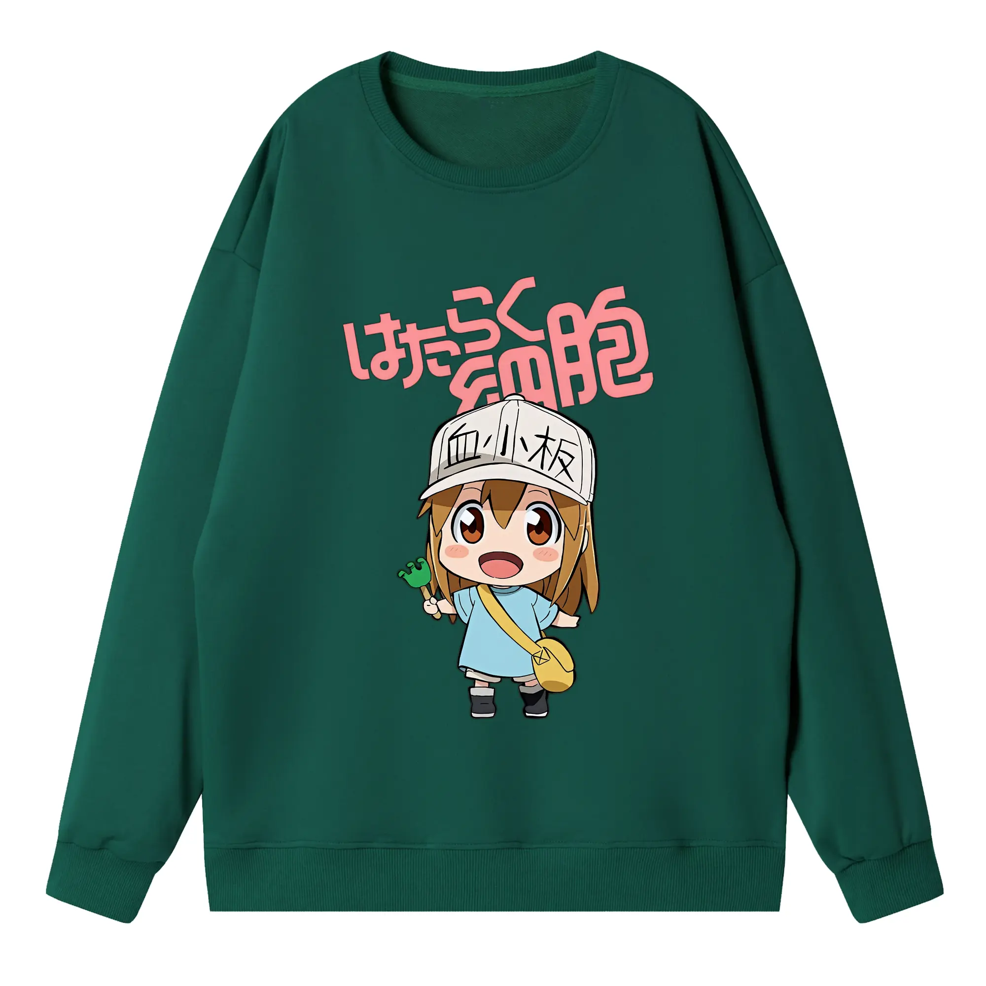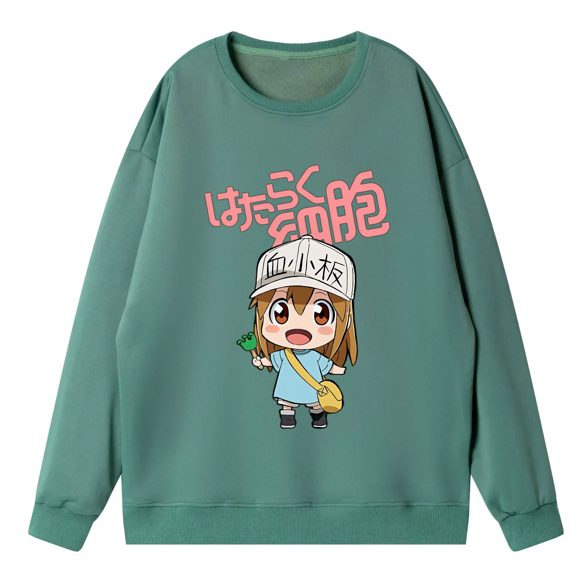 はたらく細胞 グッズ,血小板 - 高品質 クルーネック スウェット ・ コットン59% ポリエステル41% ・ ユニセックス 長袖 トレーナー ・ カジュアル デイリー スポーツ 散歩用