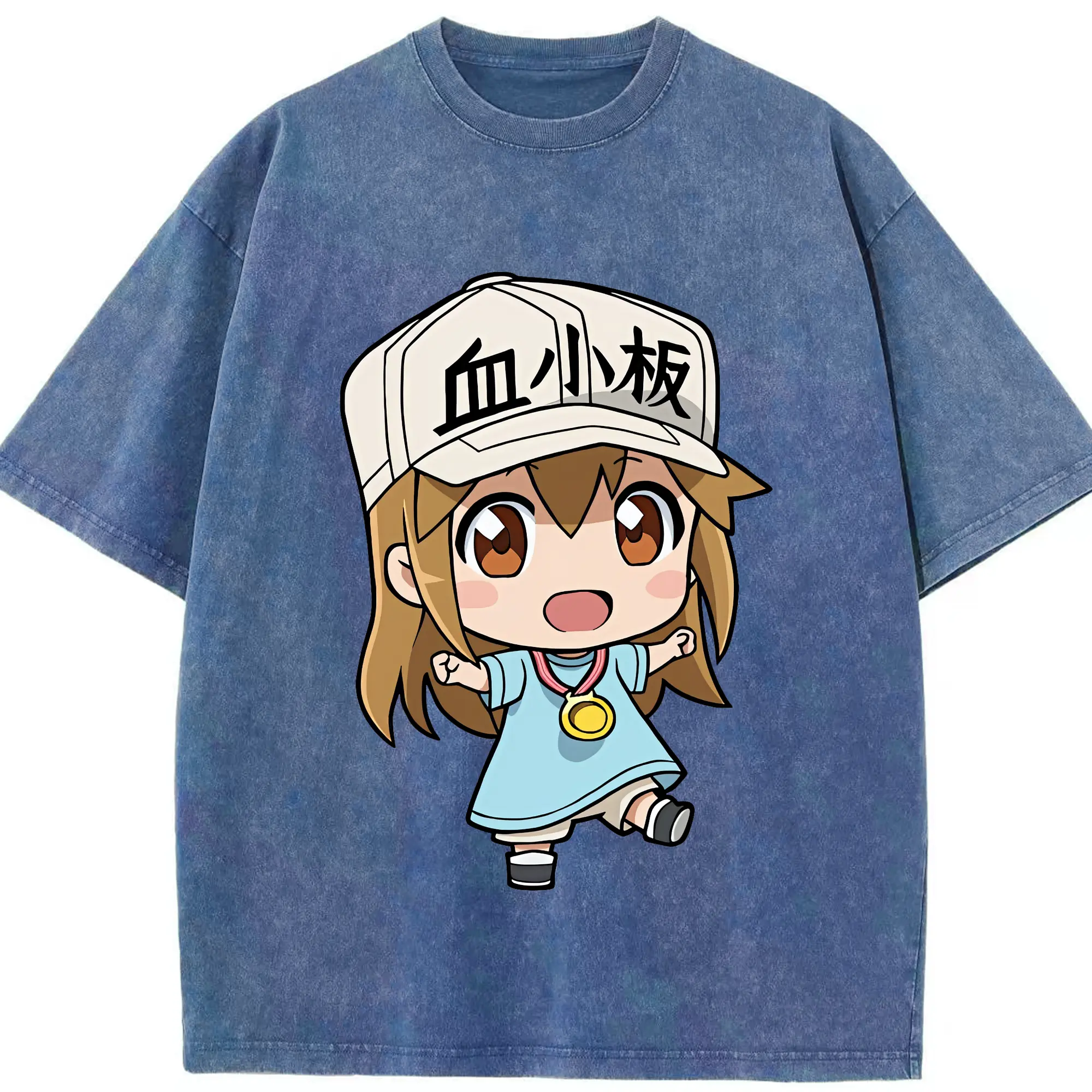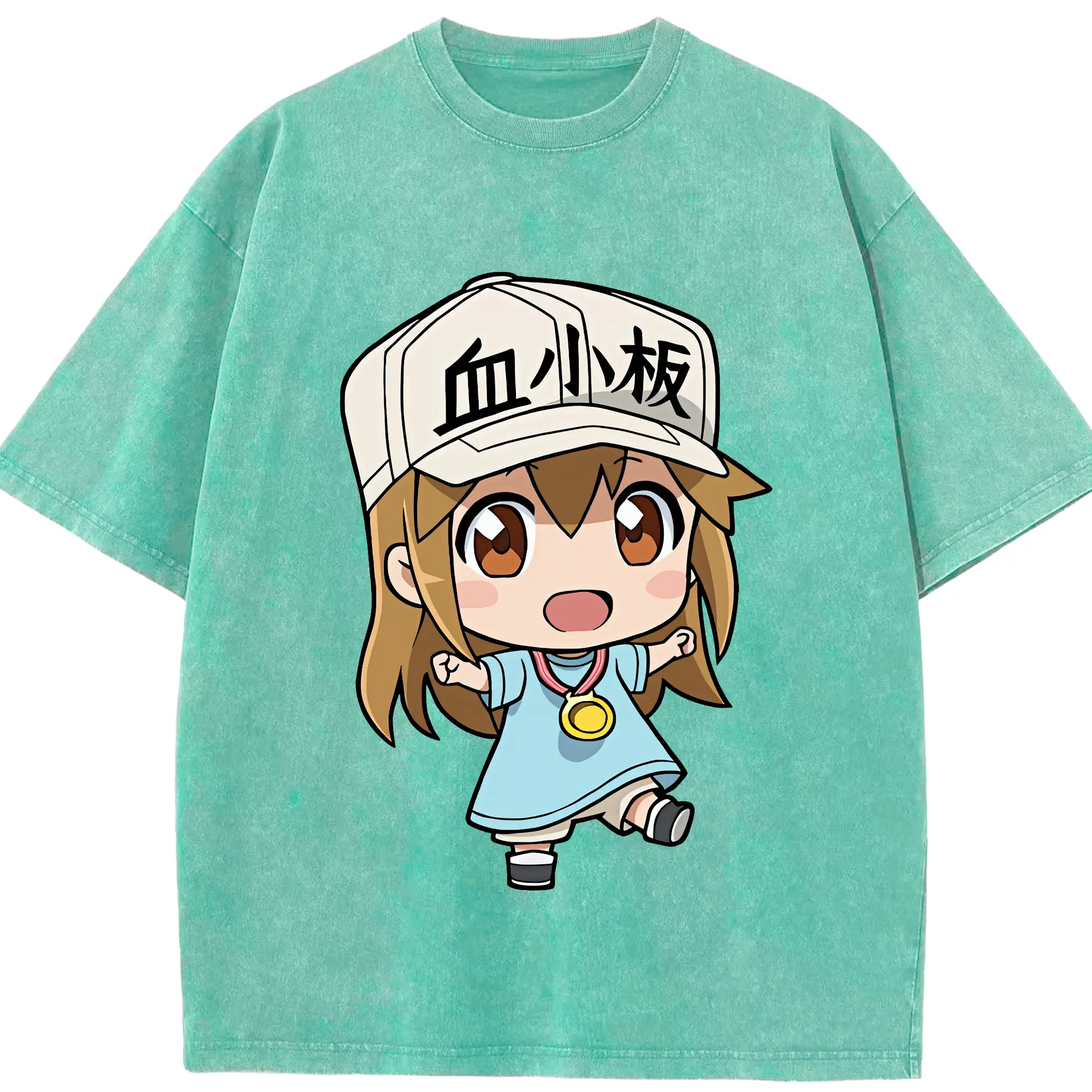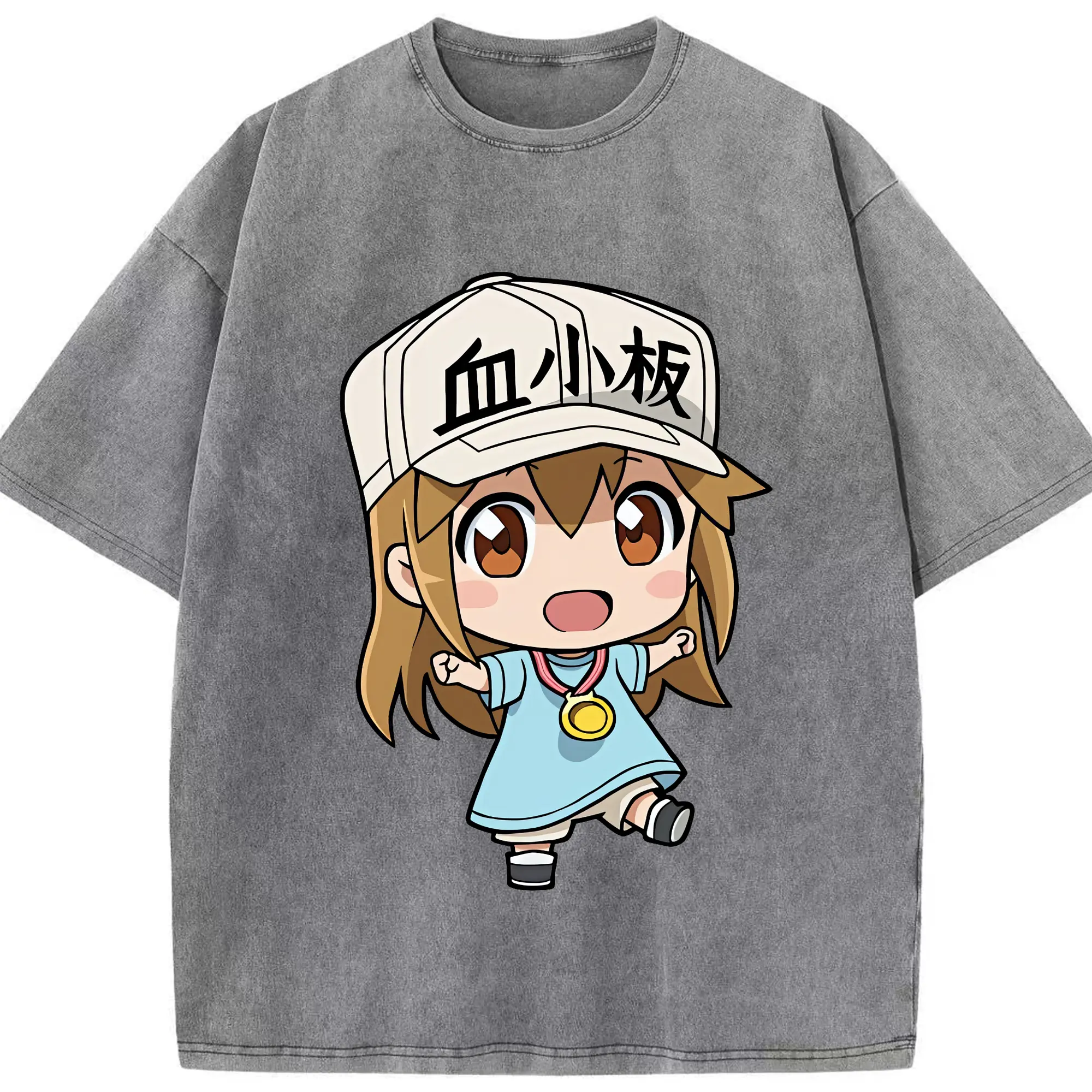 はたらく細胞 グッズ,血小板 - 綿100% ヴィンテージ風 半袖Tシャツ ・ 背面プリント ・ 柔らか肌触り ・ 通気性 快適 ・ スポーツ カジュアル 外出用