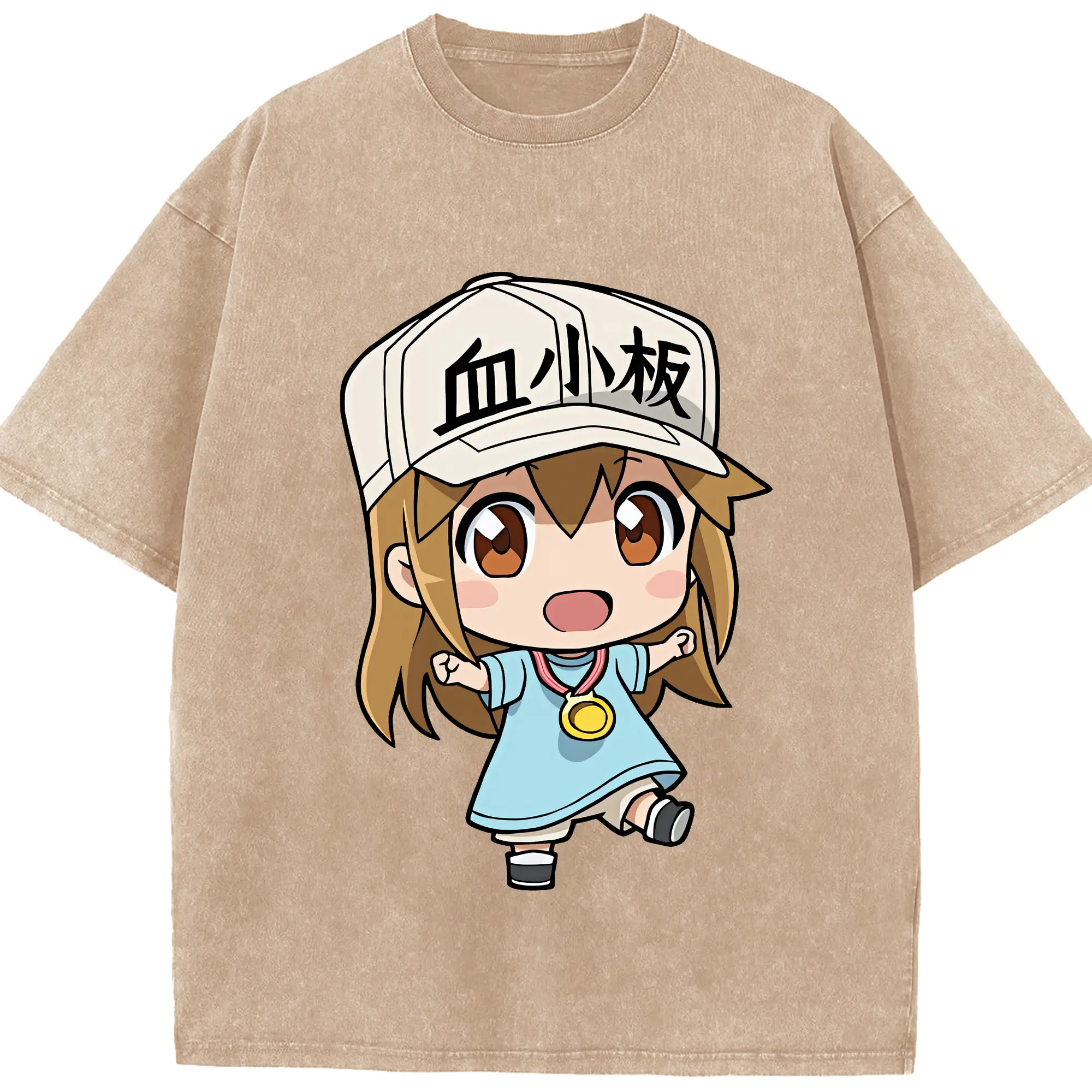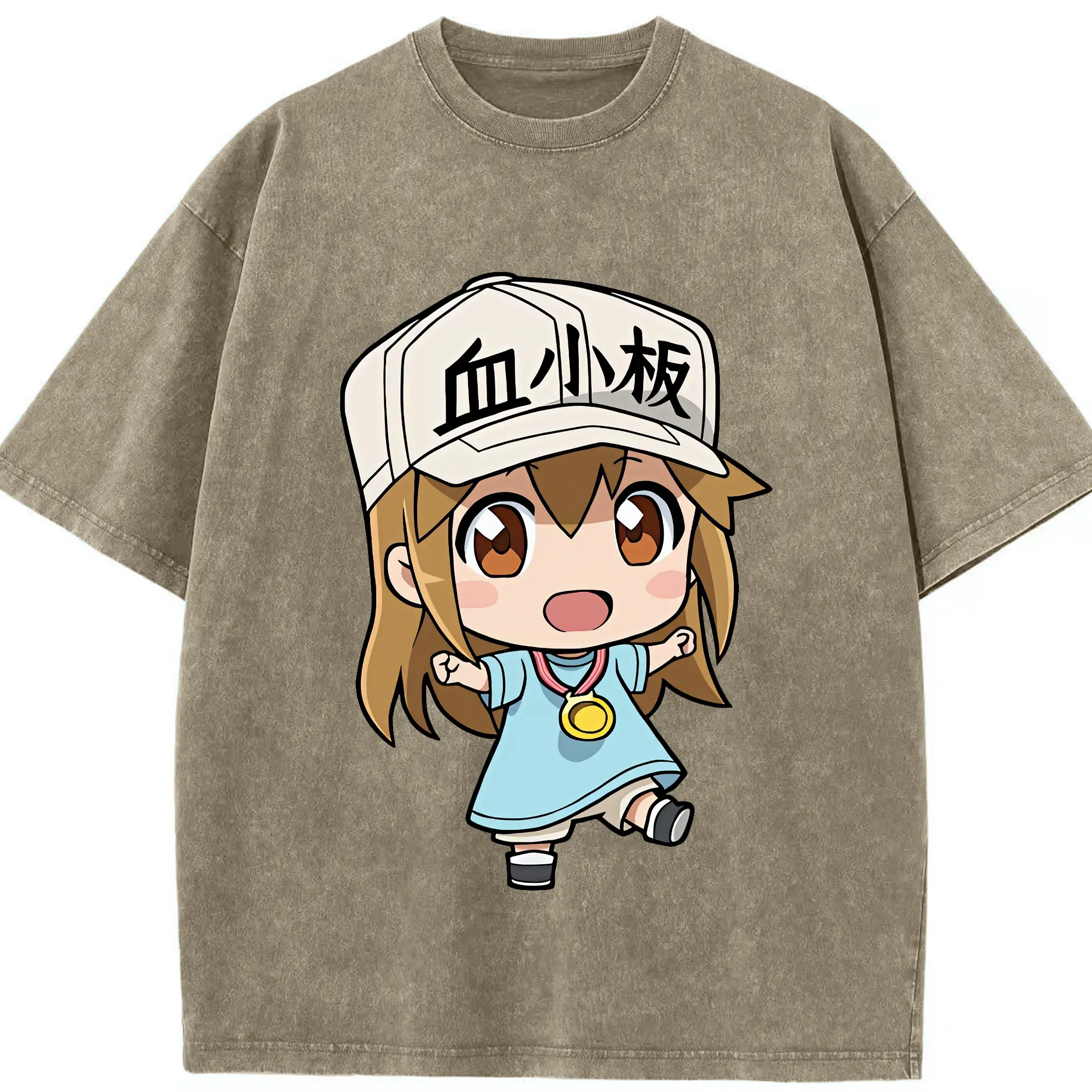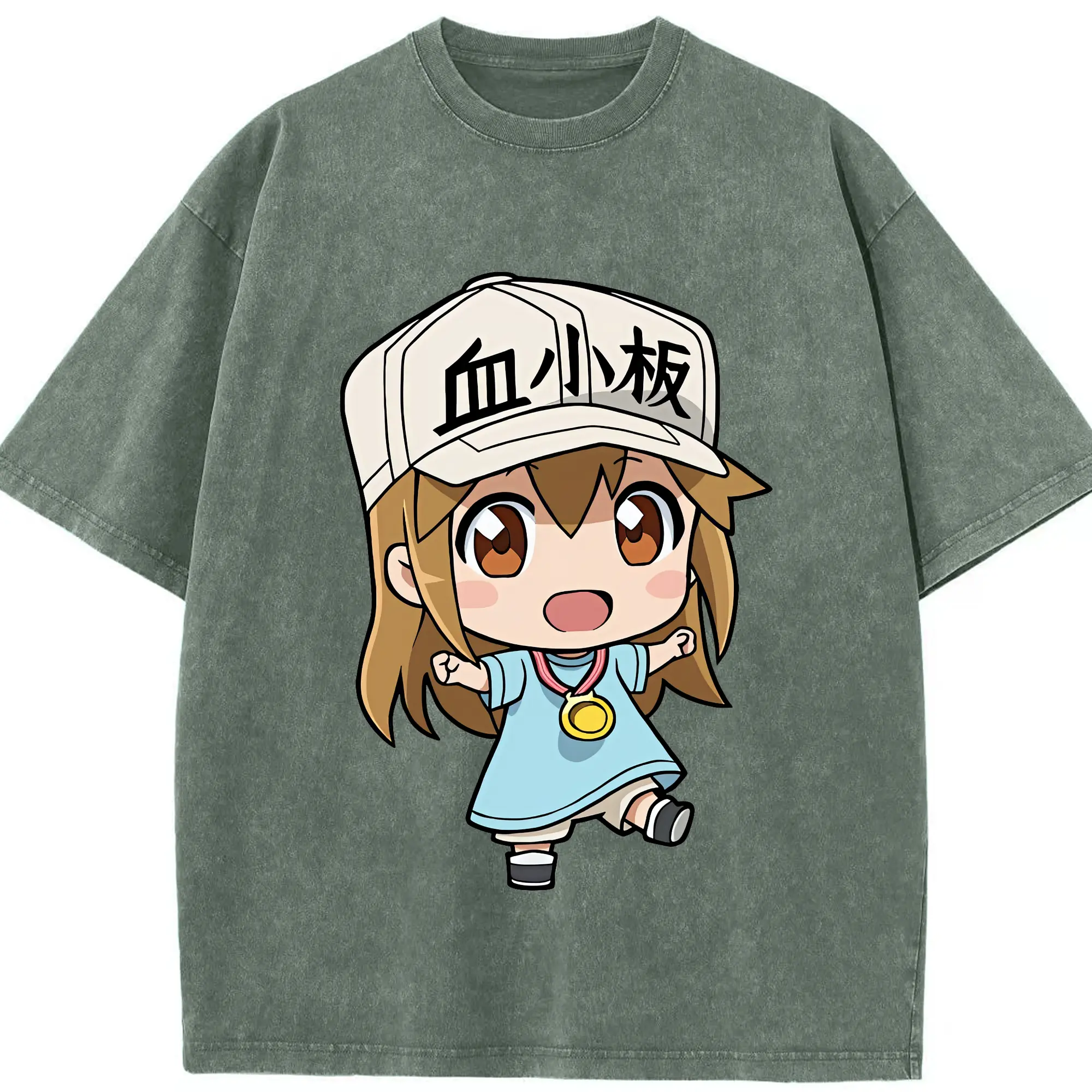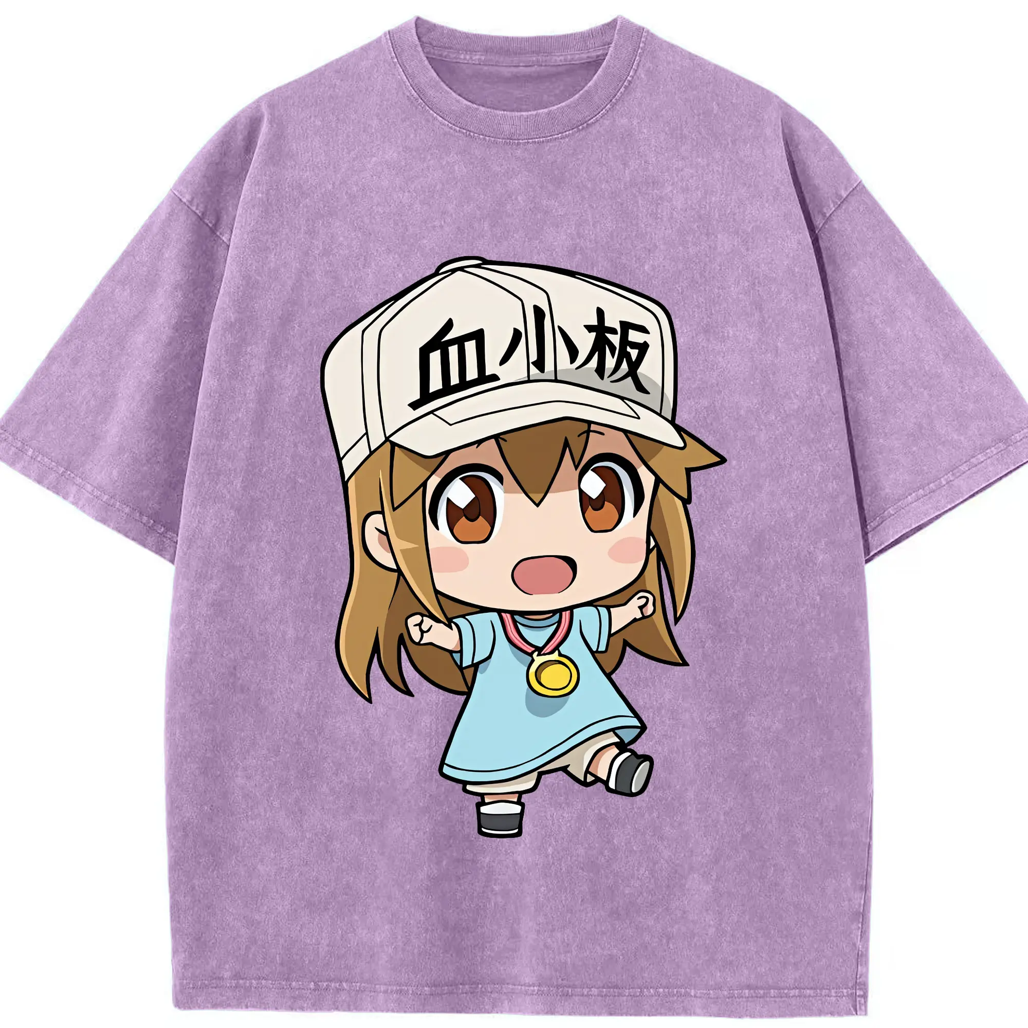 はたらく細胞 グッズ,血小板 - 綿100% ヴィンテージ風 半袖Tシャツ ・ 背面プリント ・ 柔らか肌触り ・ 通気性 快適 ・ スポーツ カジュアル 外出用