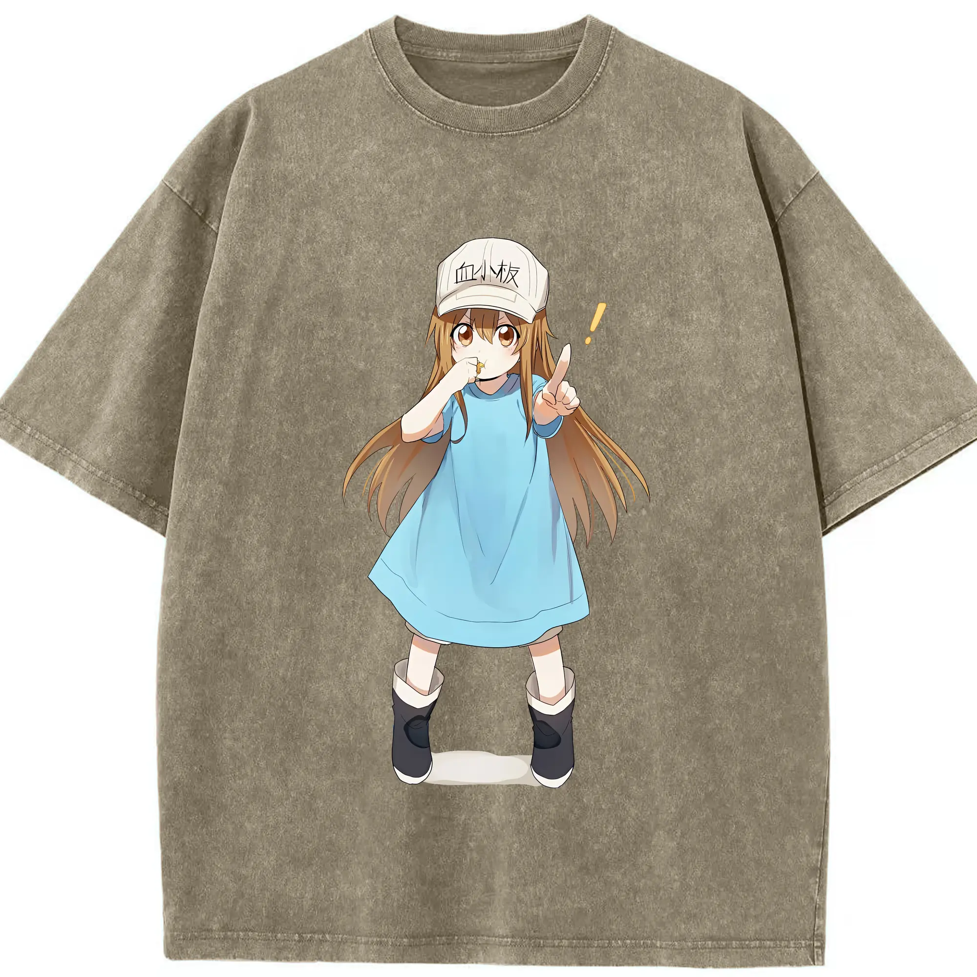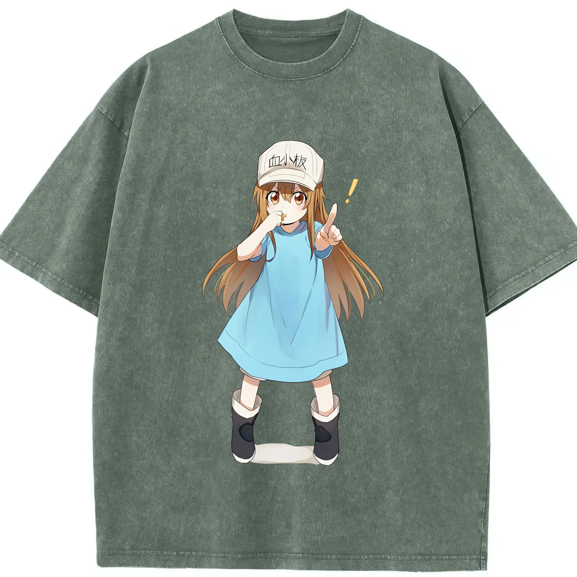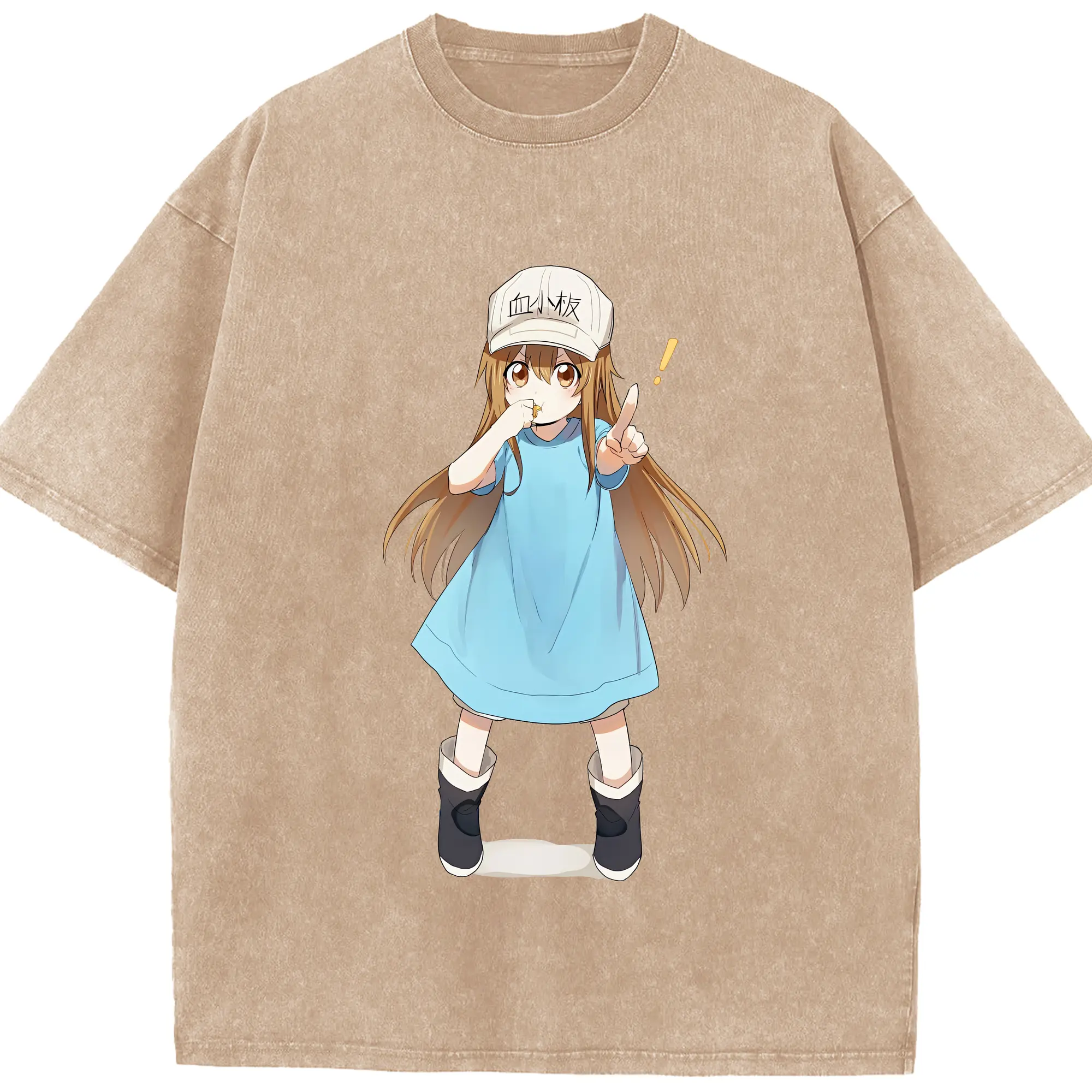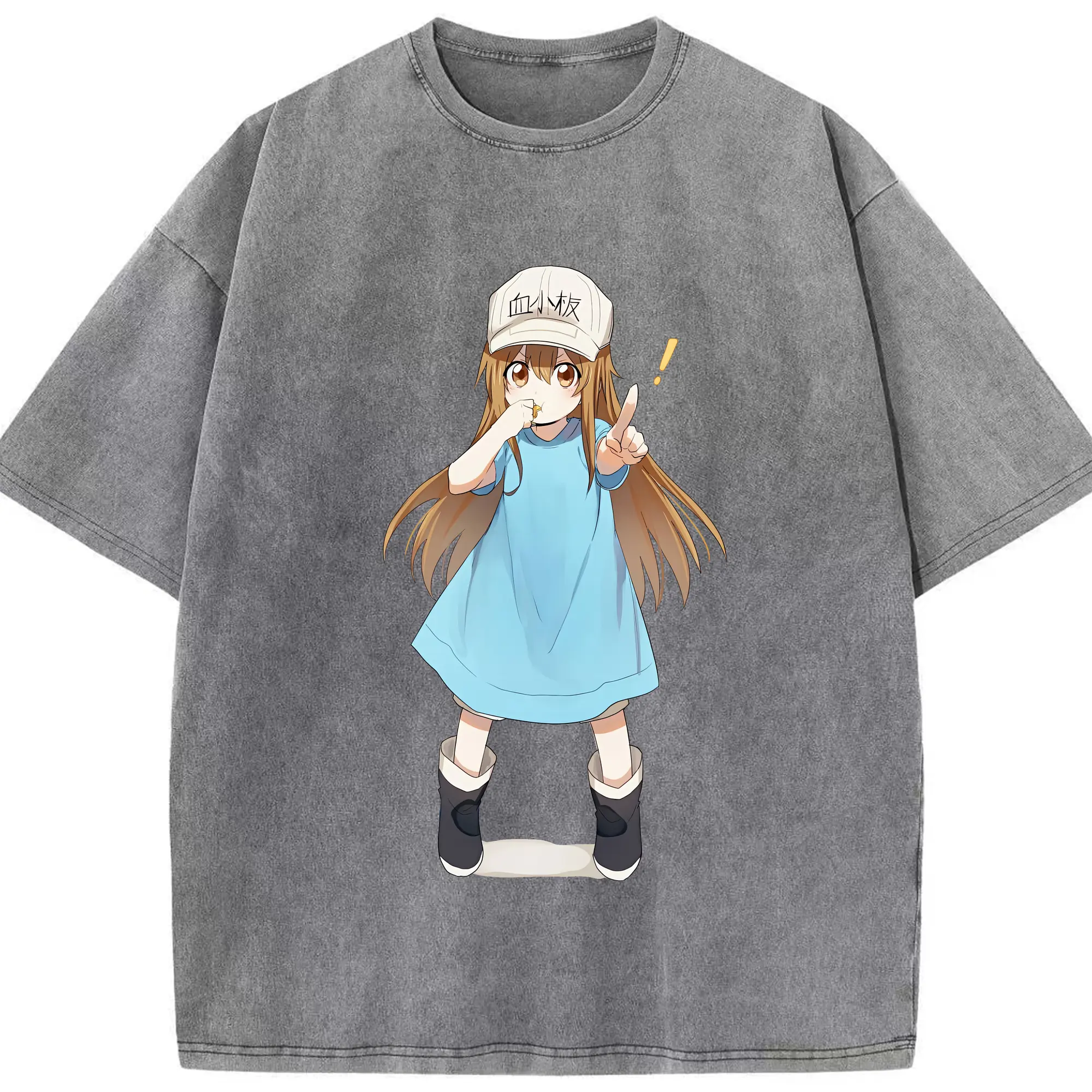 はたらく細胞 グッズ,血小板 - 綿100% ヴィンテージ風 半袖Tシャツ ・ 背面プリント ・ 柔らか肌触り ・ 通気性 快適 ・ スポーツ カジュアル 外出用