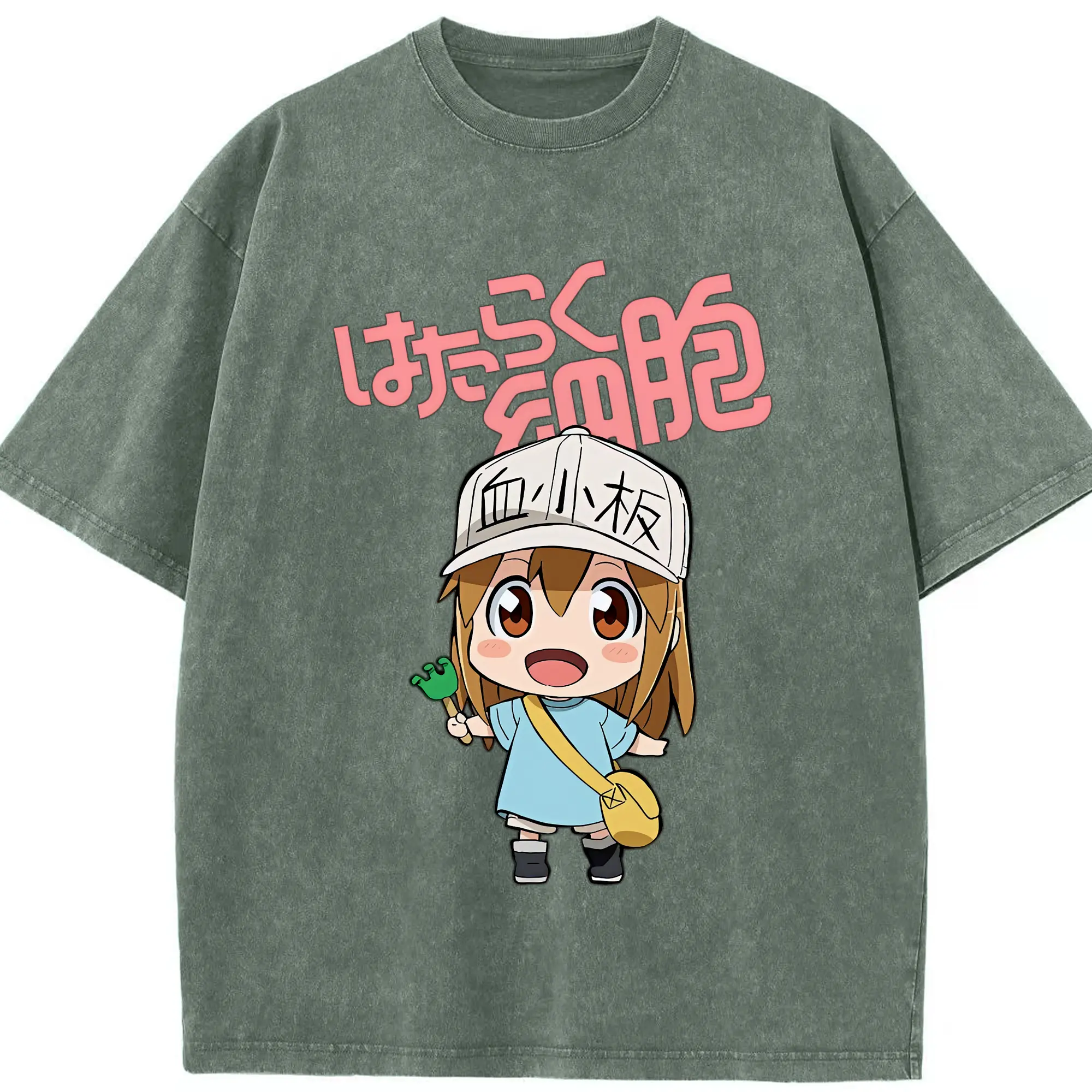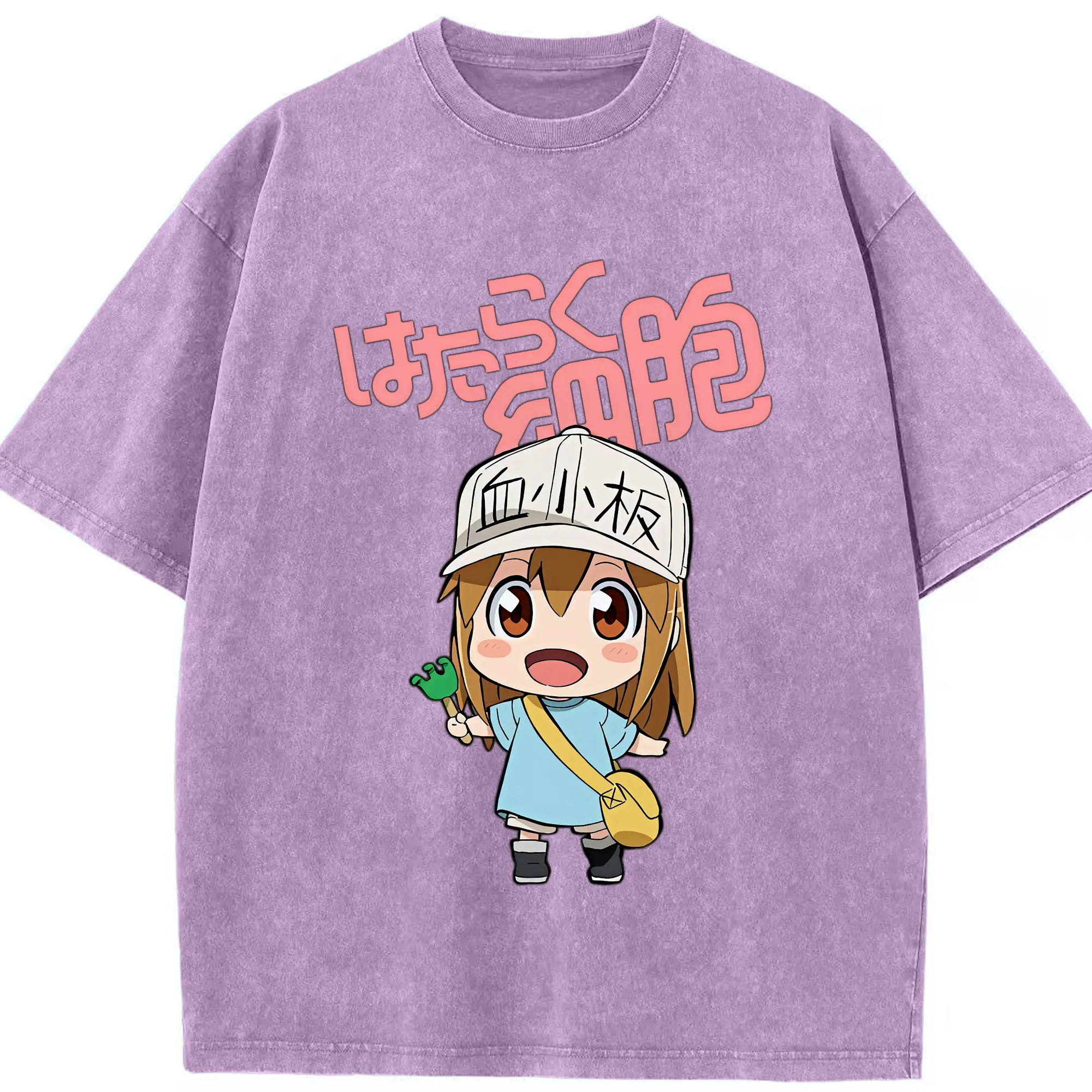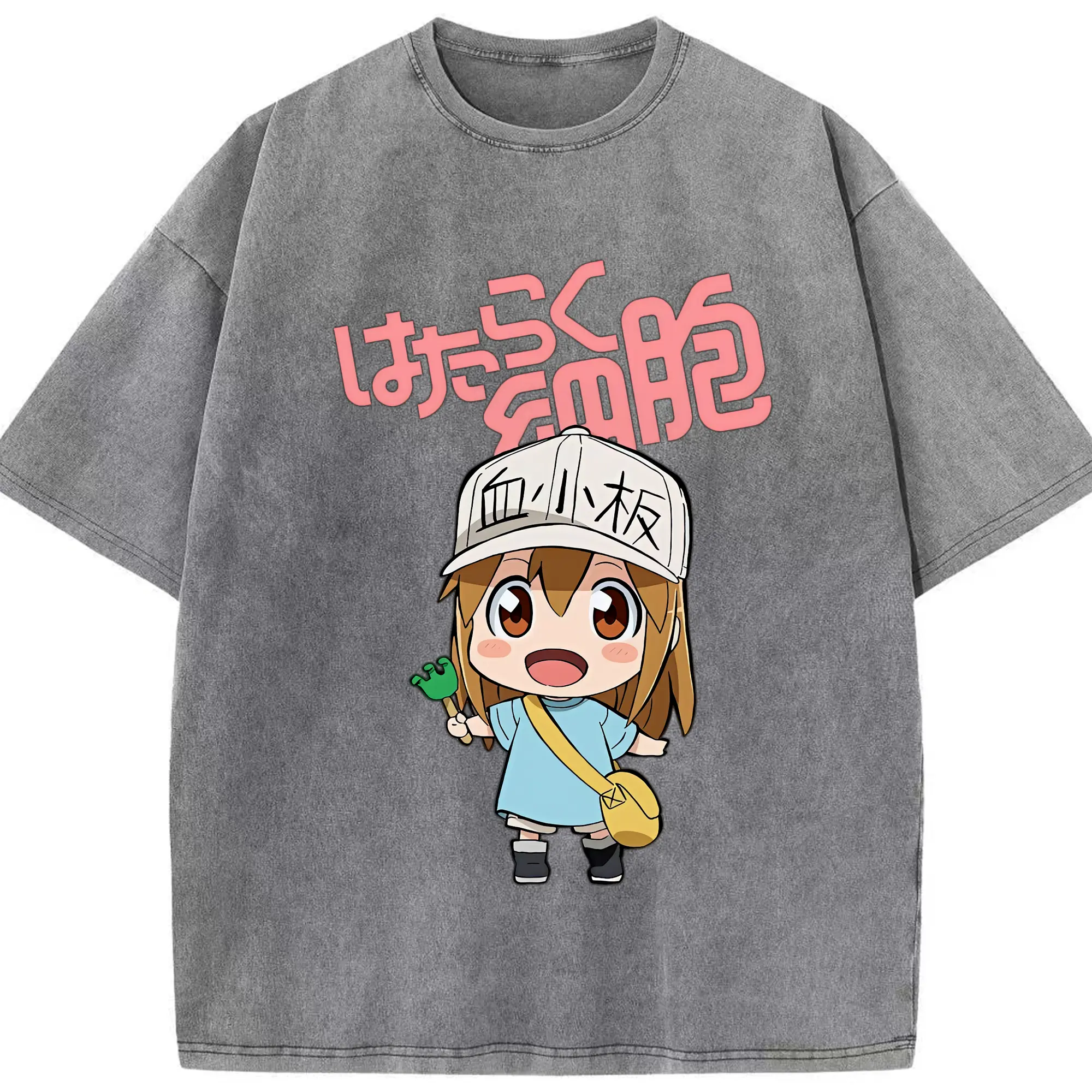 はたらく細胞 グッズ,血小板 - 綿100% ヴィンテージ風 半袖Tシャツ ・ 背面プリント ・ 柔らか肌触り ・ 通気性 快適 ・ スポーツ カジュアル 外出用