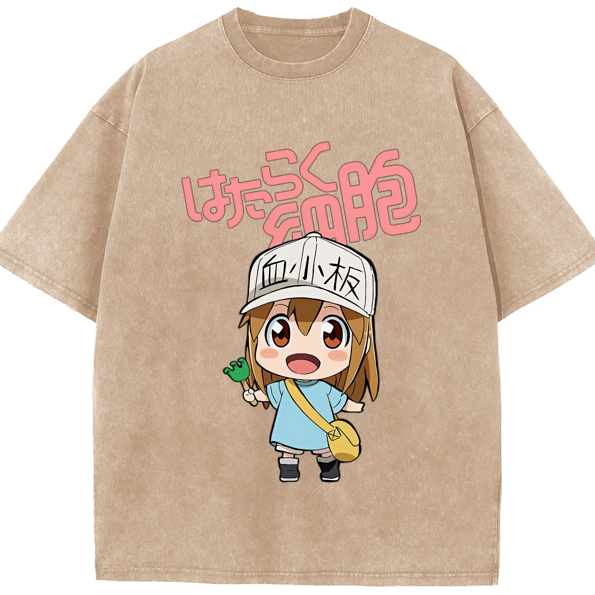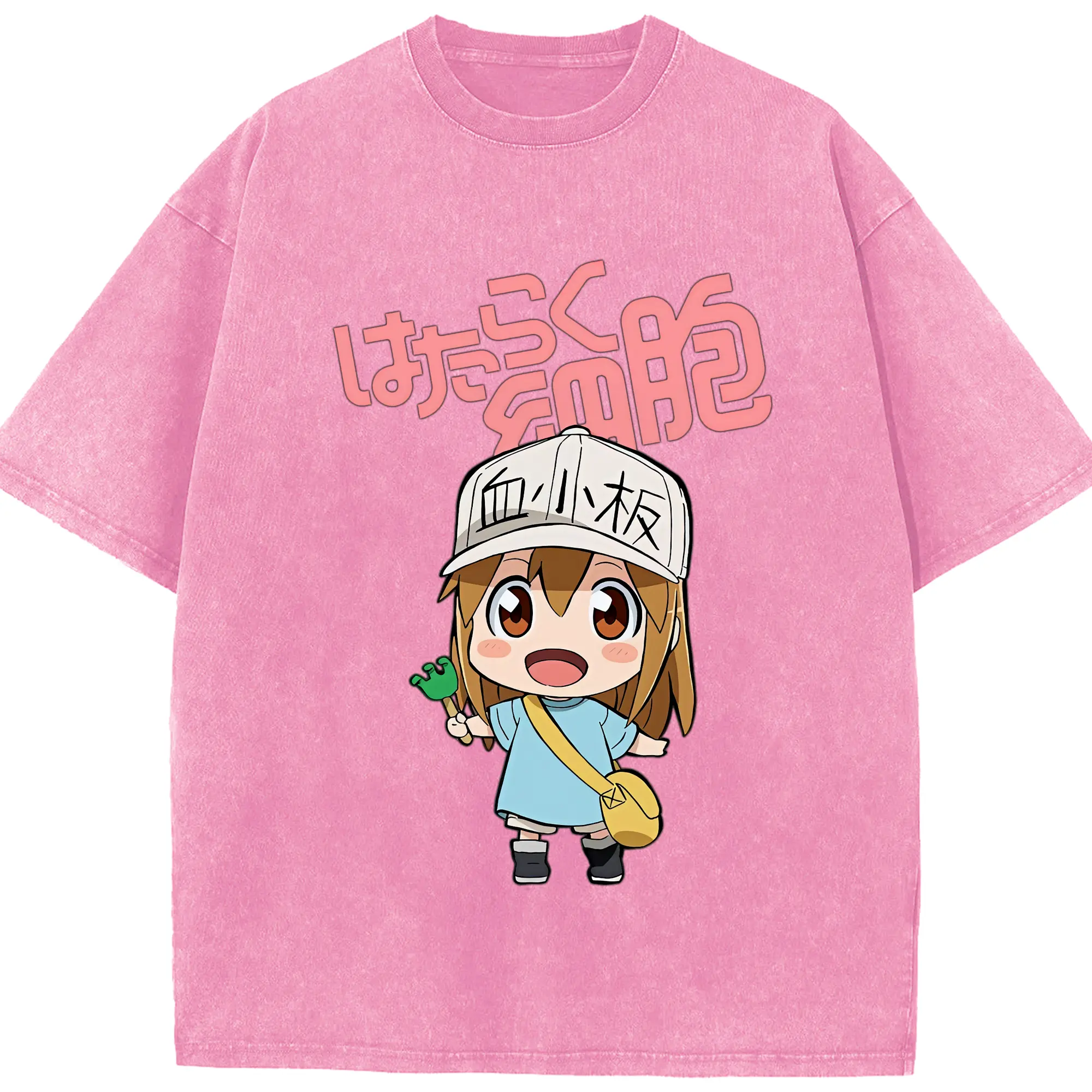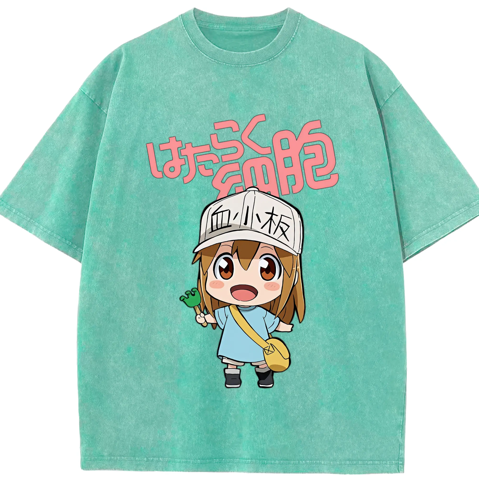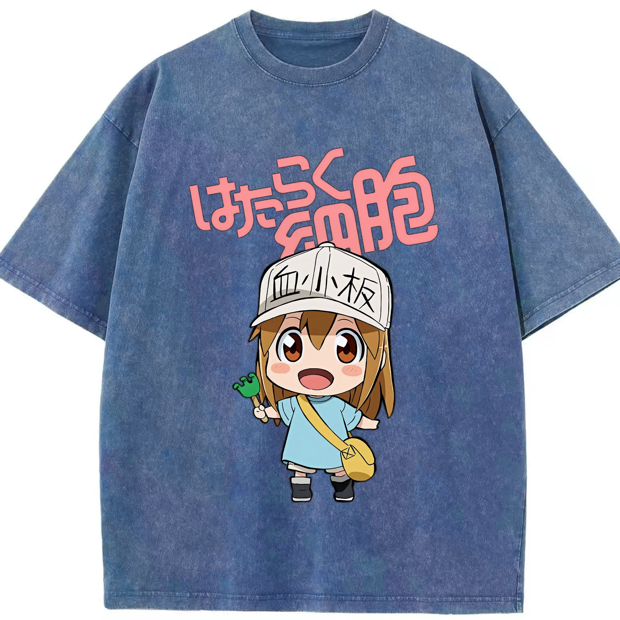 はたらく細胞 グッズ,血小板 - 綿100% ヴィンテージ風 半袖Tシャツ ・ 背面プリント ・ 柔らか肌触り ・ 通気性 快適 ・ スポーツ カジュアル 外出用