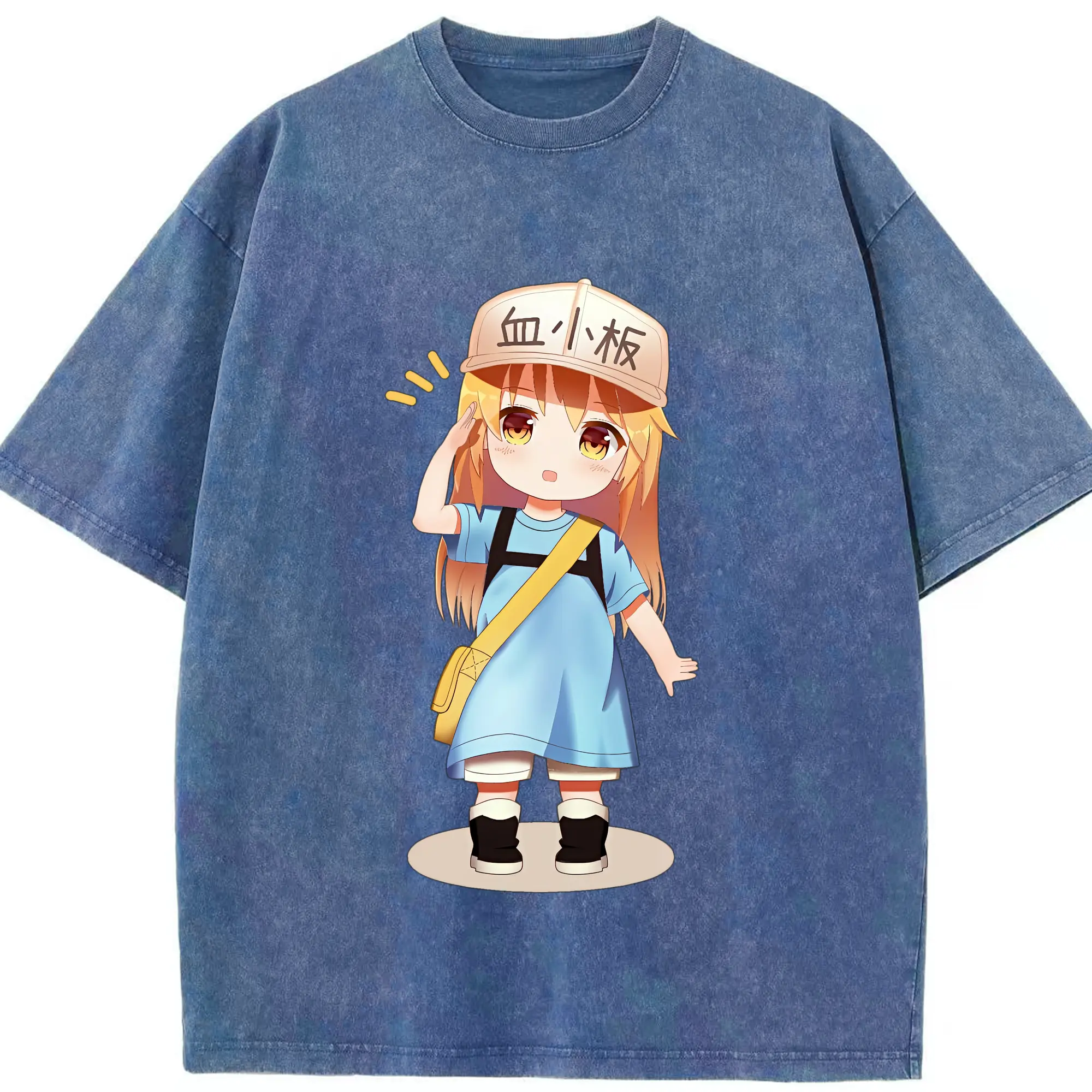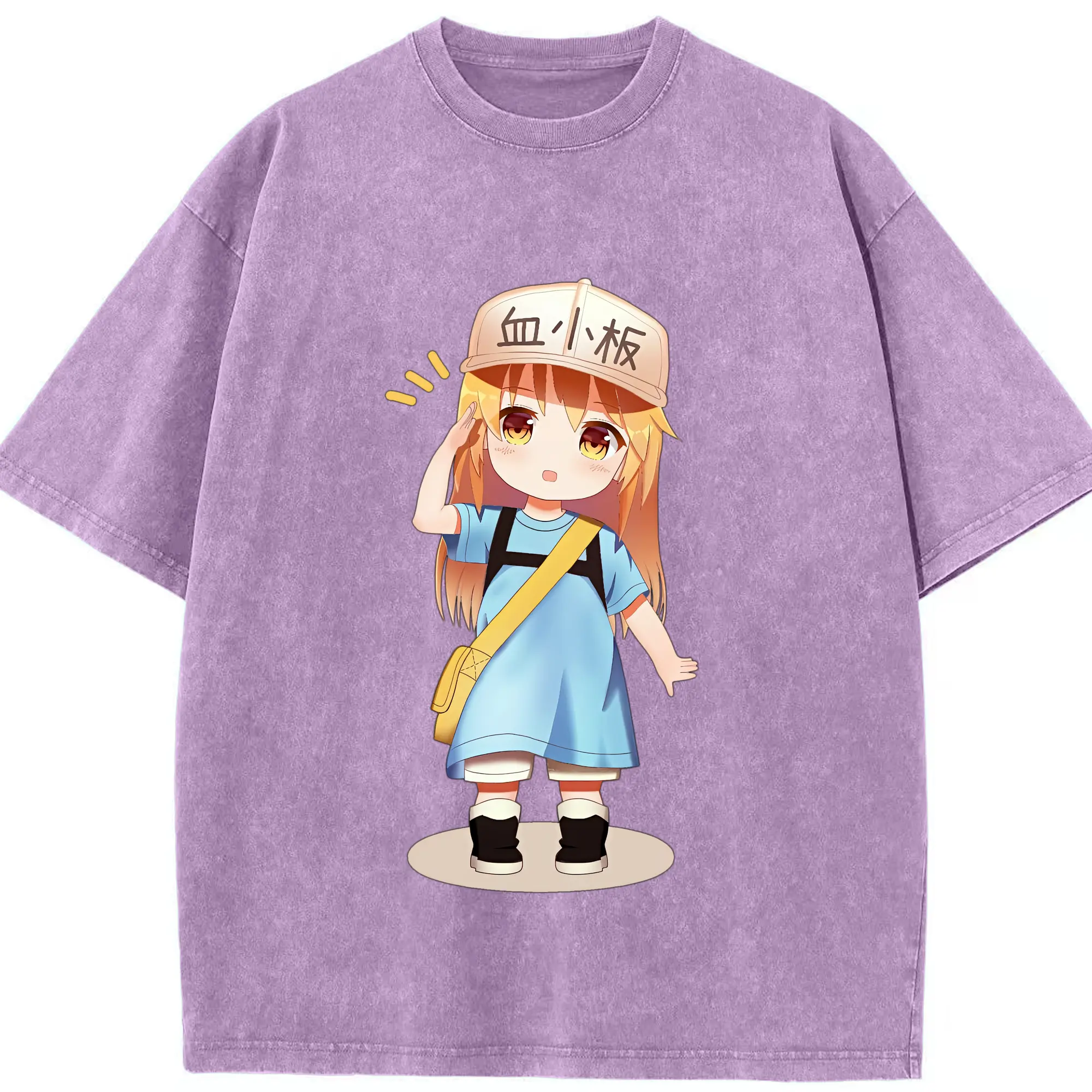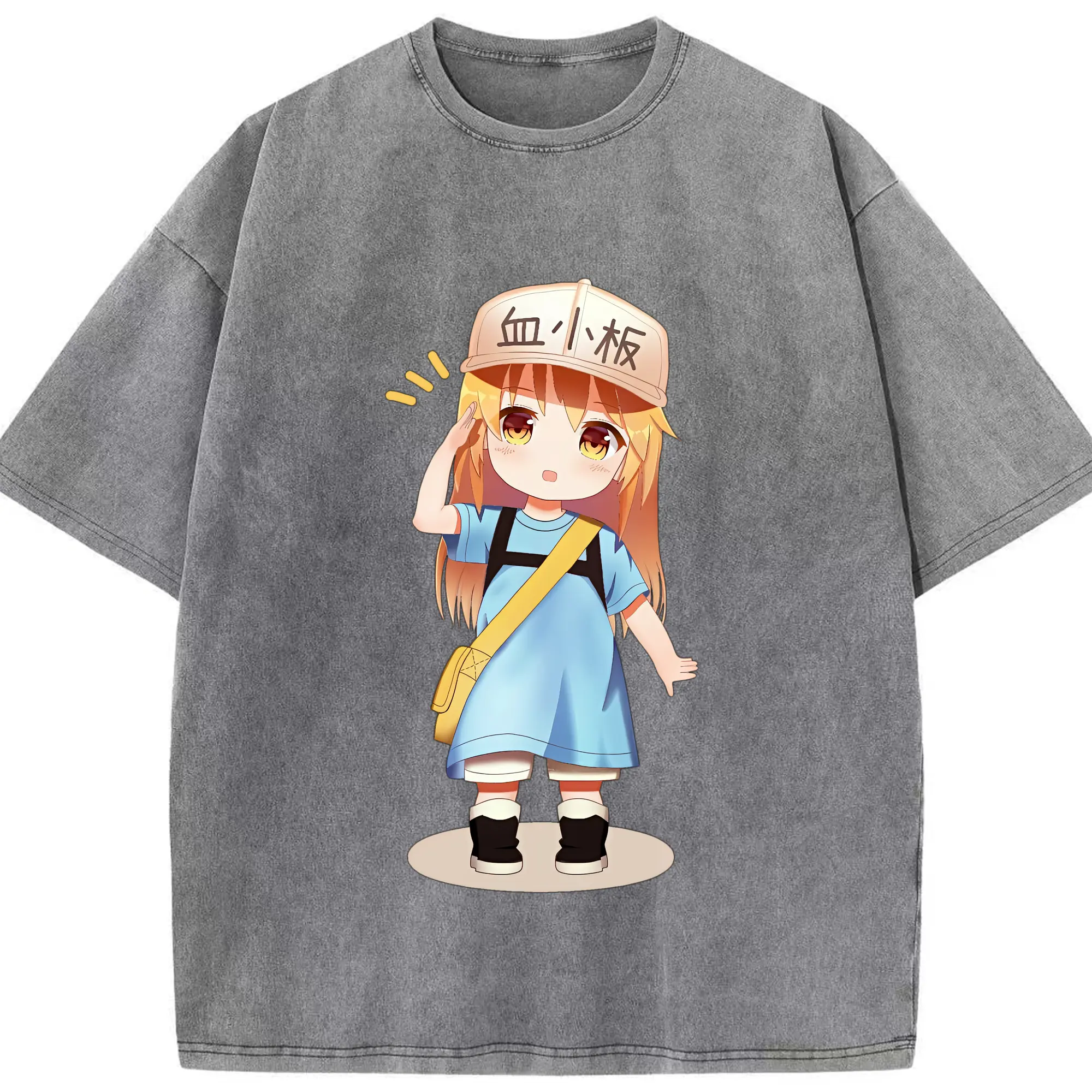 はたらく細胞 グッズ,血小板 - 綿100% ヴィンテージ風 半袖Tシャツ ・ 背面プリント ・ 柔らか肌触り ・ 通気性 快適 ・ スポーツ カジュアル 外出用