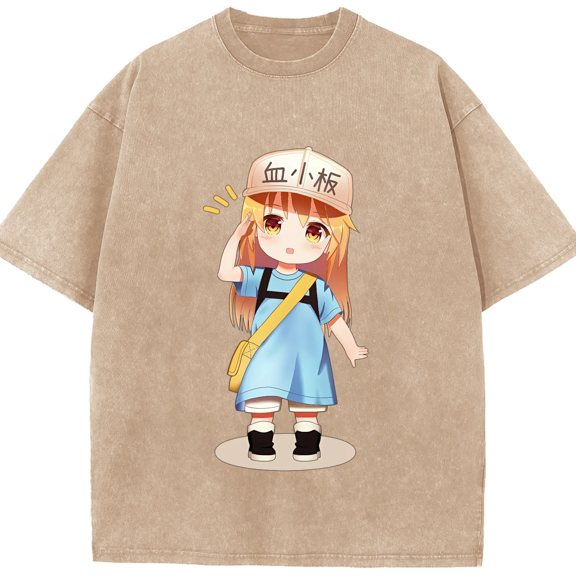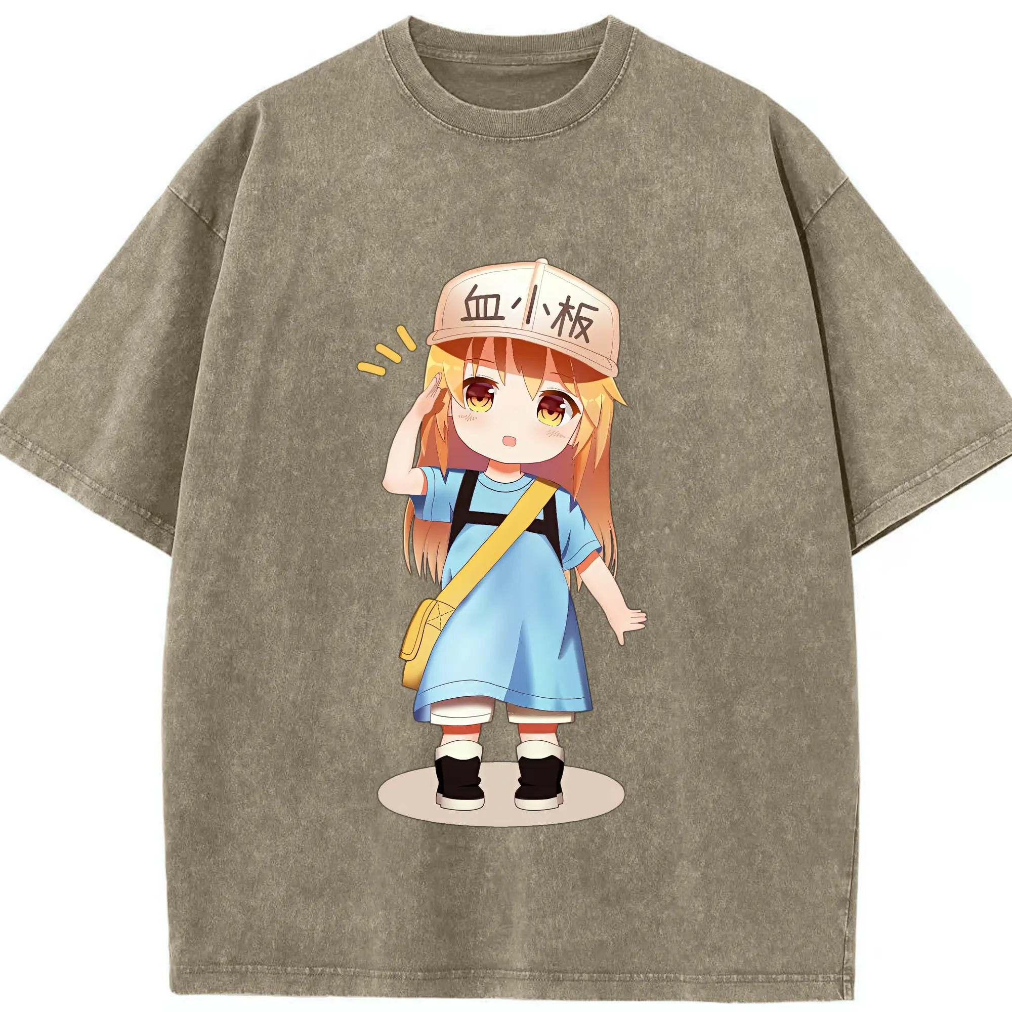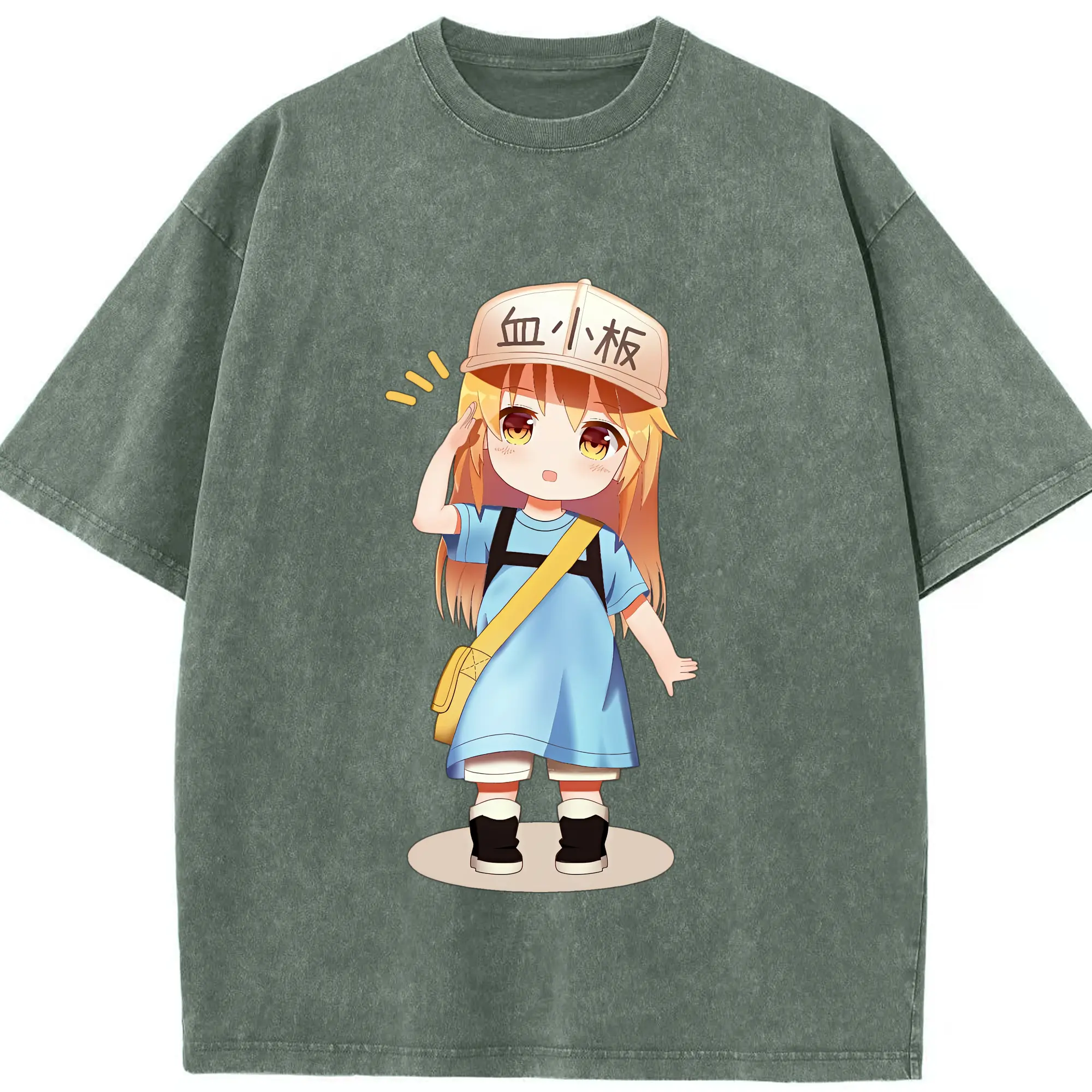 はたらく細胞 グッズ,血小板 - 綿100% ヴィンテージ風 半袖Tシャツ ・ 背面プリント ・ 柔らか肌触り ・ 通気性 快適 ・ スポーツ カジュアル 外出用