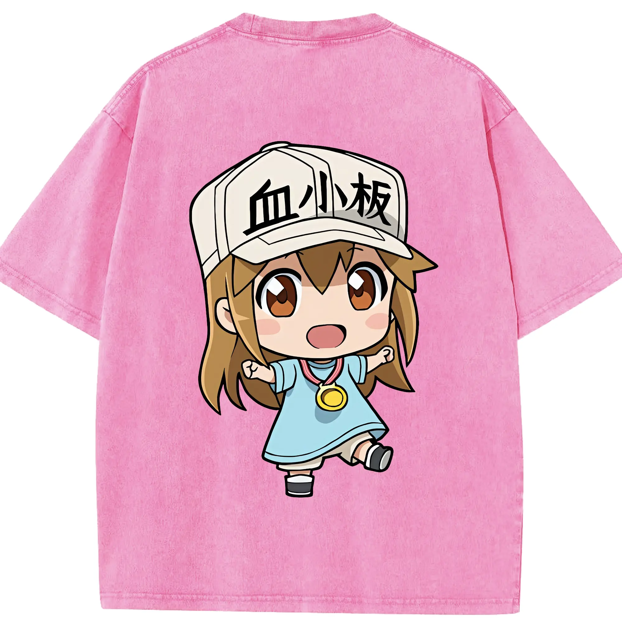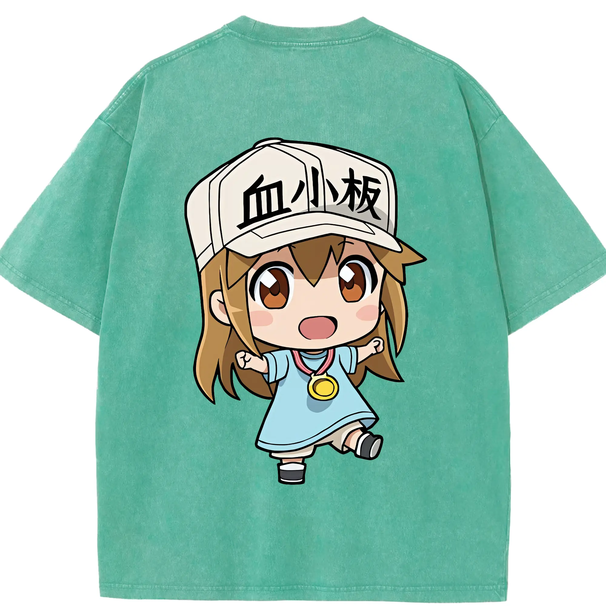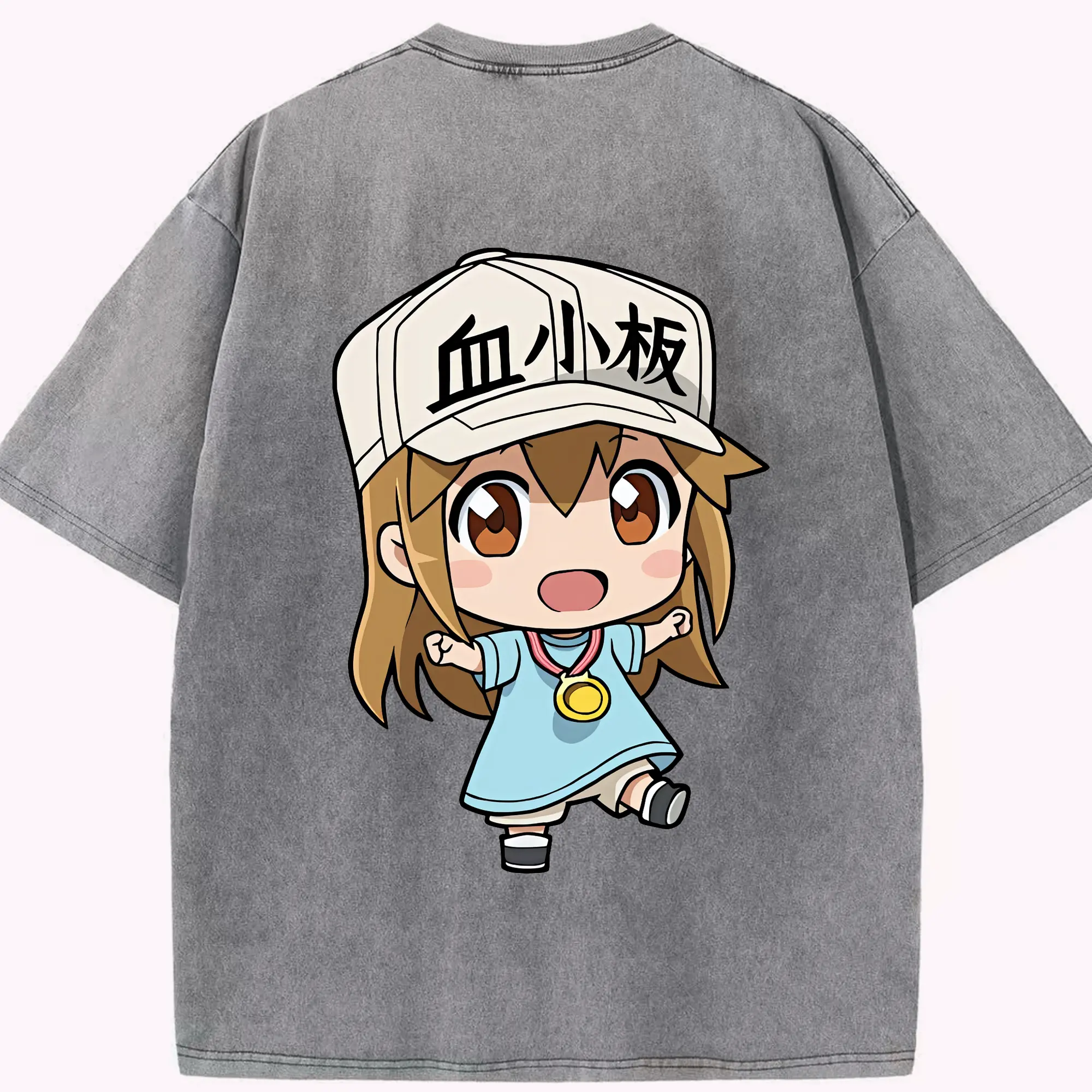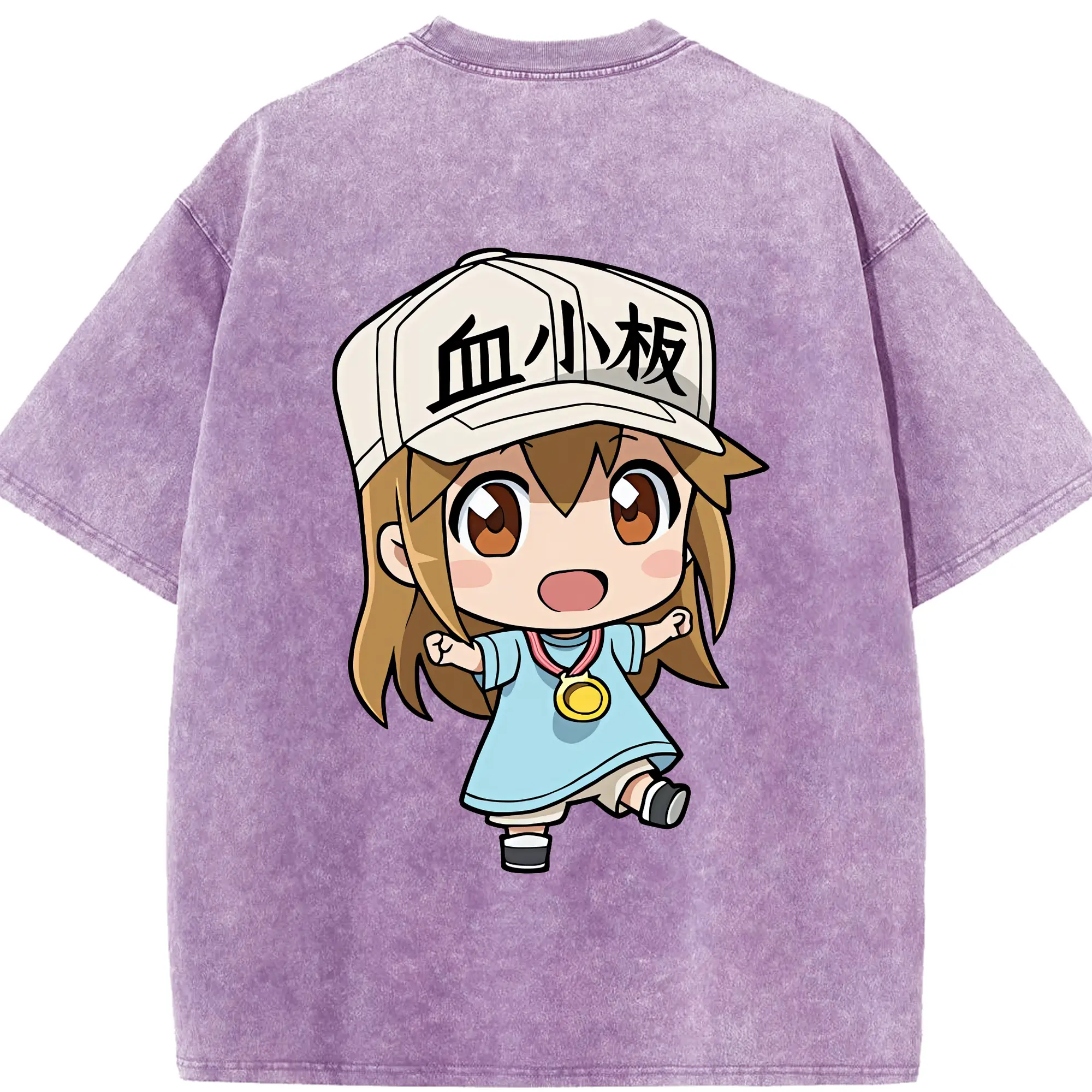 はたらく細胞 グッズ,血小板 - 綿100% ヴィンテージ風 半袖Tシャツ ・ フロントプリント ・ 柔らか肌触り ・ 通気性 快適 ・ スポーツ カジュアル 外出用