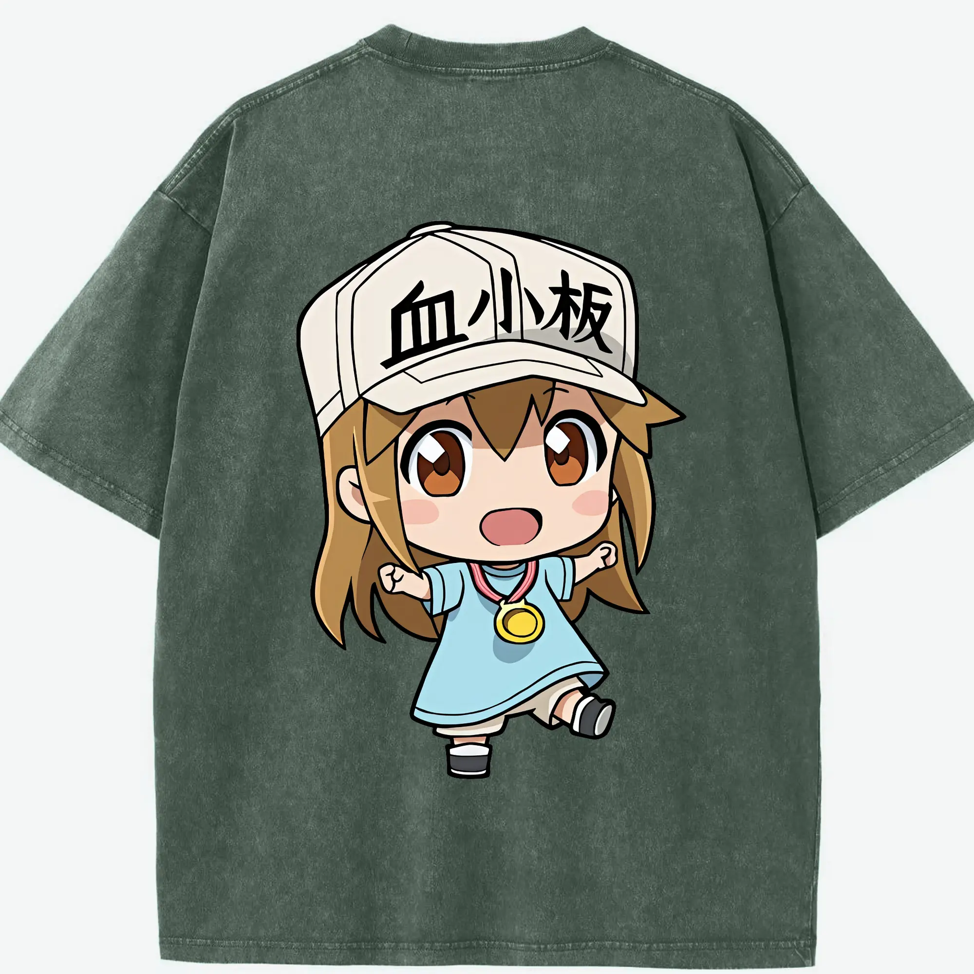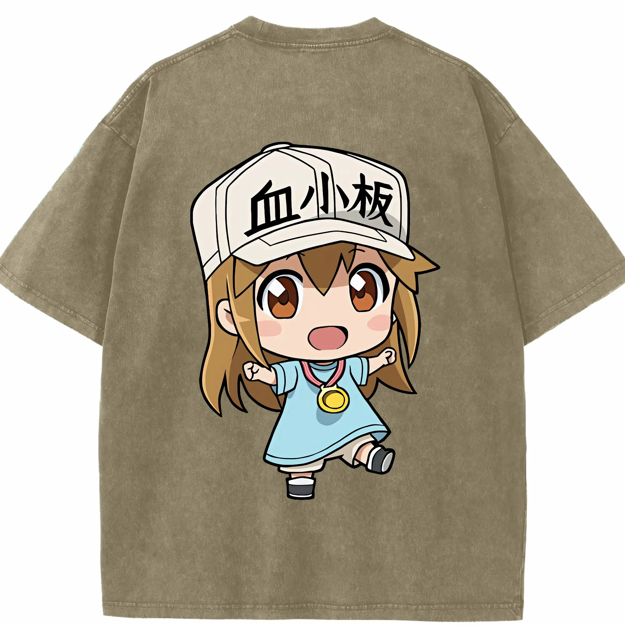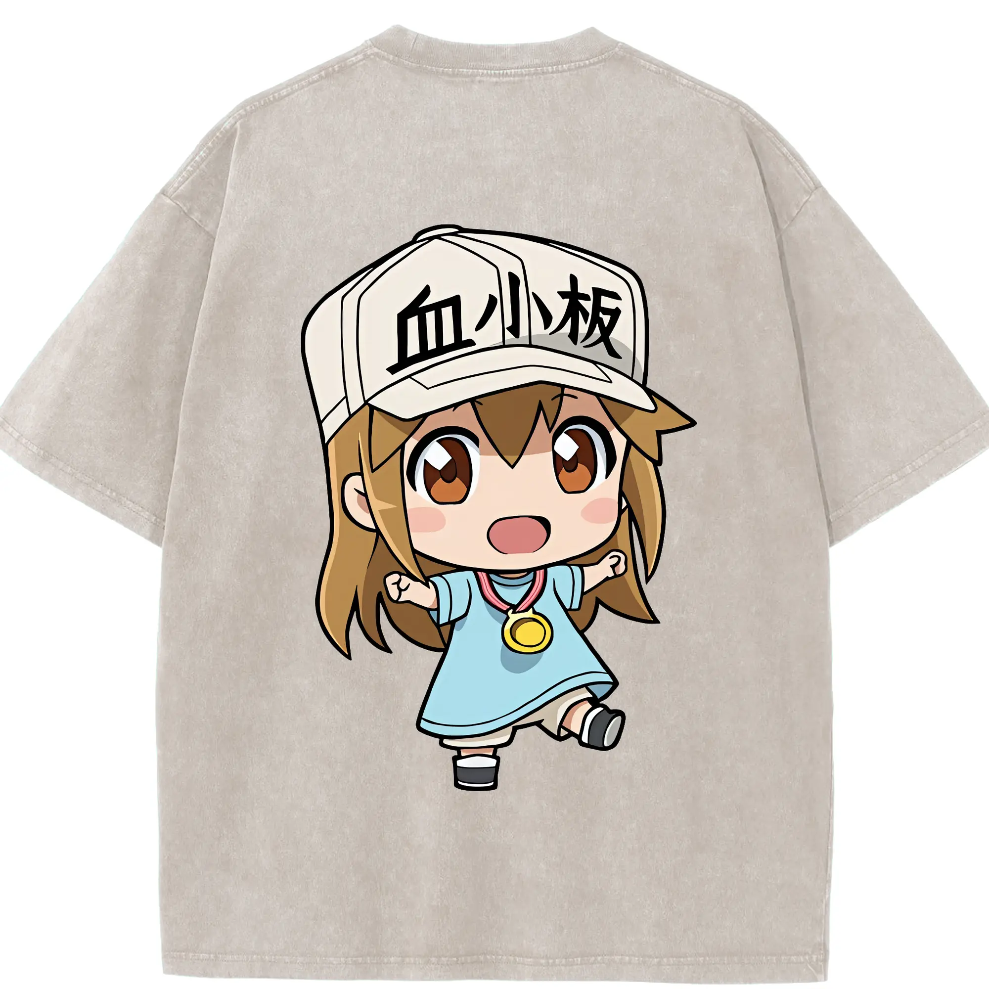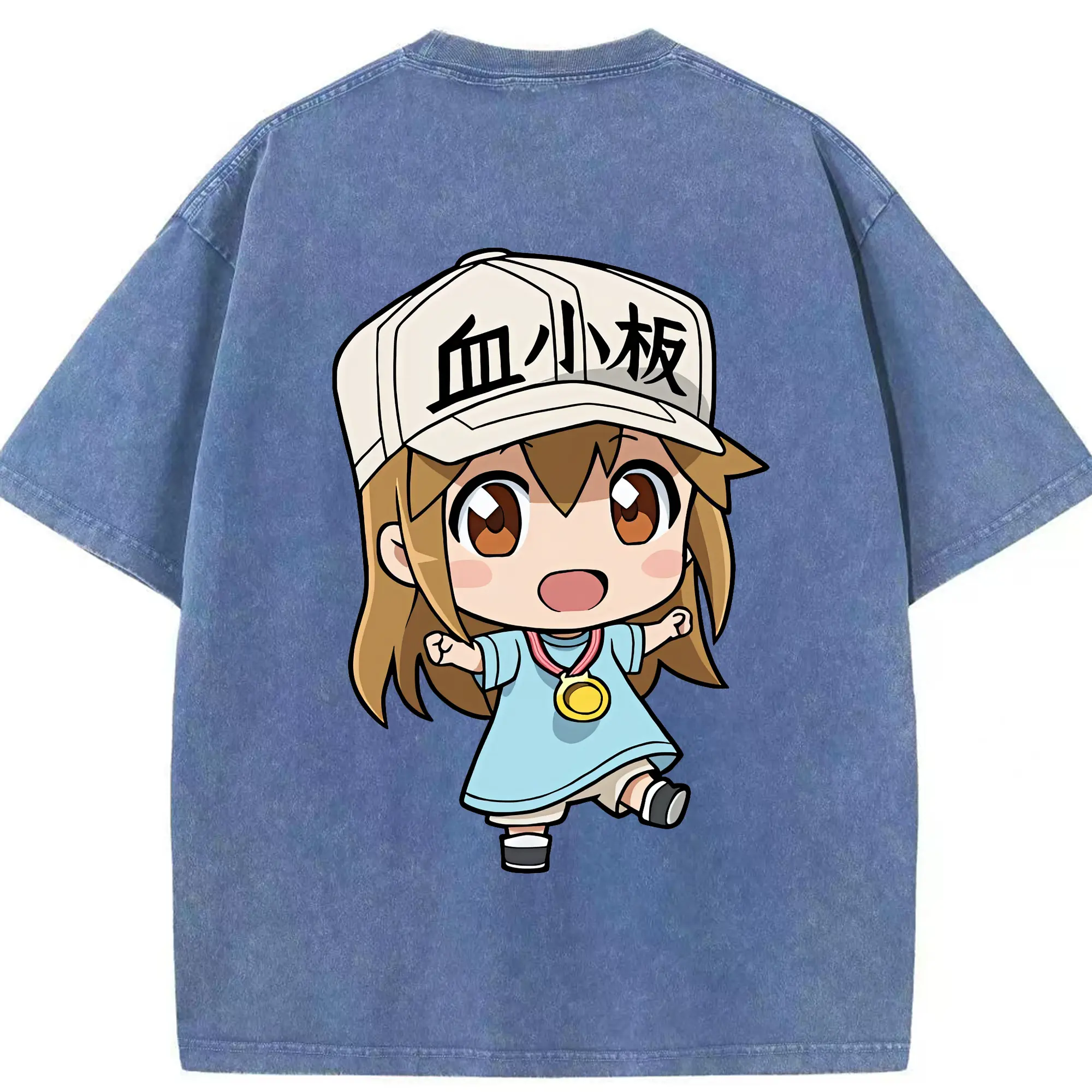 はたらく細胞 グッズ,血小板 - 綿100% ヴィンテージ風 半袖Tシャツ ・ フロントプリント ・ 柔らか肌触り ・ 通気性 快適 ・ スポーツ カジュアル 外出用