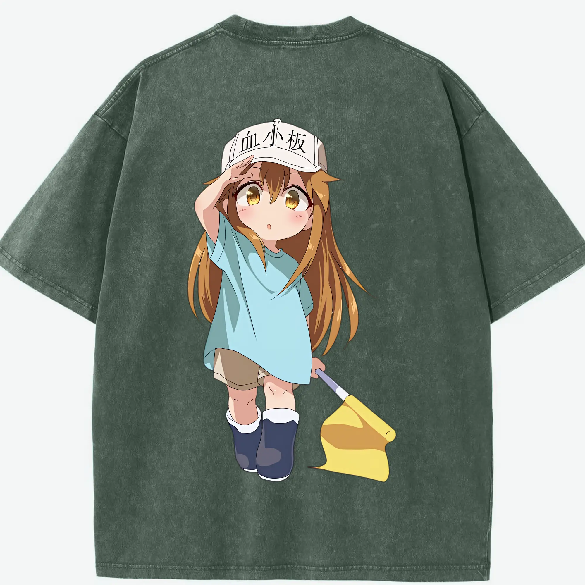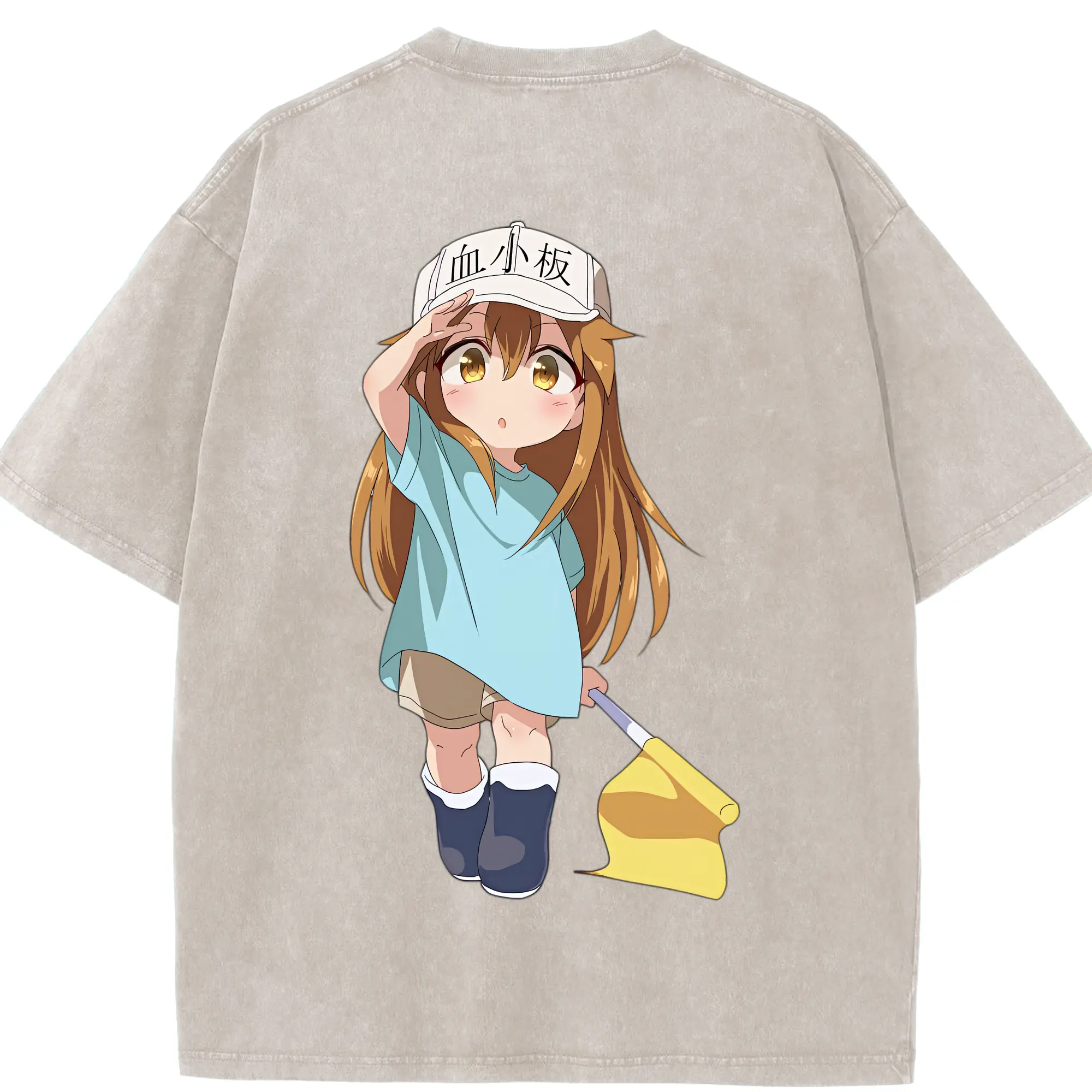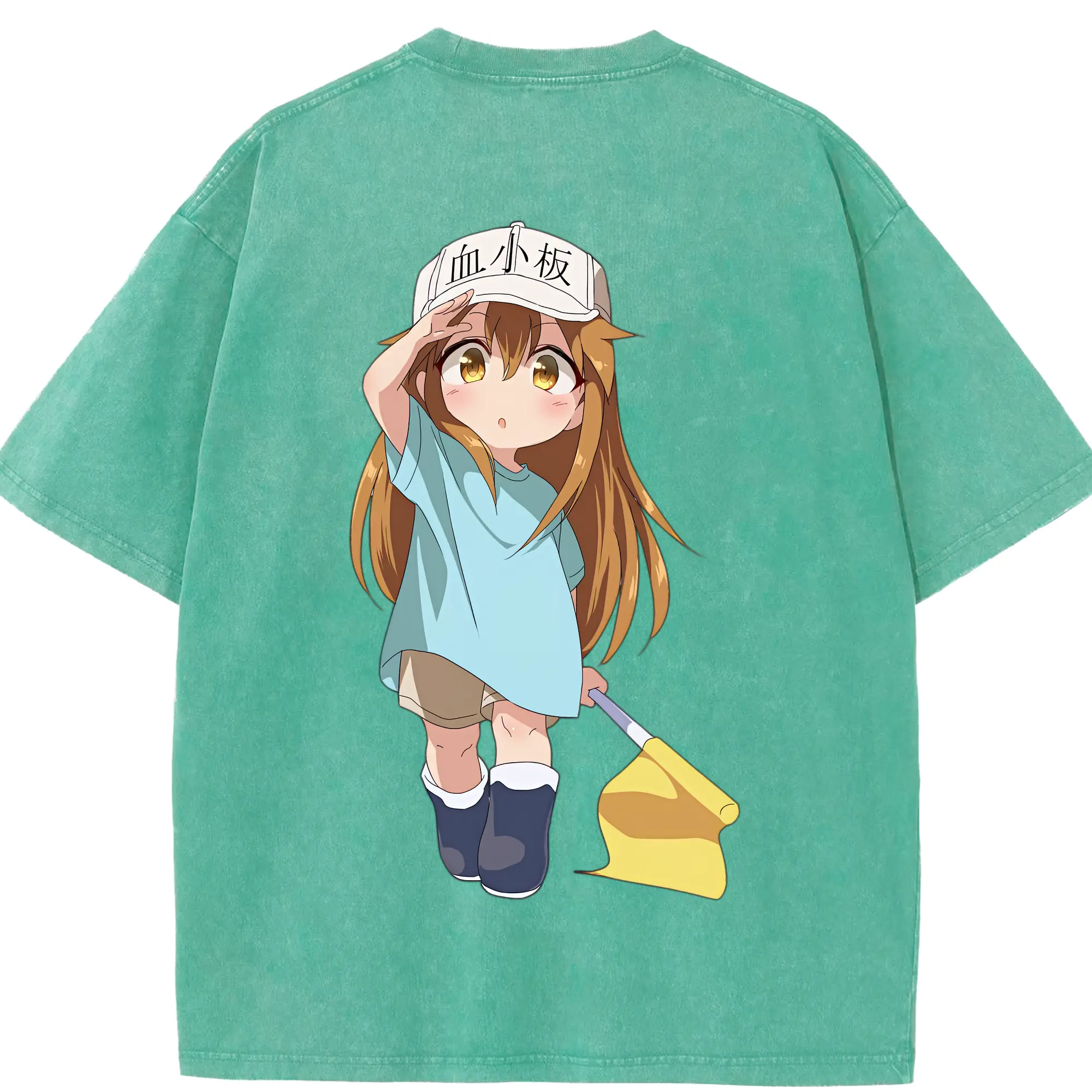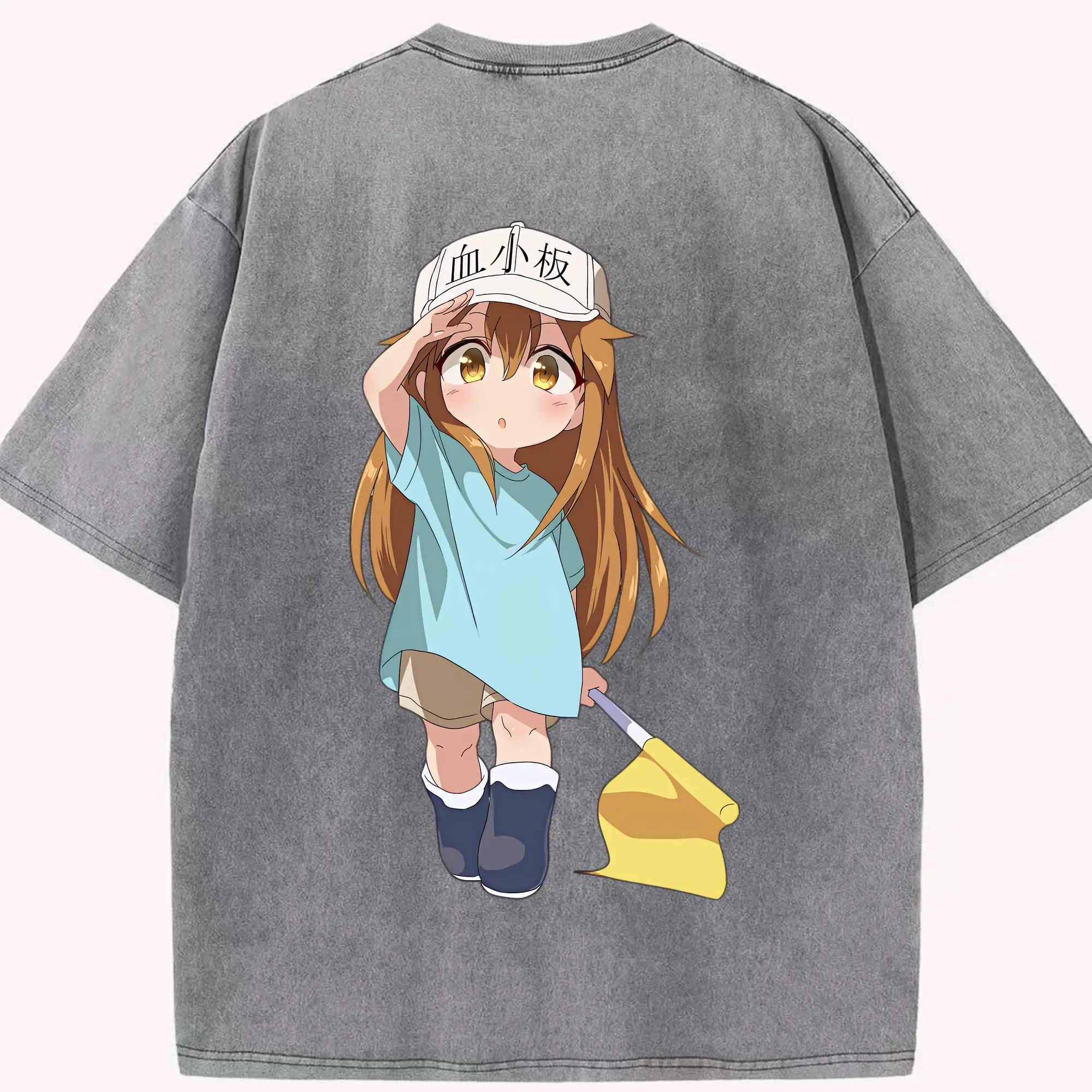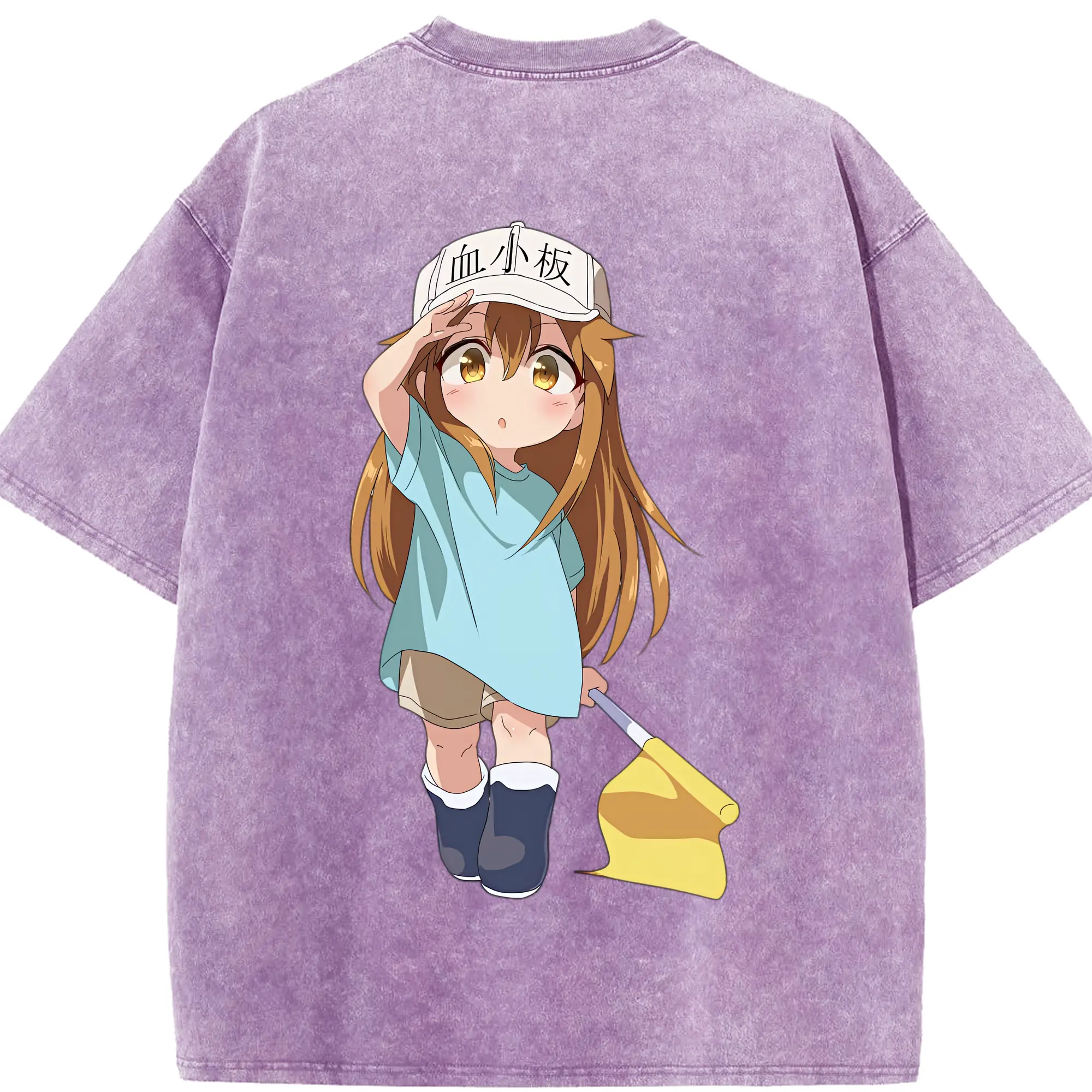 はたらく細胞 グッズ,血小板 - 綿100% ヴィンテージ風 半袖Tシャツ ・ フロントプリント ・ 柔らか肌触り ・ 通気性 快適 ・ スポーツ カジュアル 外出用