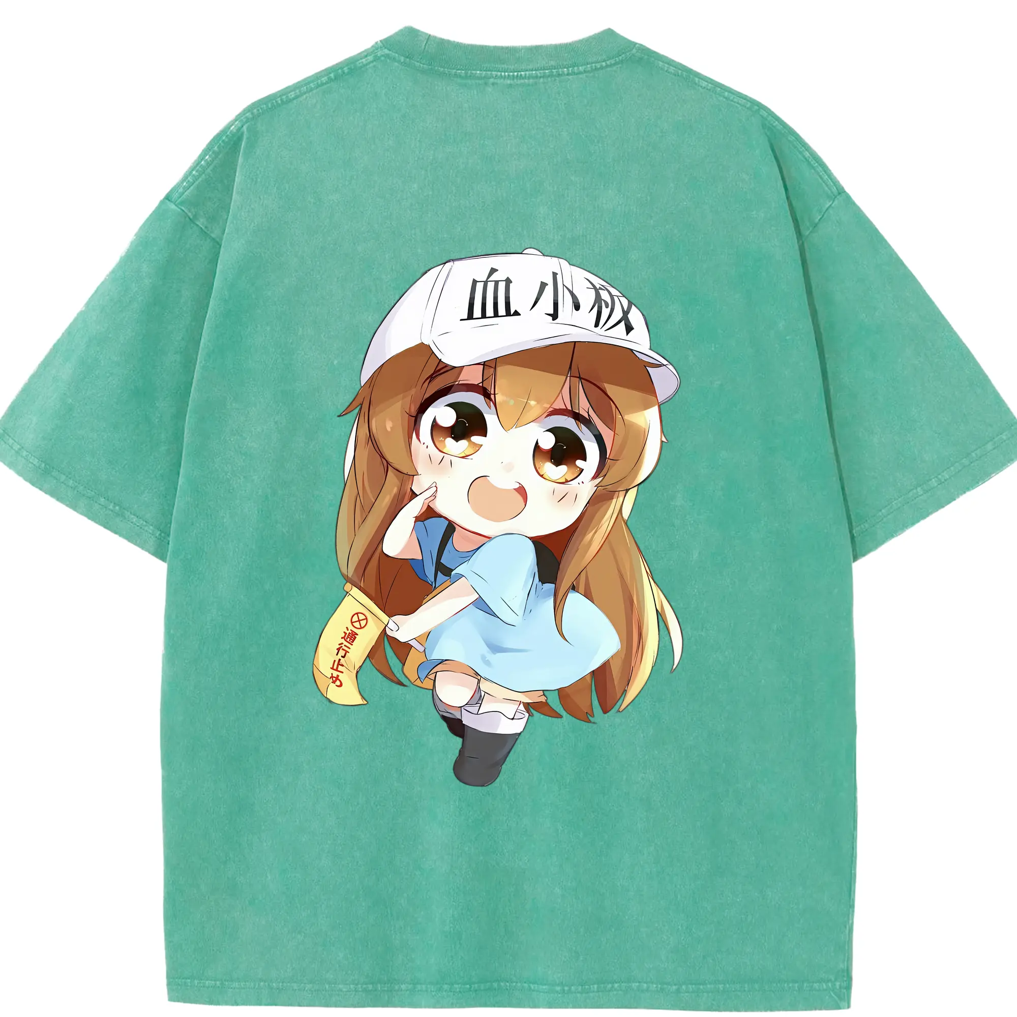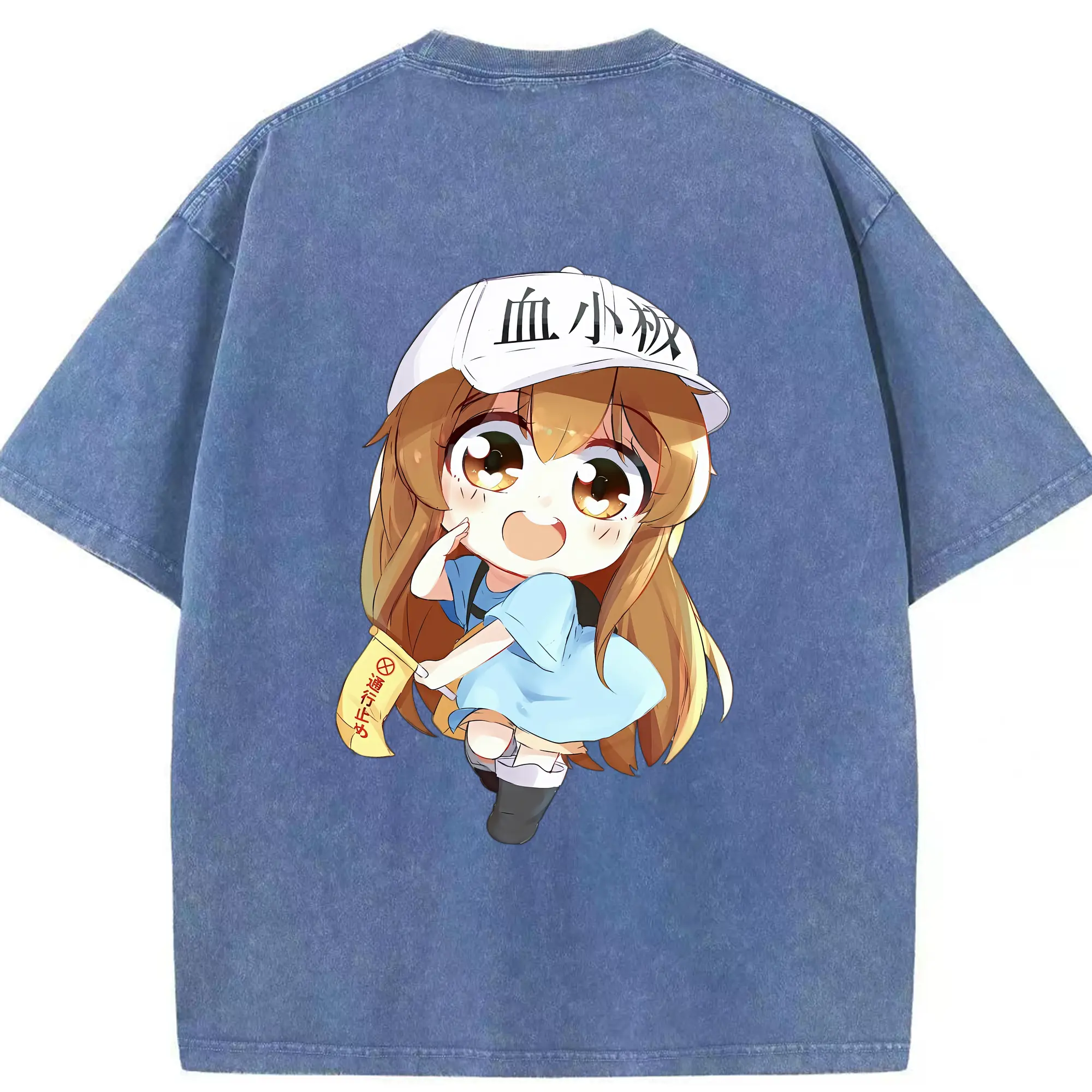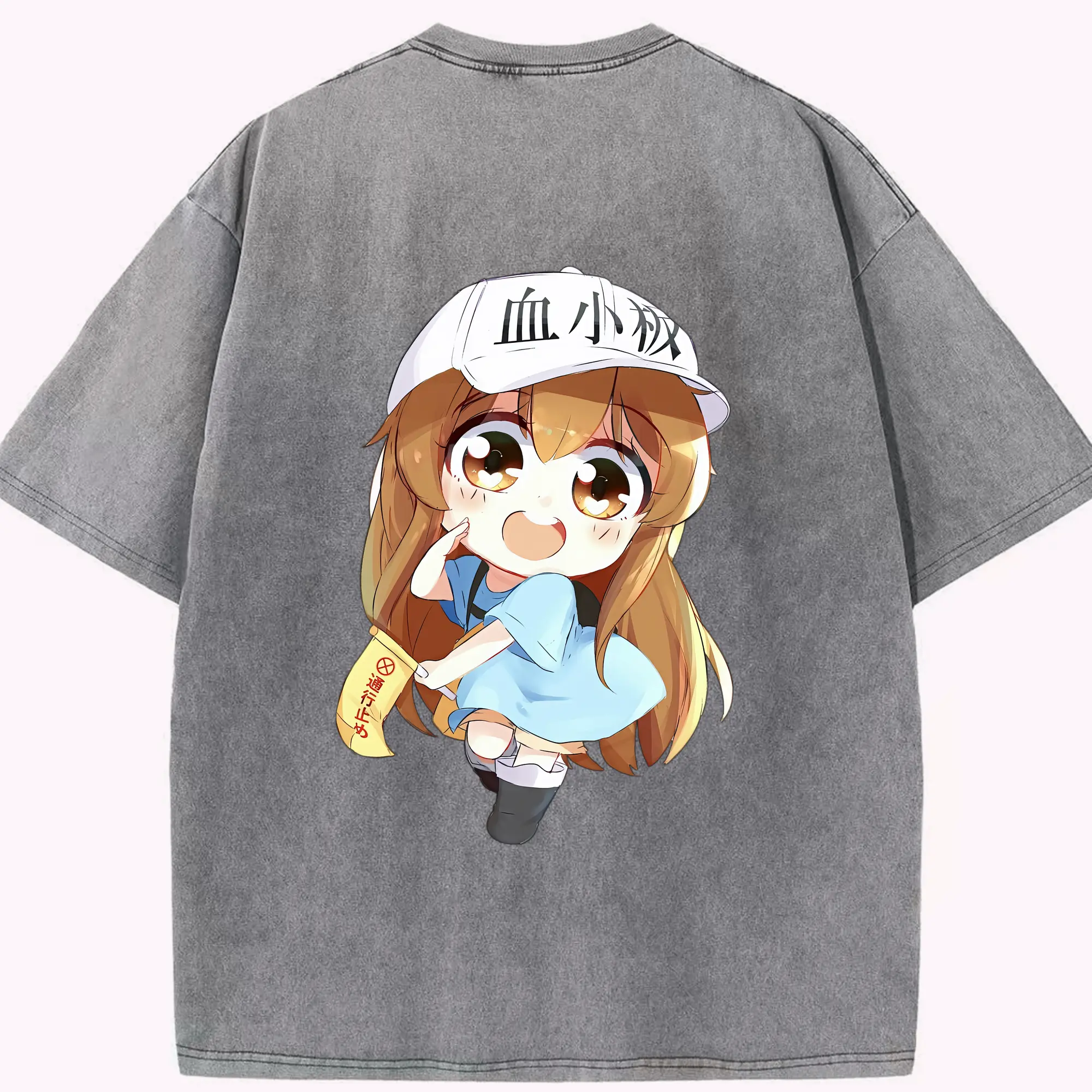 はたらく細胞 グッズ,血小板 - 綿100% ヴィンテージ風 半袖Tシャツ ・ フロントプリント ・ 柔らか肌触り ・ 通気性 快適 ・ スポーツ カジュアル 外出用