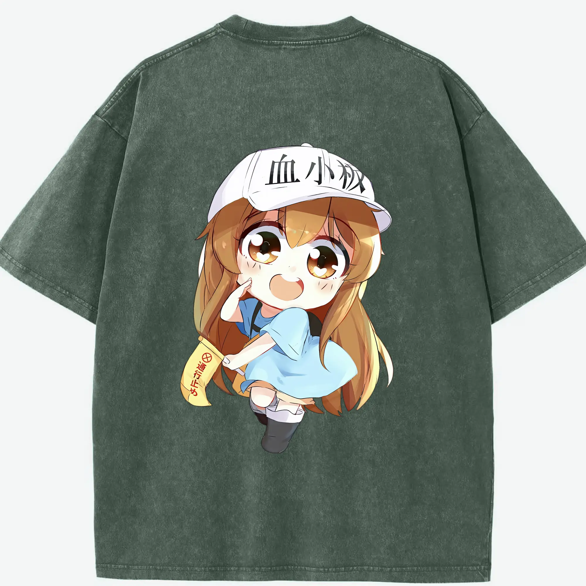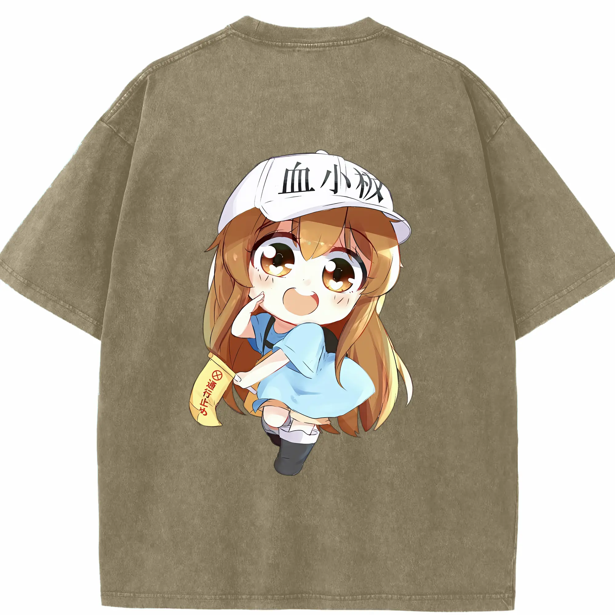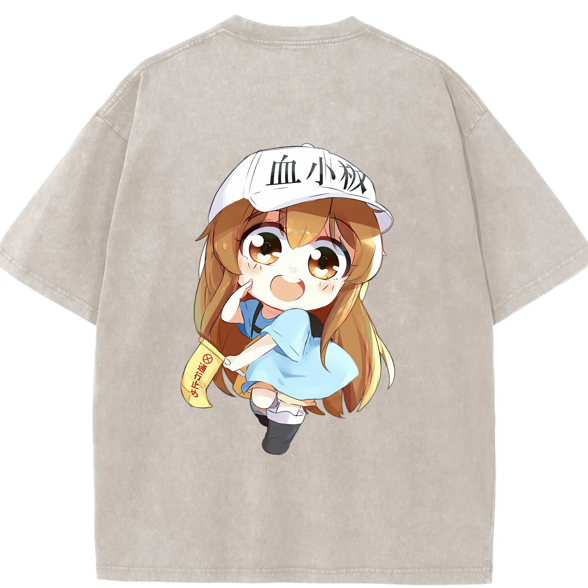 はたらく細胞 グッズ,血小板 - 綿100% ヴィンテージ風 半袖Tシャツ ・ フロントプリント ・ 柔らか肌触り ・ 通気性 快適 ・ スポーツ カジュアル 外出用