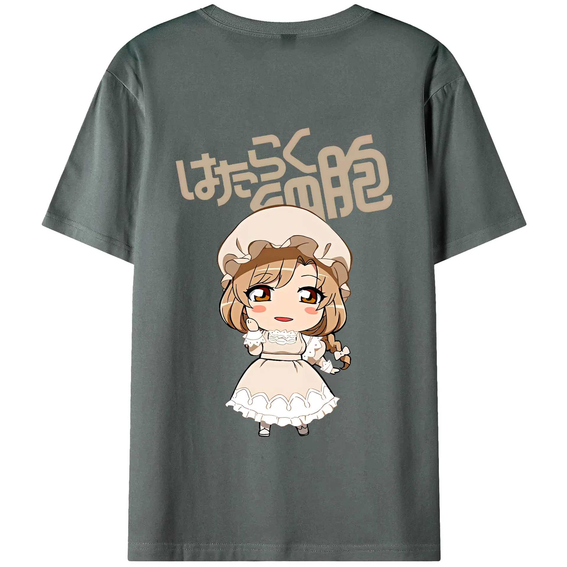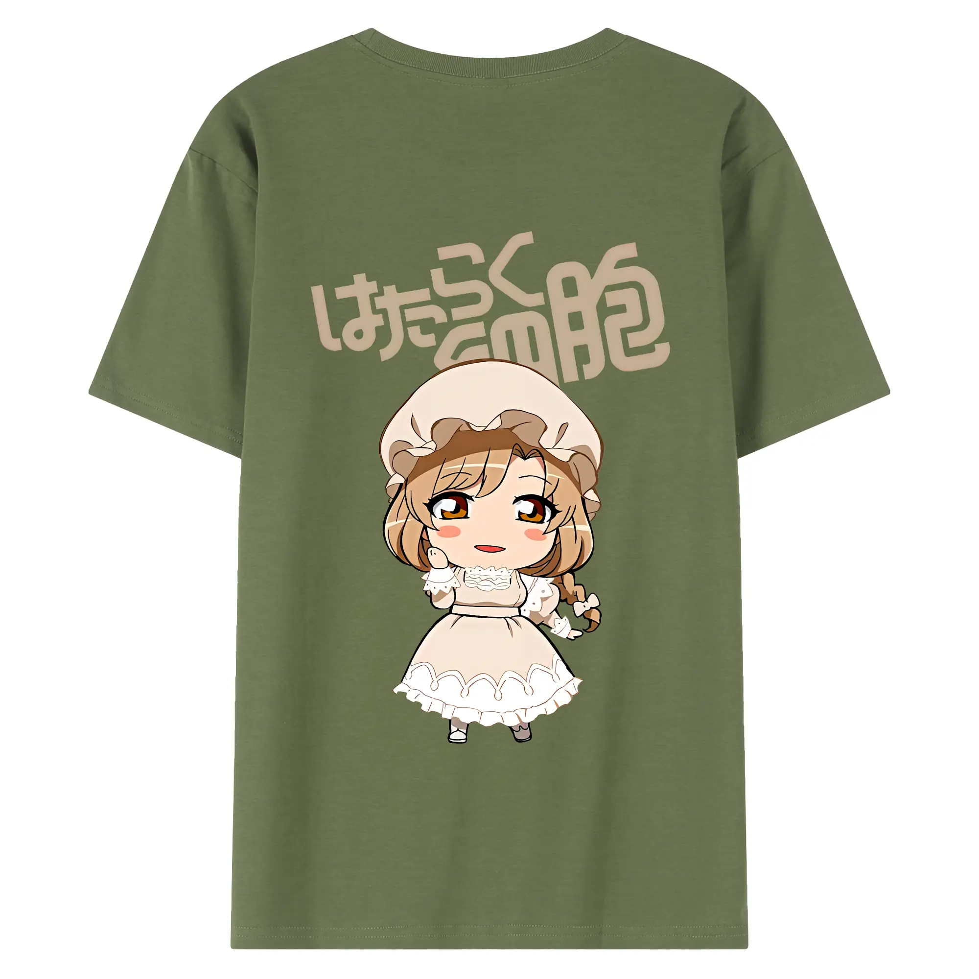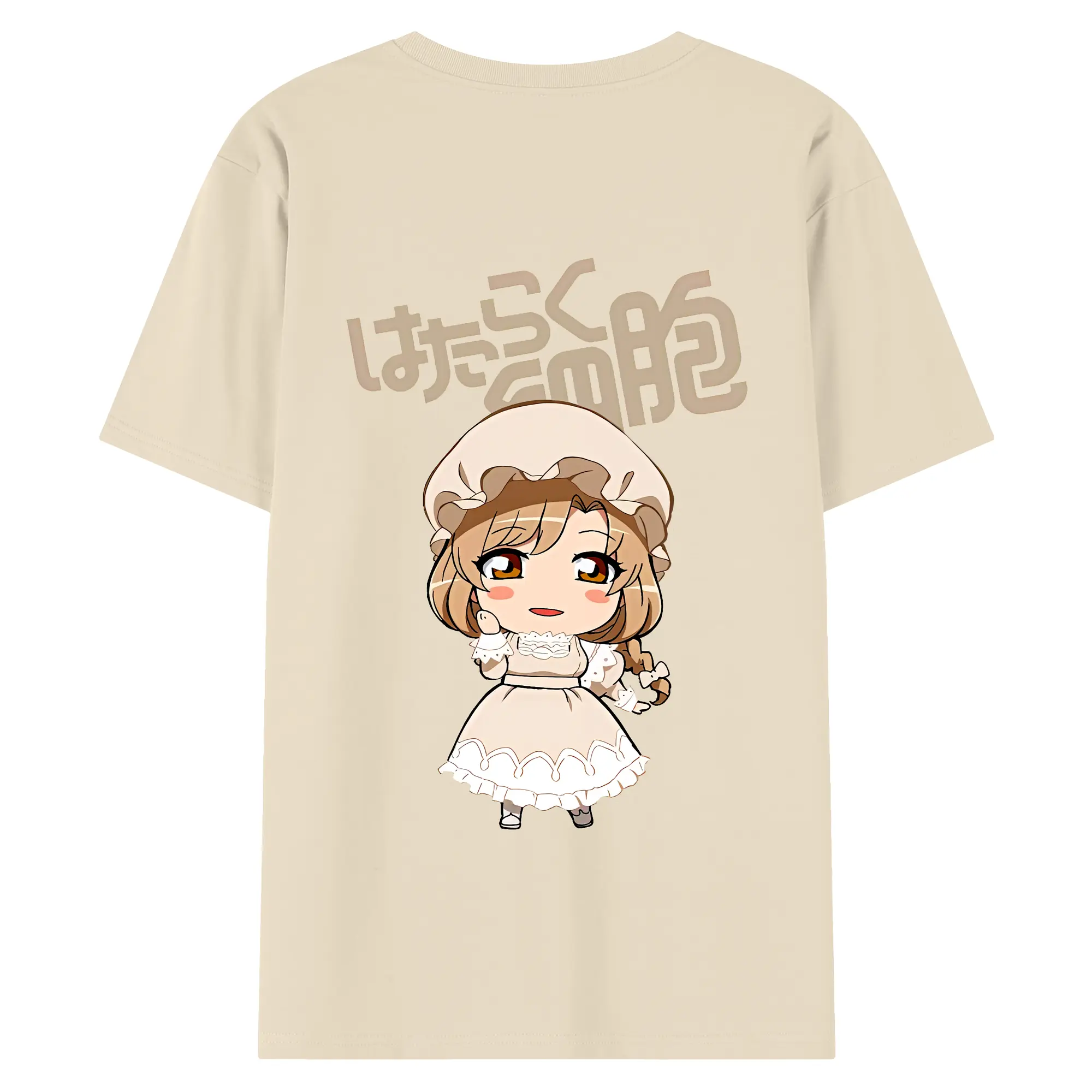 はたらく細胞 グッズ,マクロファージ - 綿100% ヴィンテージ風 半袖Tシャツ ・ 背面プリント ・ 柔らか肌触り ・ 通気性 快適 ・ スポーツ カジュアル 外出用