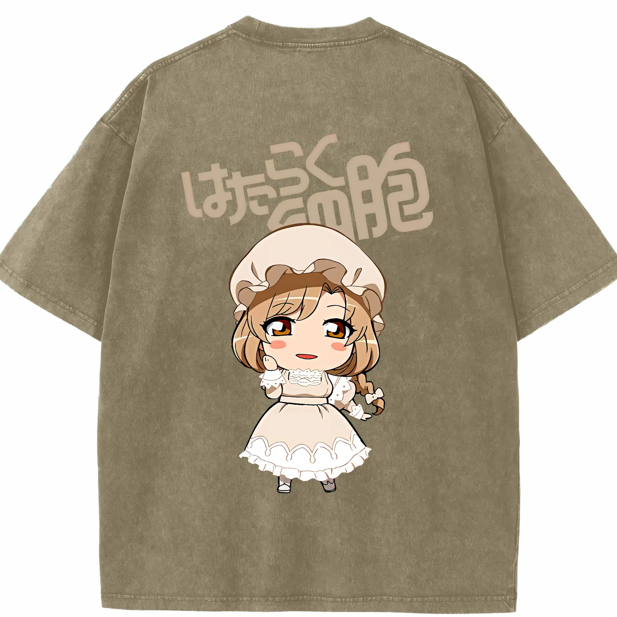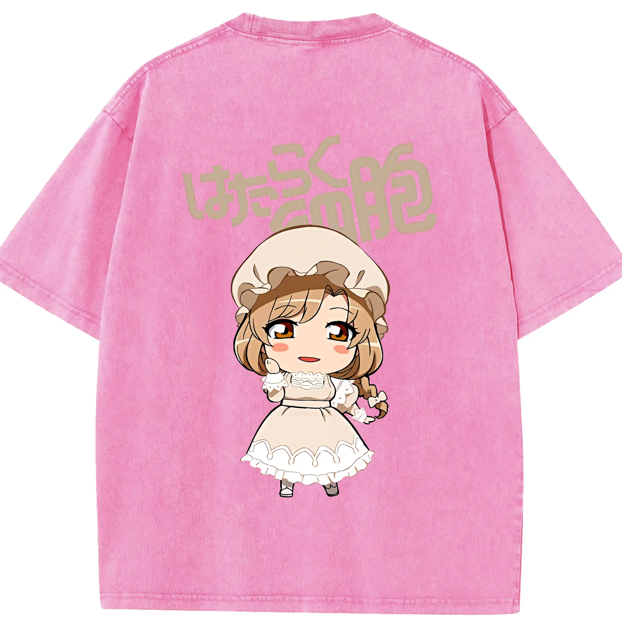 はたらく細胞 グッズ,マクロファージ - 綿100% ヴィンテージ風 半袖Tシャツ ・ フロントプリント ・ 柔らか肌触り ・ 通気性 快適 ・ スポーツ カジュアル 外出用