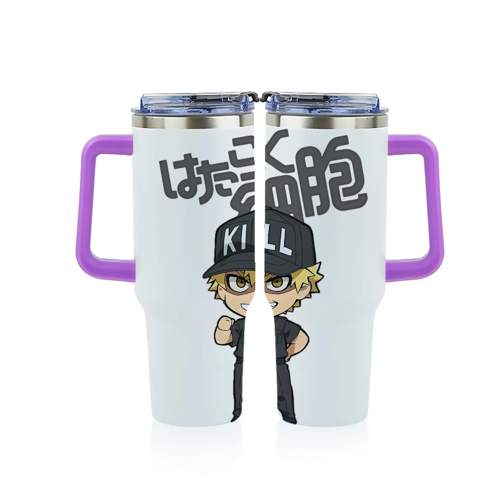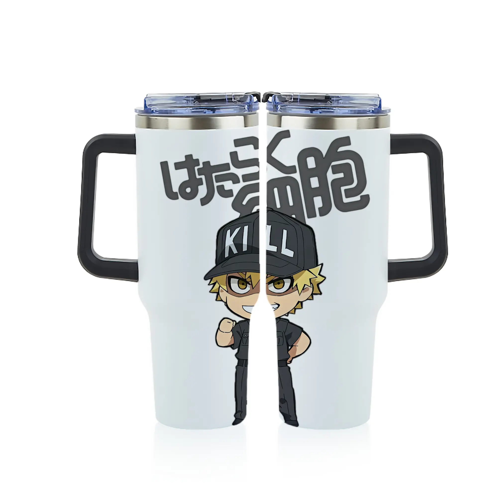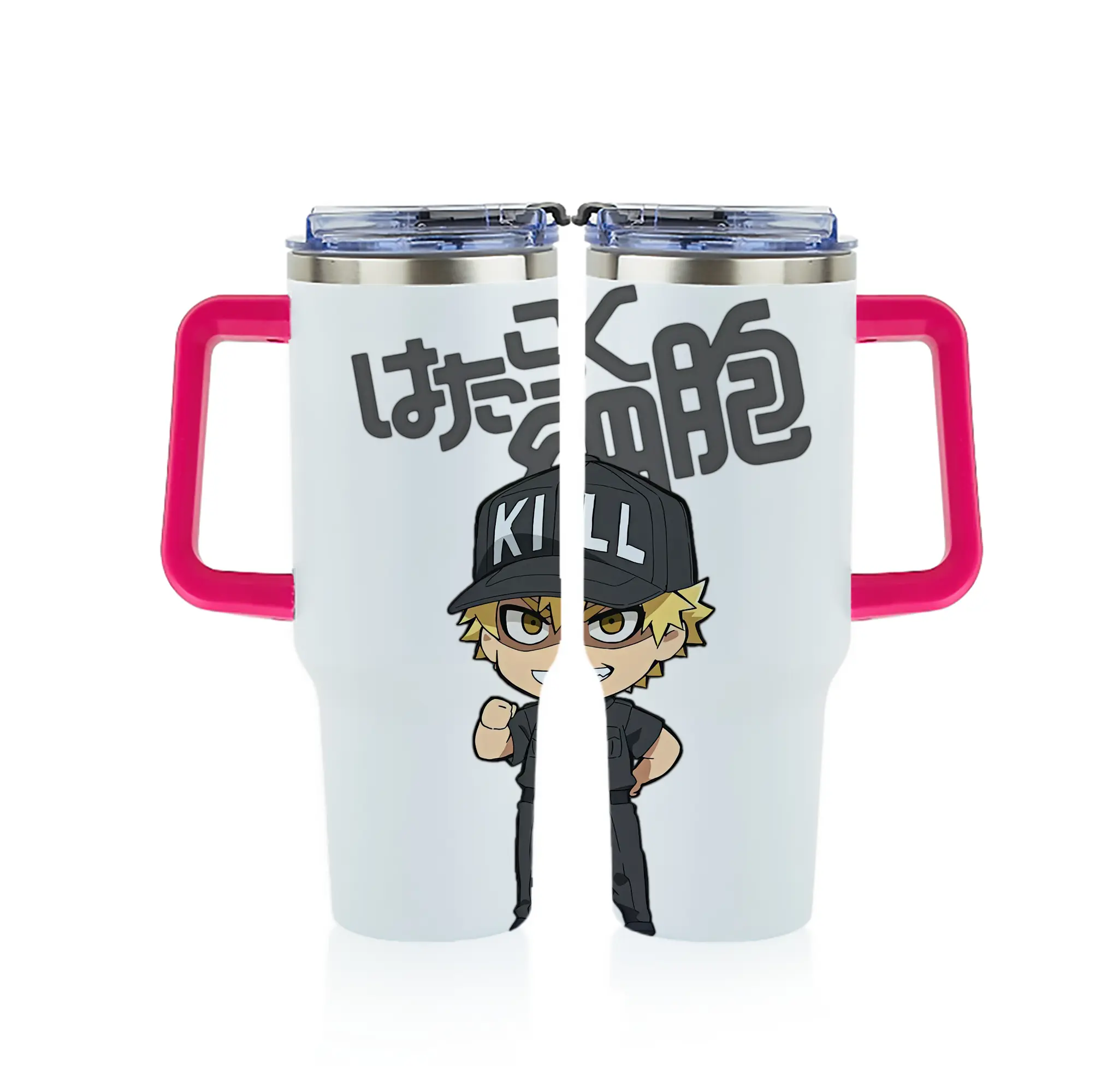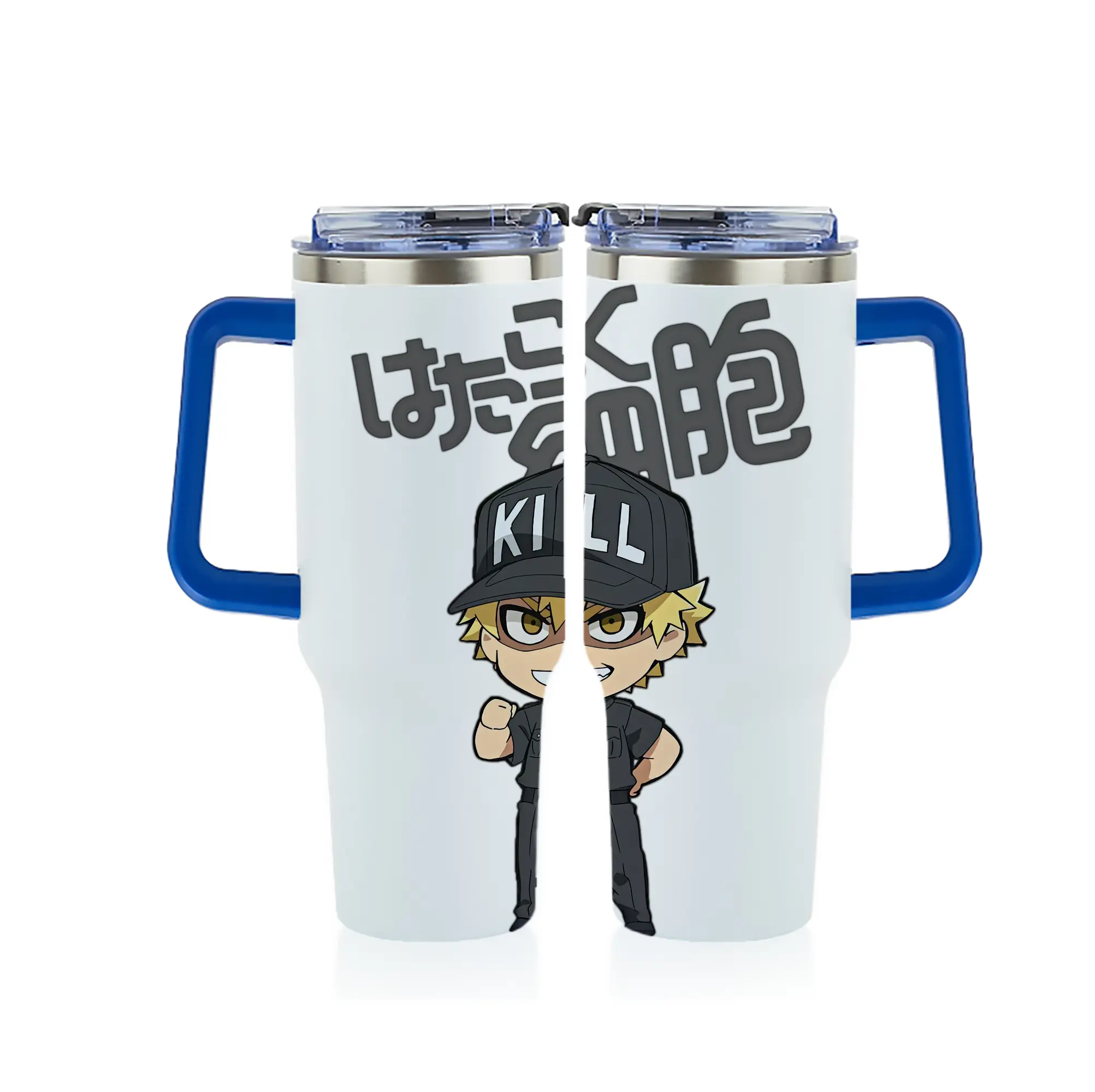 はたらく細胞 グッズ,キラーT細胞 - 1200mL フルプリント車用タンブラー ・ 304ステンレス 内側 ・ 201ステンレス 外側 ・ 保温 保冷 ・ 通勤 ドライブ アウトドア用