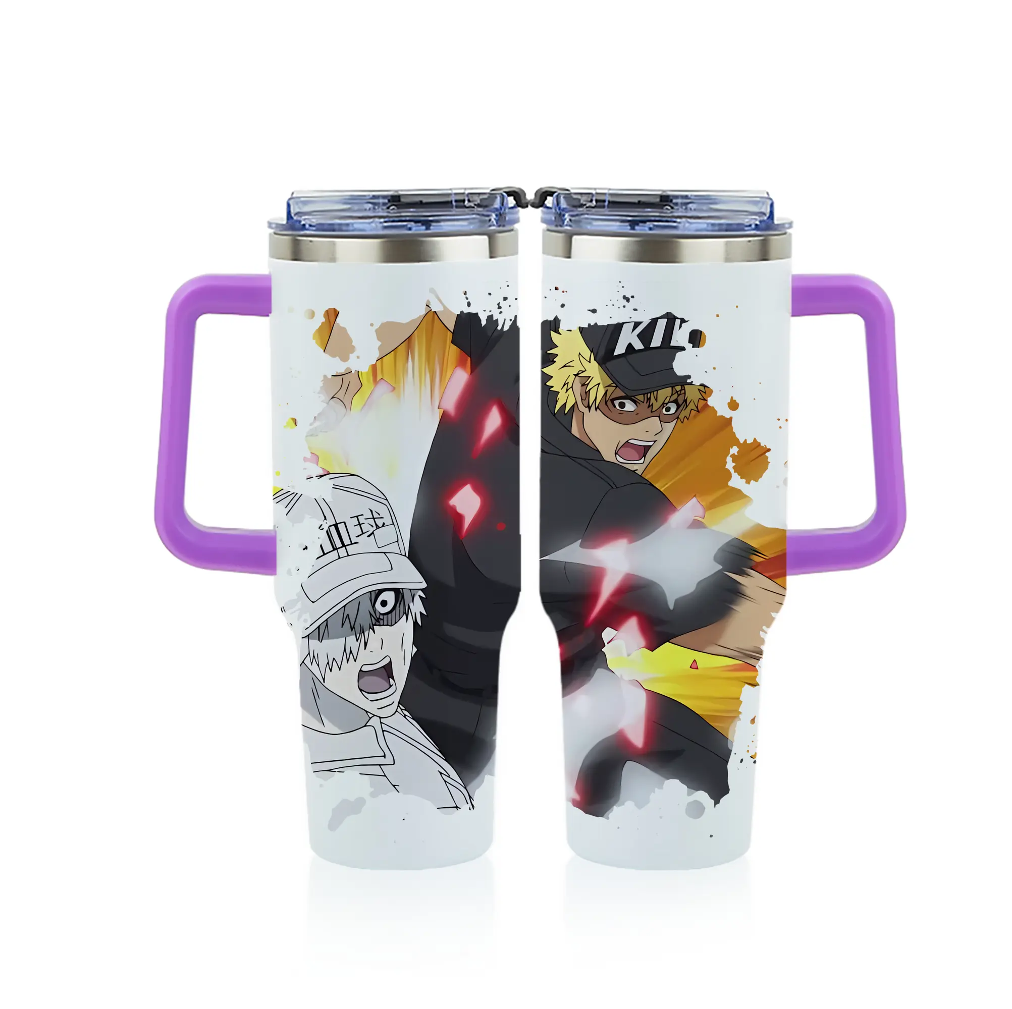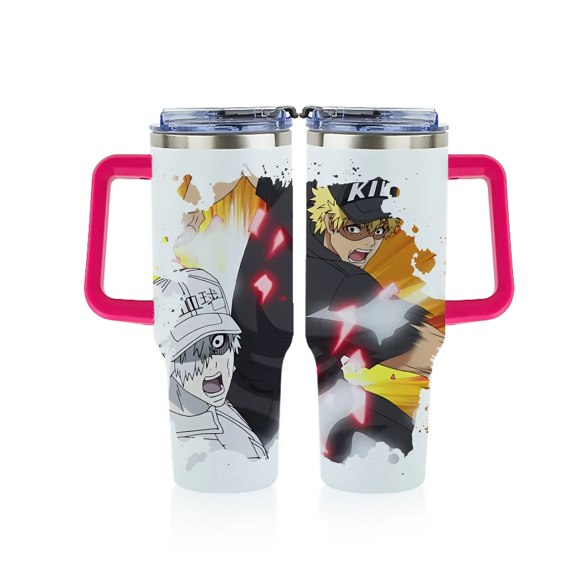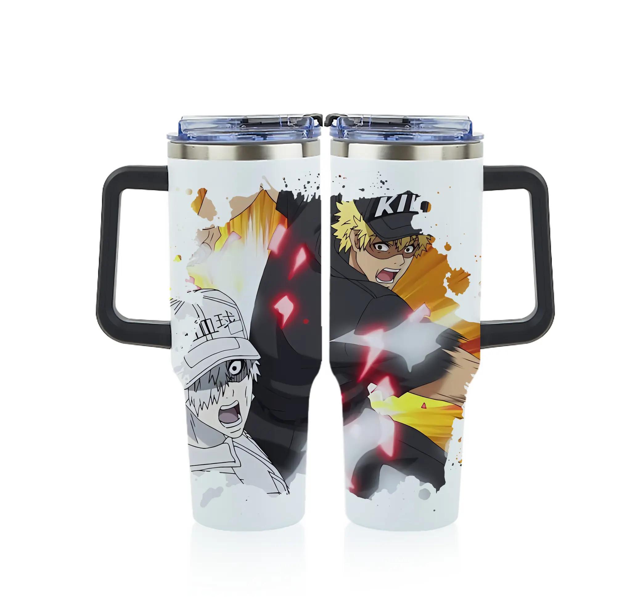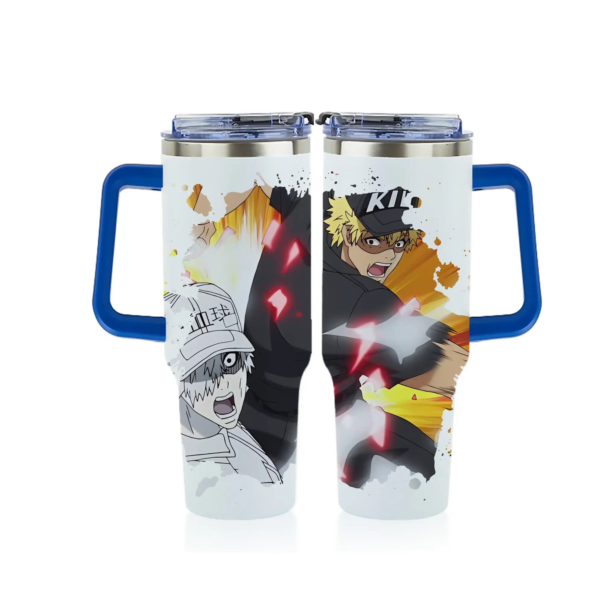 はたらく細胞 グッズ,キラーT細胞 - 1200mL フルプリント車用タンブラー ・ 304ステンレス 内側 ・ 201ステンレス 外側 ・ 保温 保冷 ・ 通勤 ドライブ アウトドア用