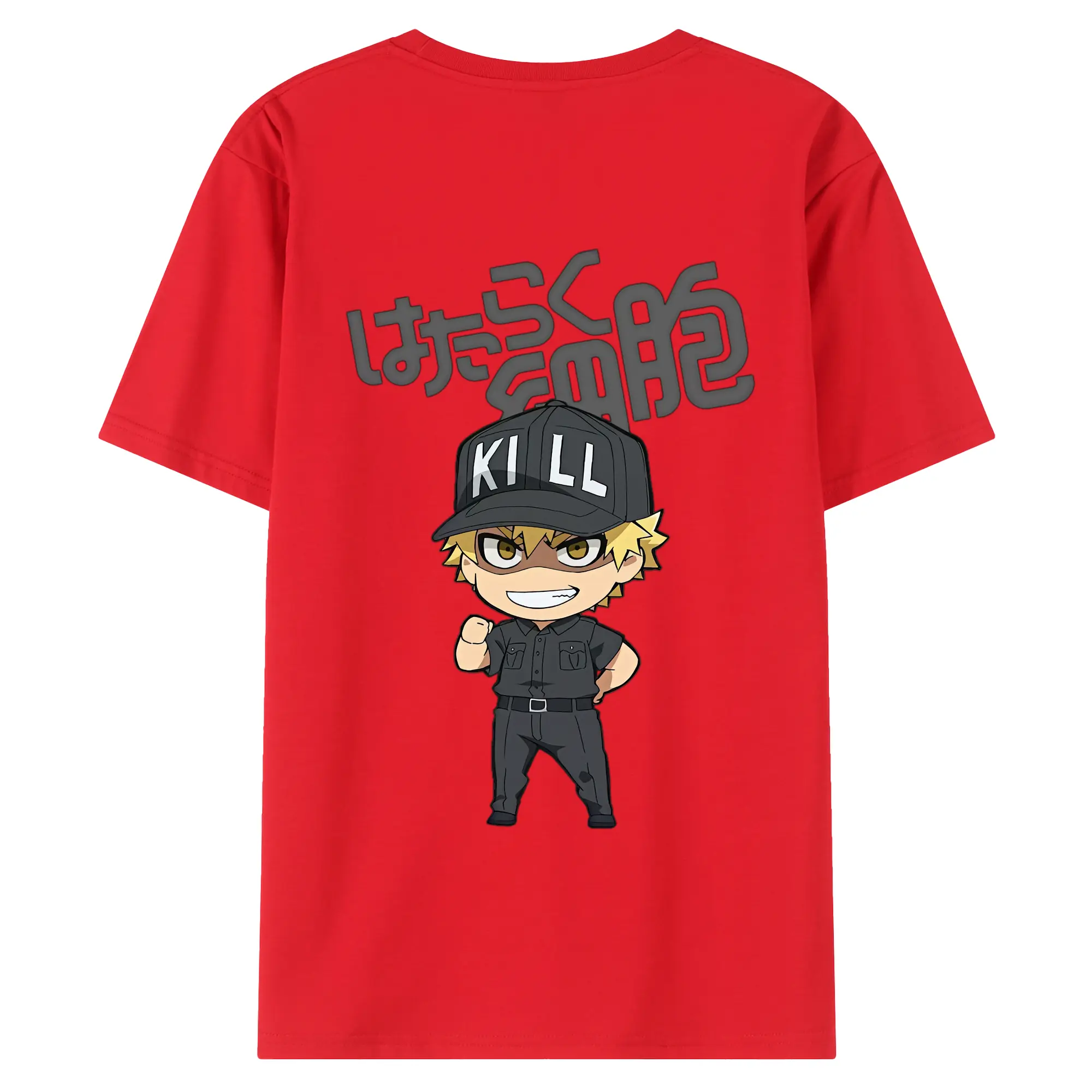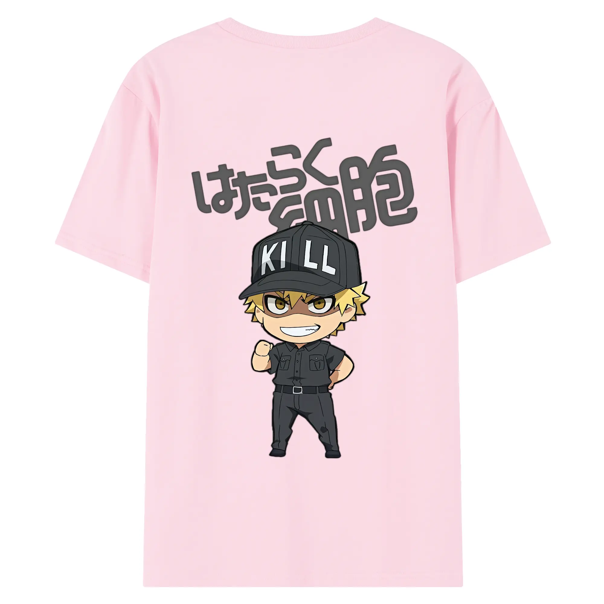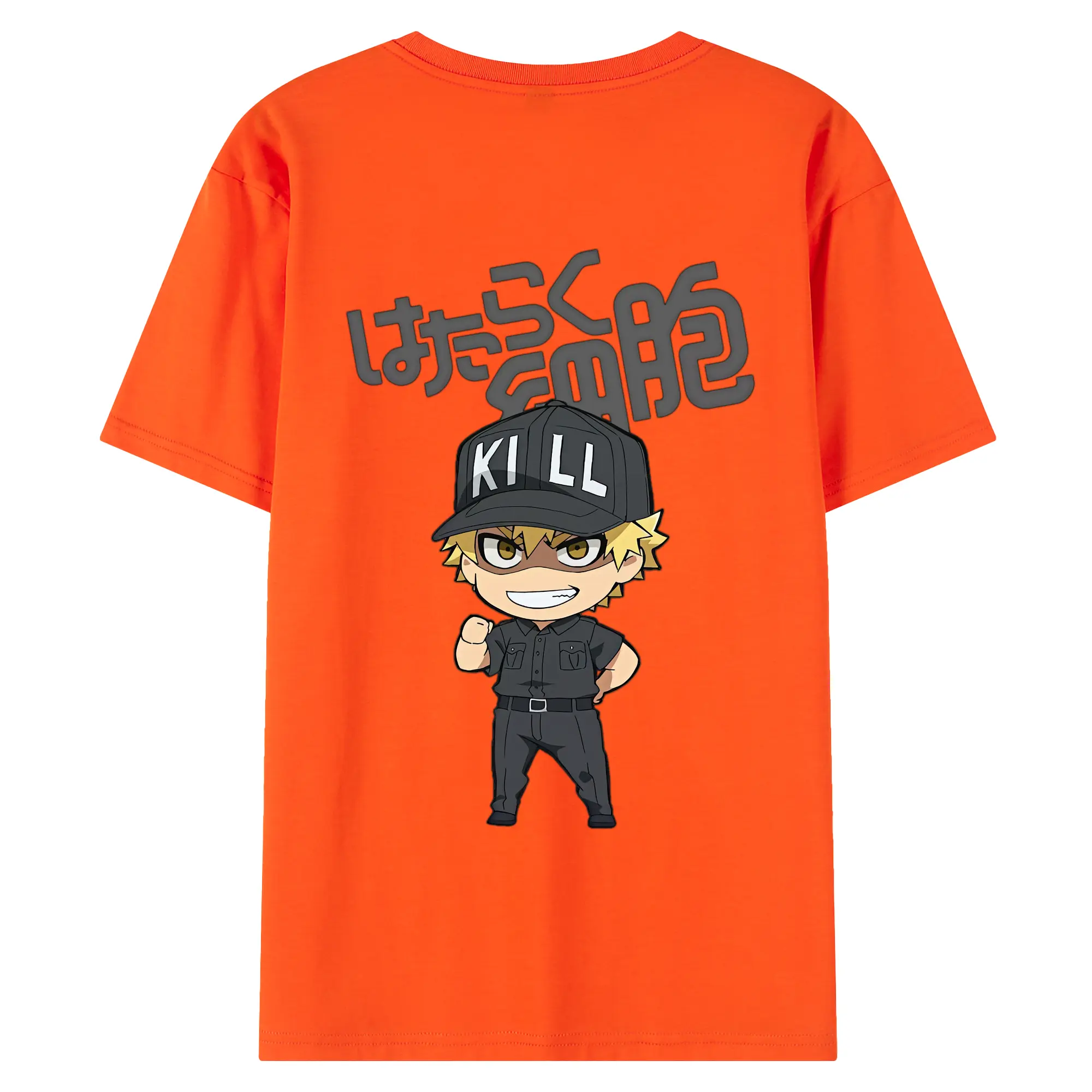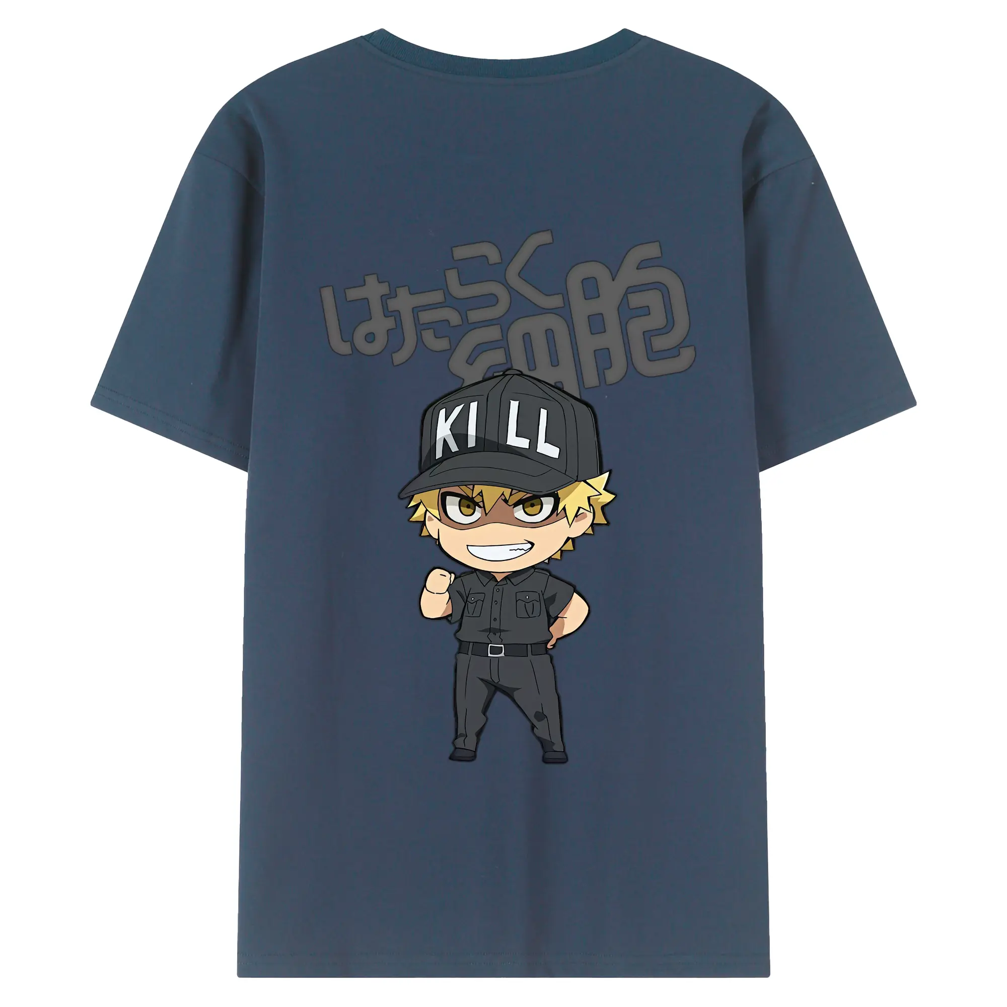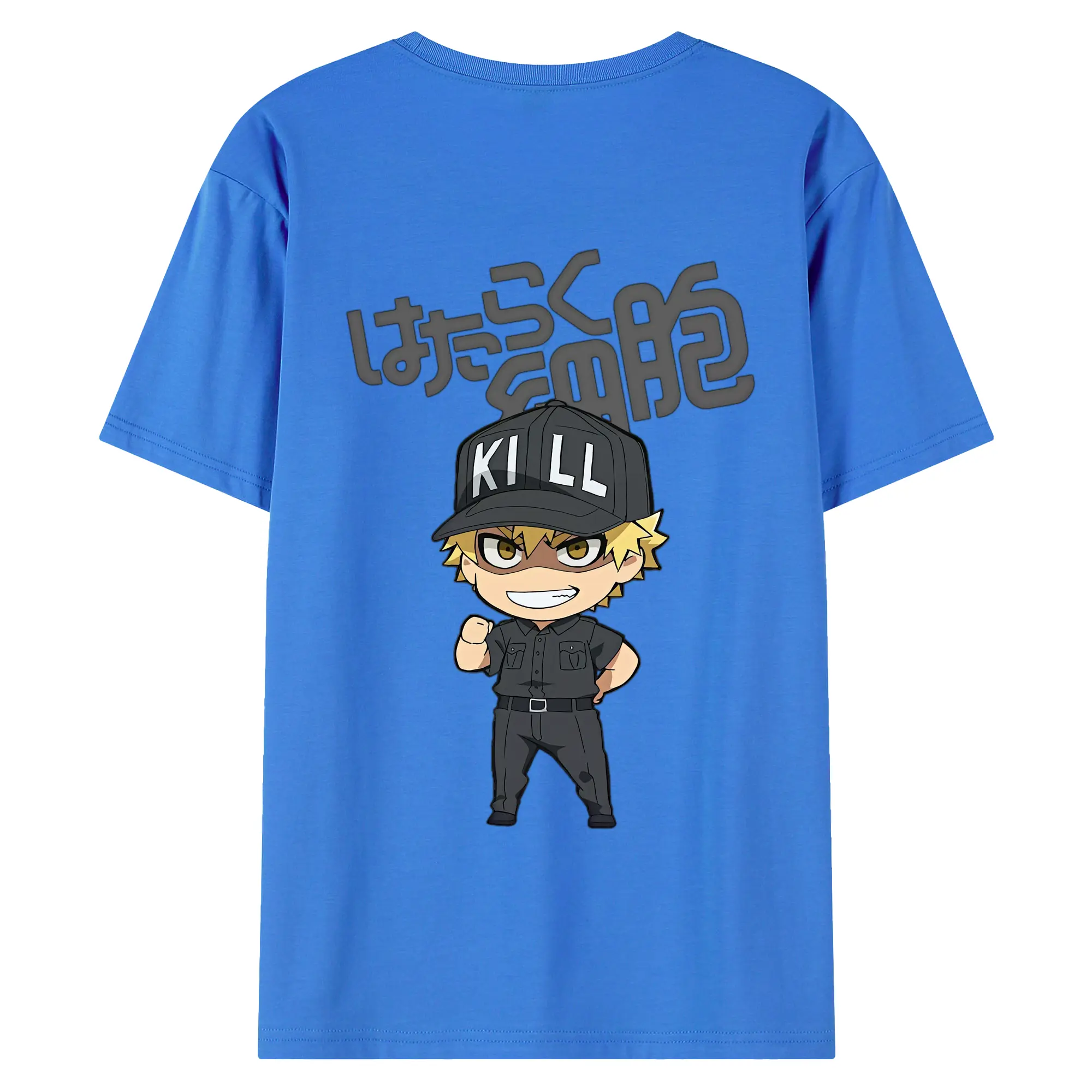 はたらく細胞 グッズ,キラーT細胞 - 綿100% 半袖Tシャツ ・ フロントプリント ・ 快適 通気性 ・ 日常使い 散歩 スポーツ用