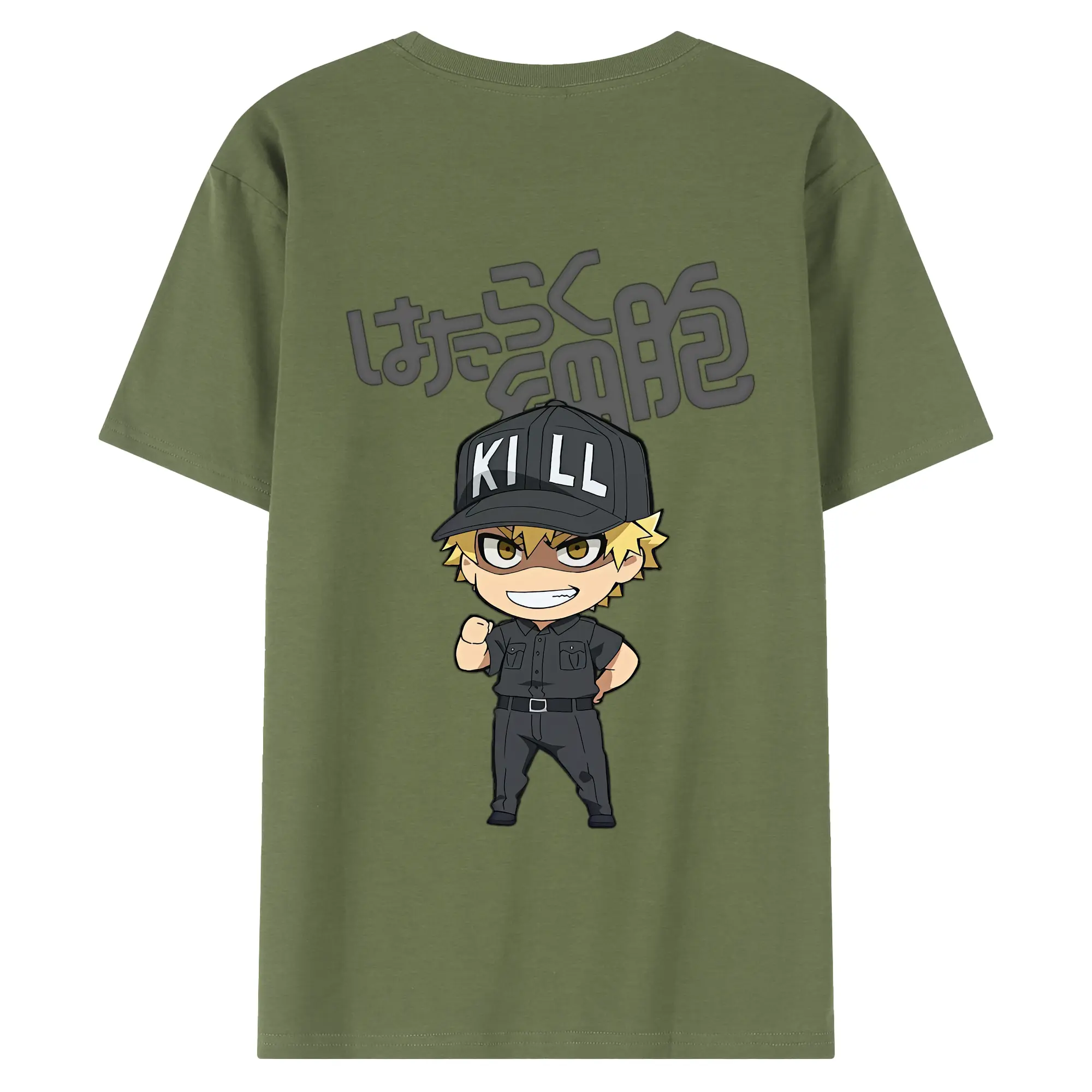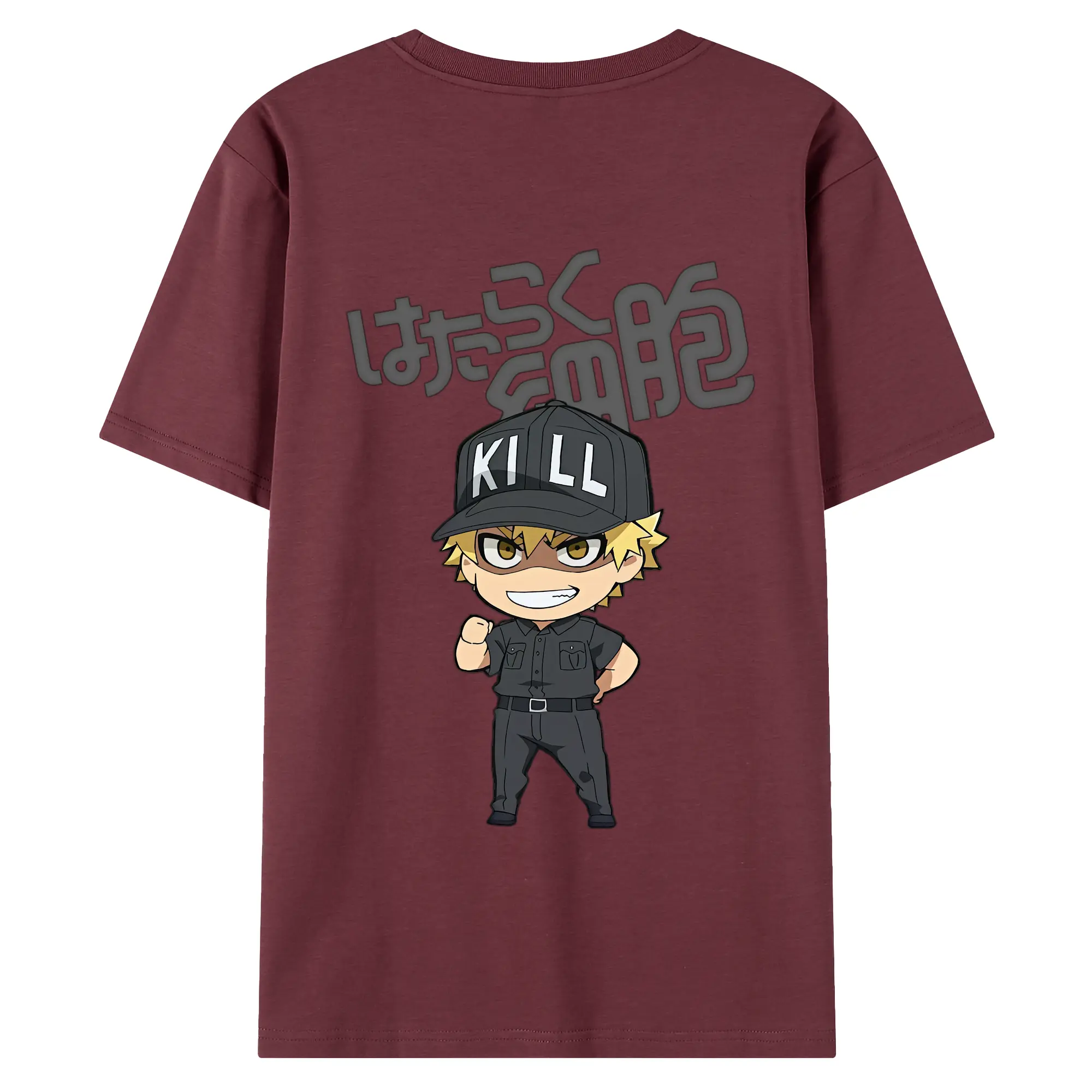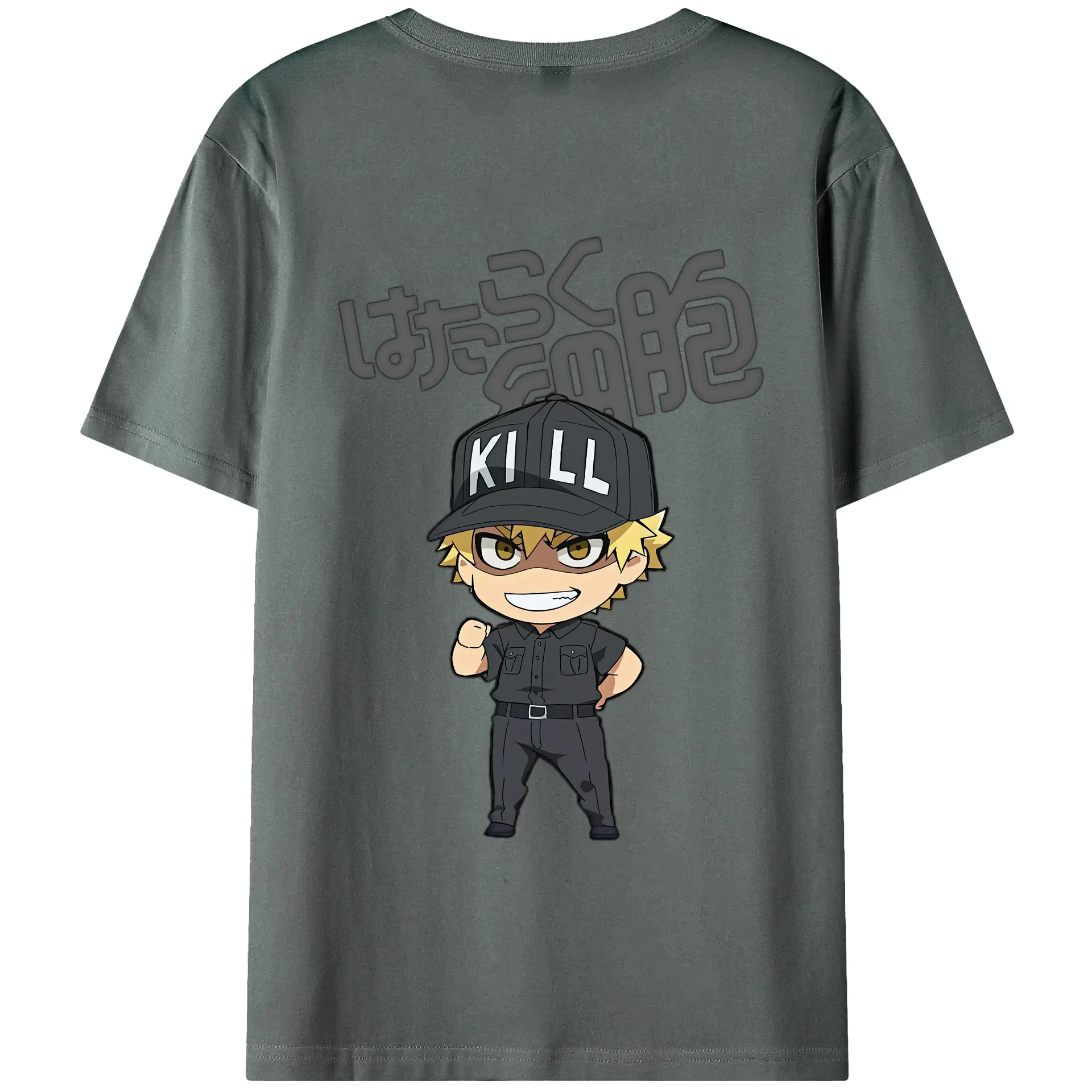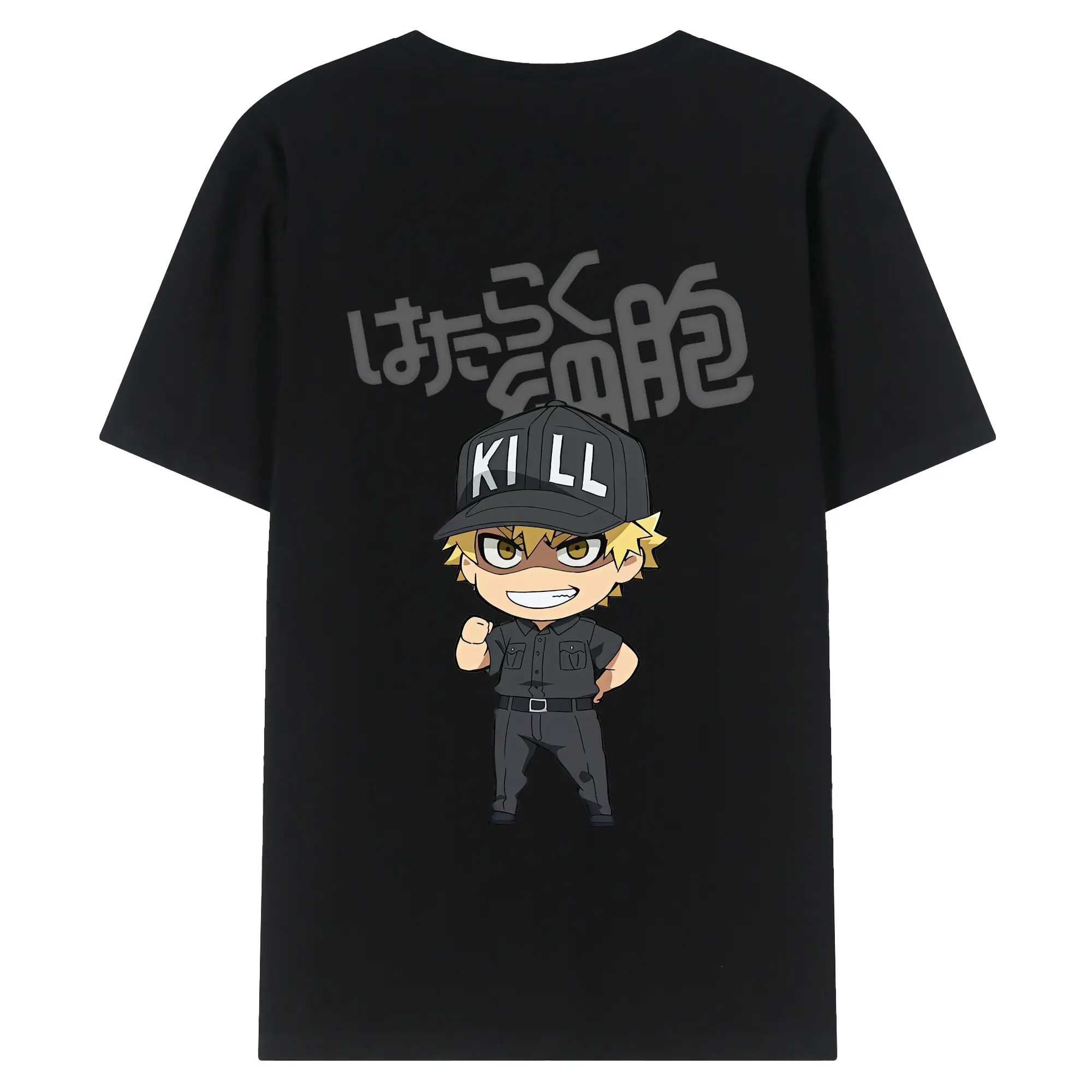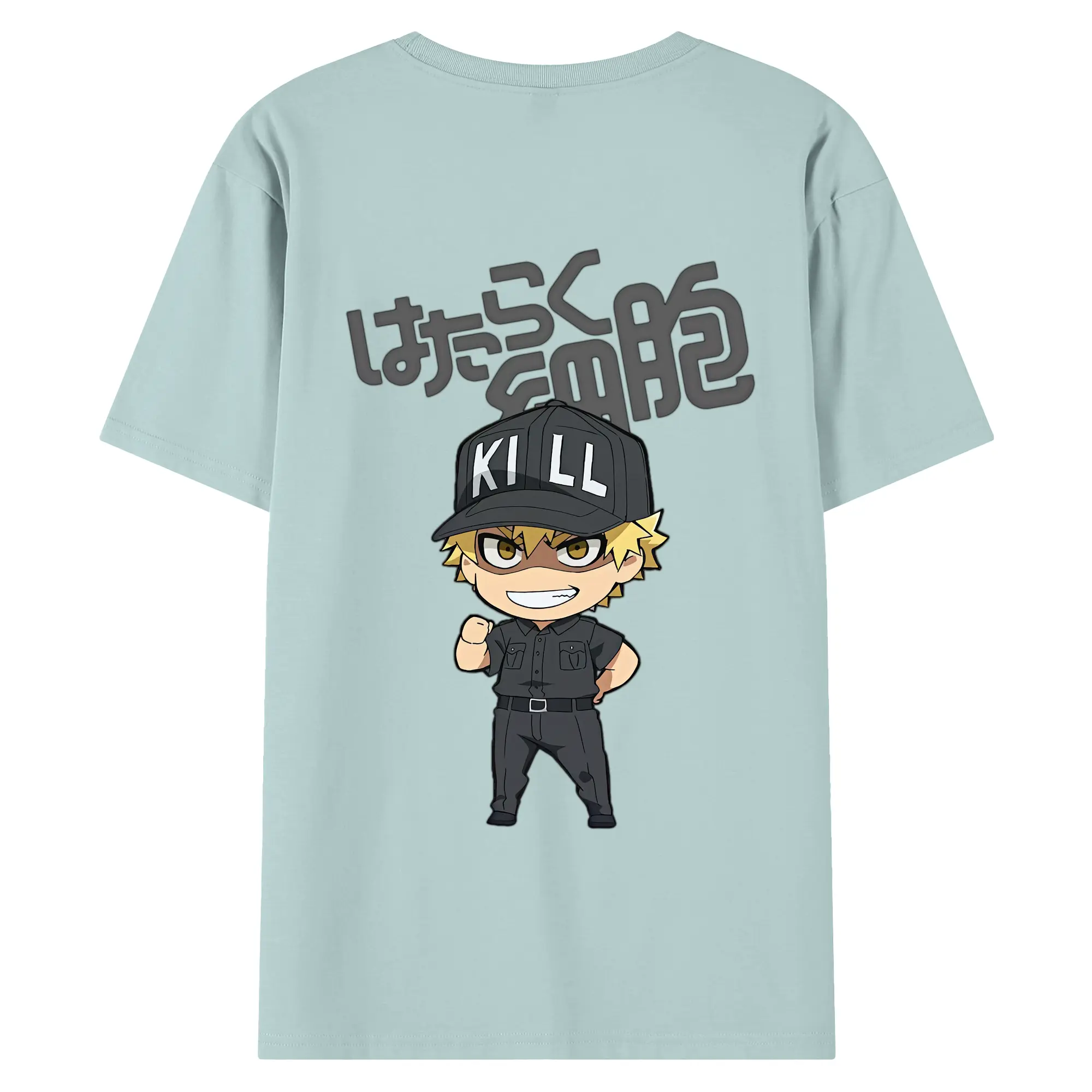 はたらく細胞 グッズ,キラーT細胞 - 綿100% 半袖Tシャツ ・ フロントプリント ・ 快適 通気性 ・ 日常使い 散歩 スポーツ用