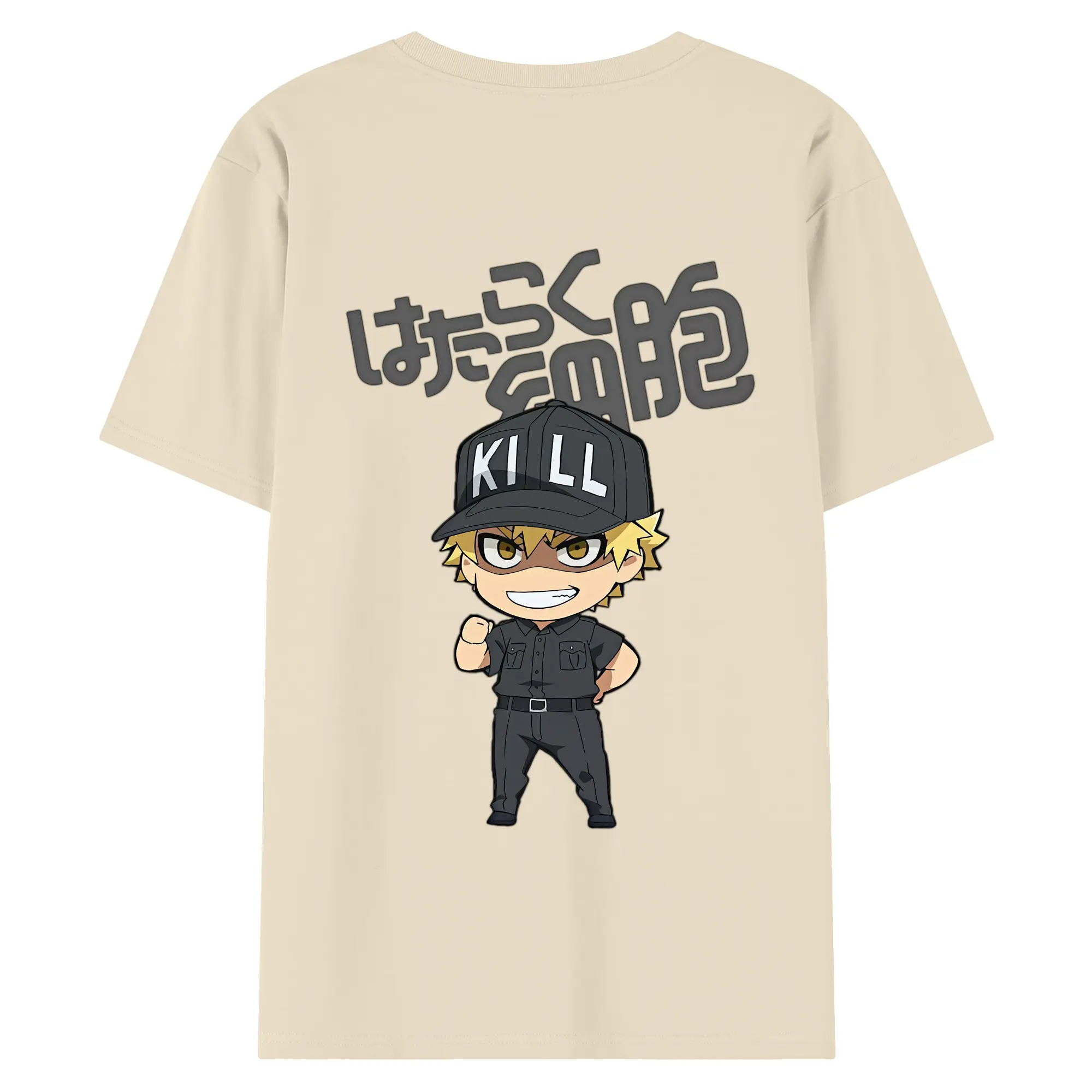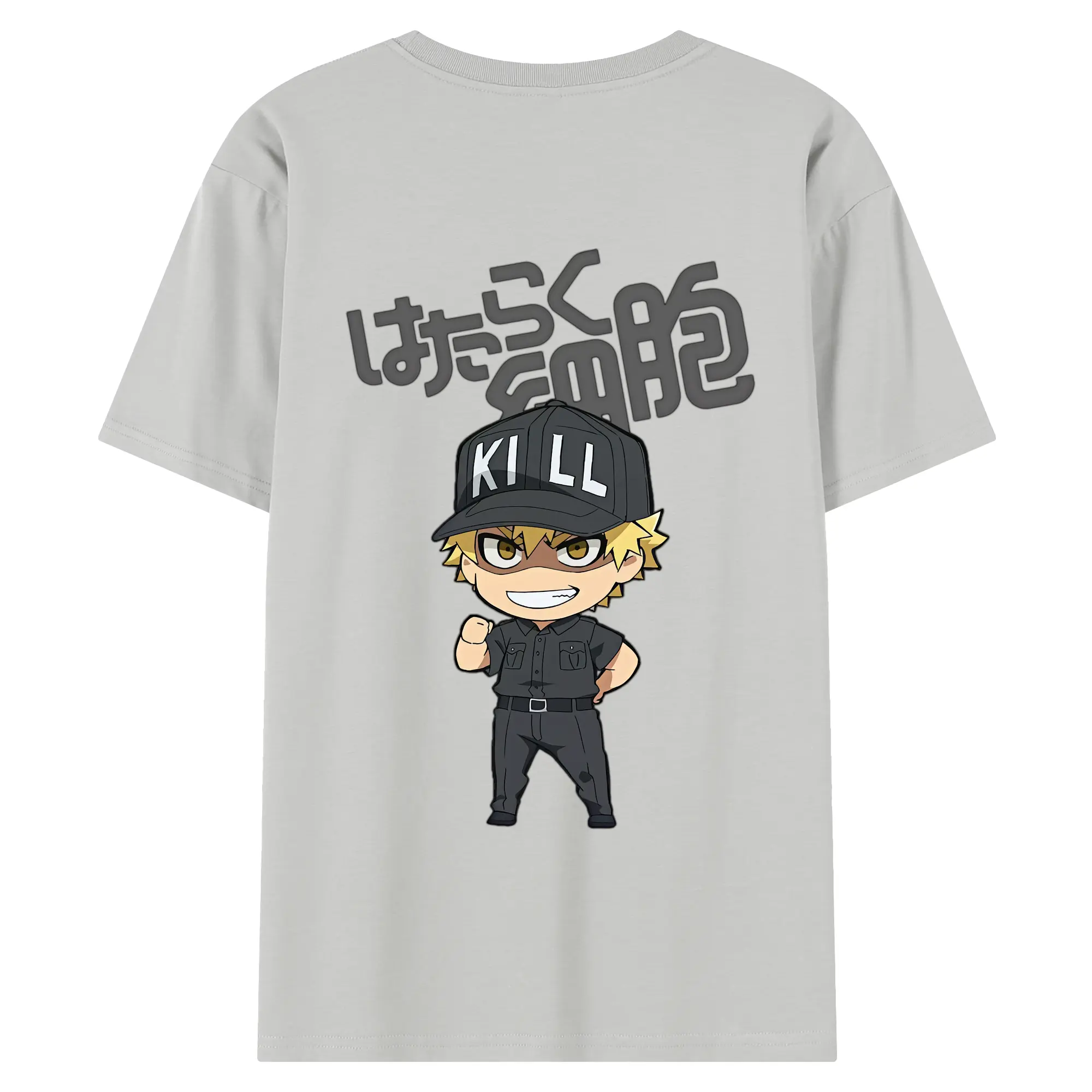はたらく細胞 グッズ,キラーT細胞 - 綿100% ヴィンテージ風 半袖Tシャツ ・ 背面プリント ・ 柔らか肌触り ・ 通気性 快適 ・ スポーツ カジュアル 外出用