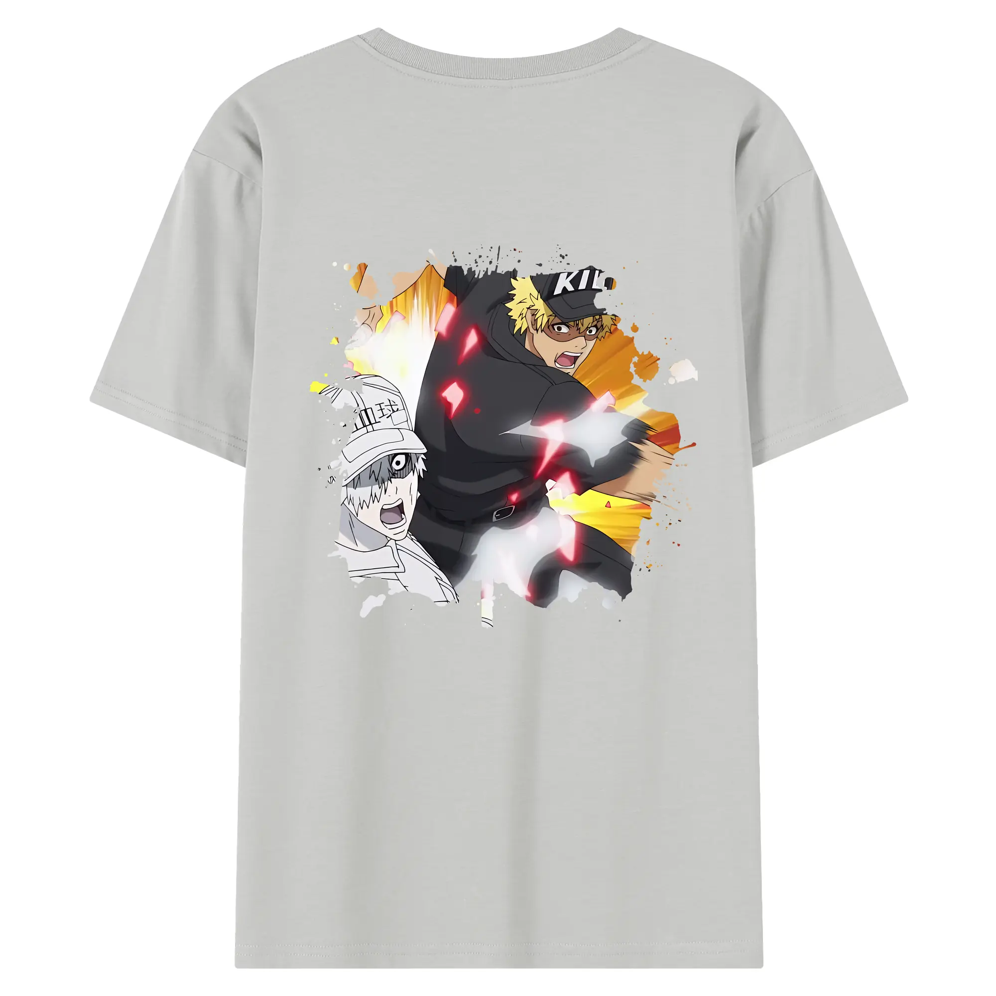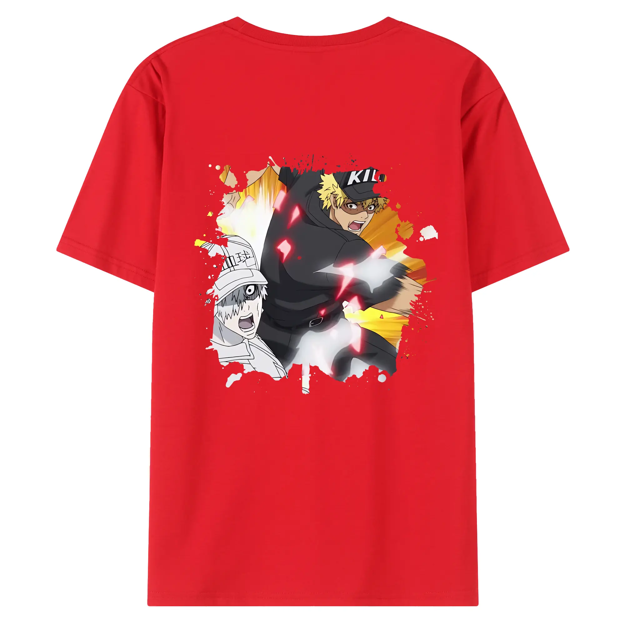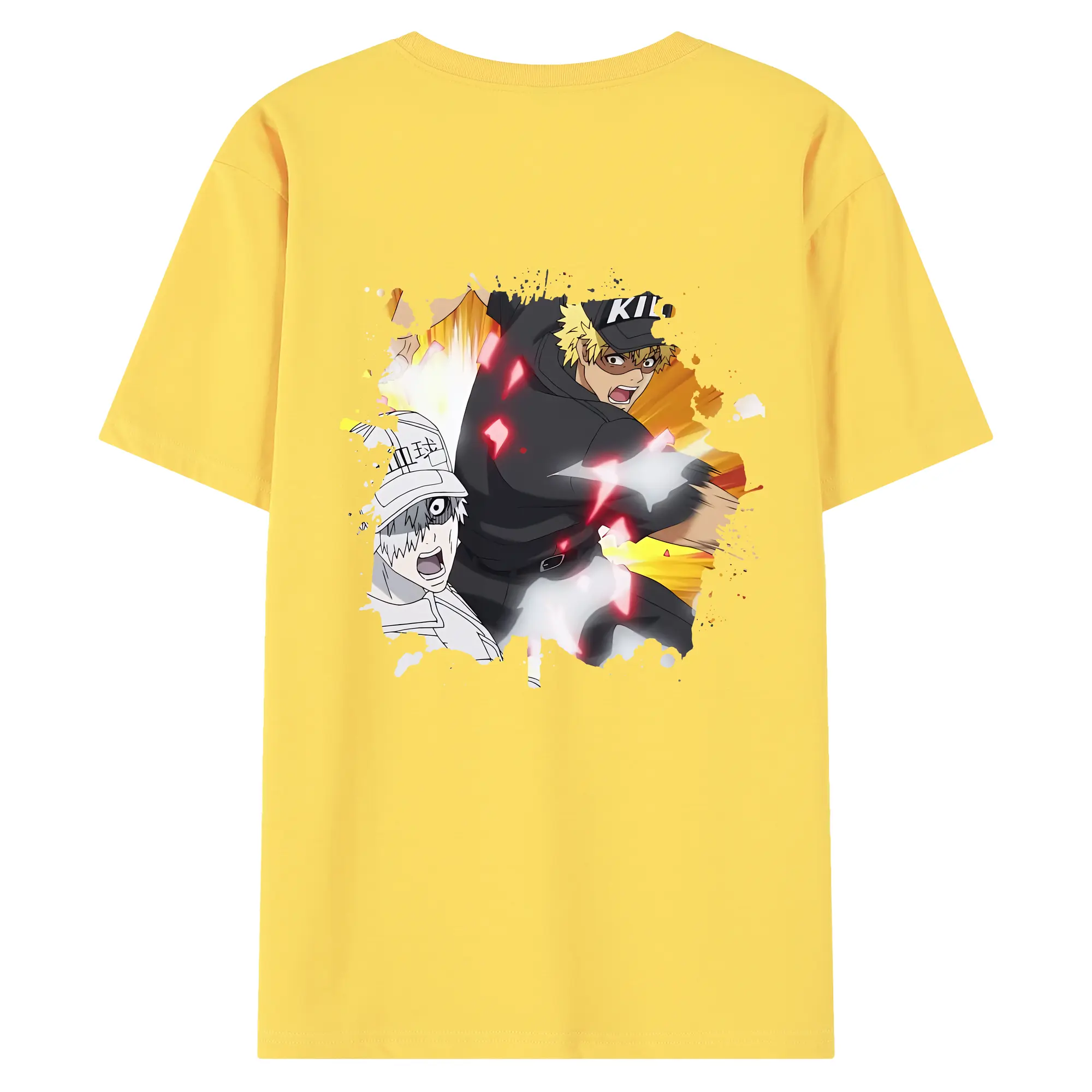 はたらく細胞 グッズ,キラーT細胞 - 綿100% ヴィンテージ風 半袖Tシャツ ・ 背面プリント ・ 柔らか肌触り ・ 通気性 快適 ・ スポーツ カジュアル 外出用