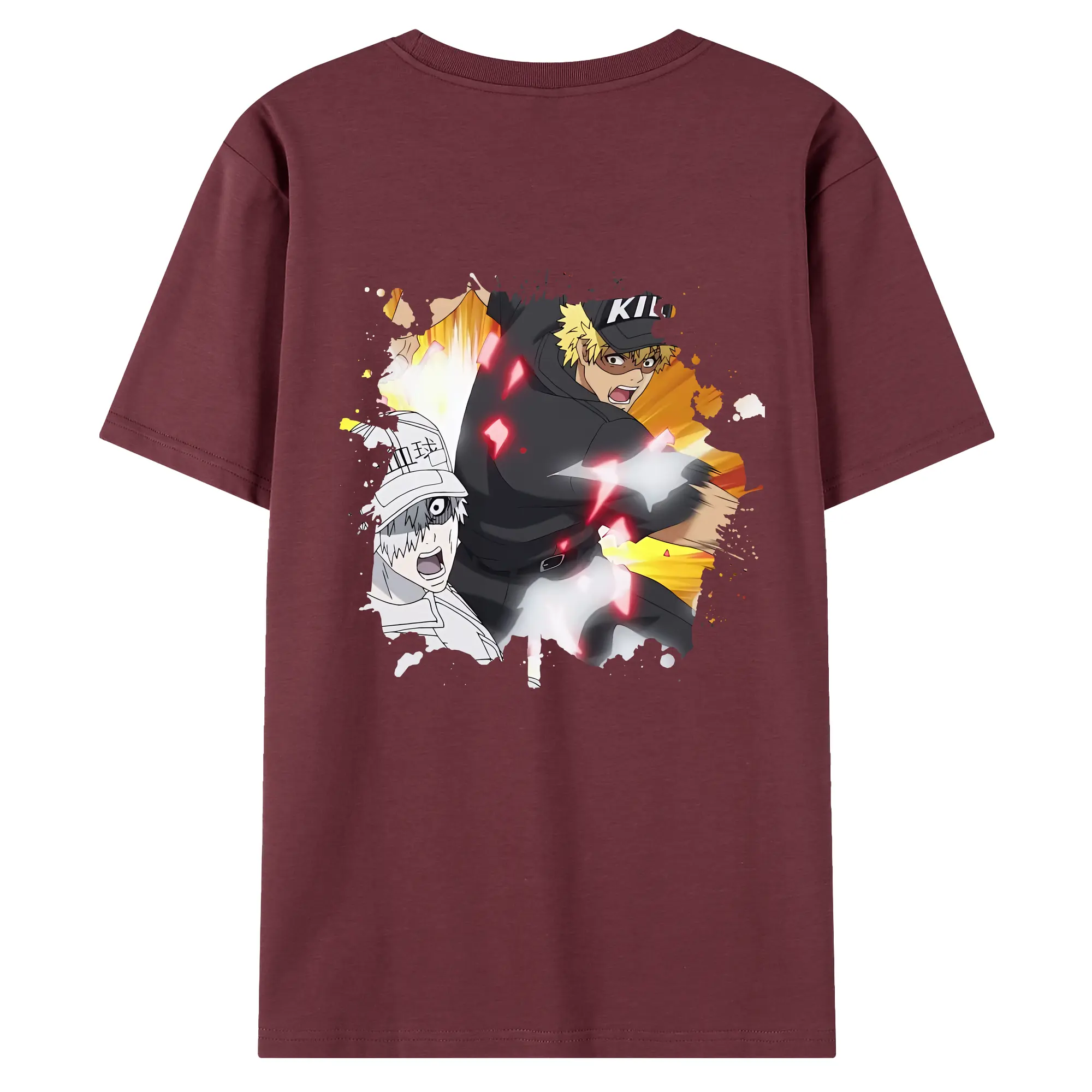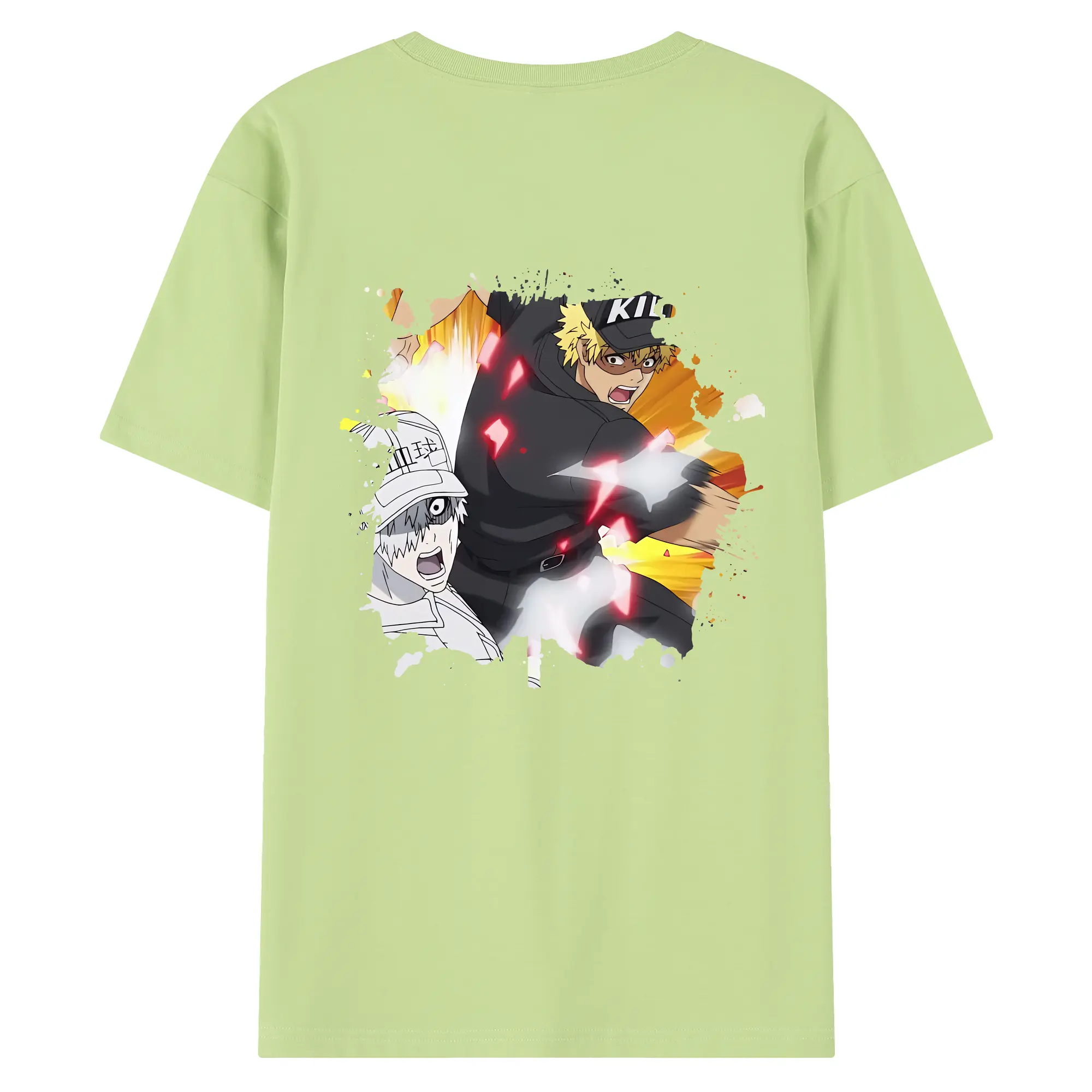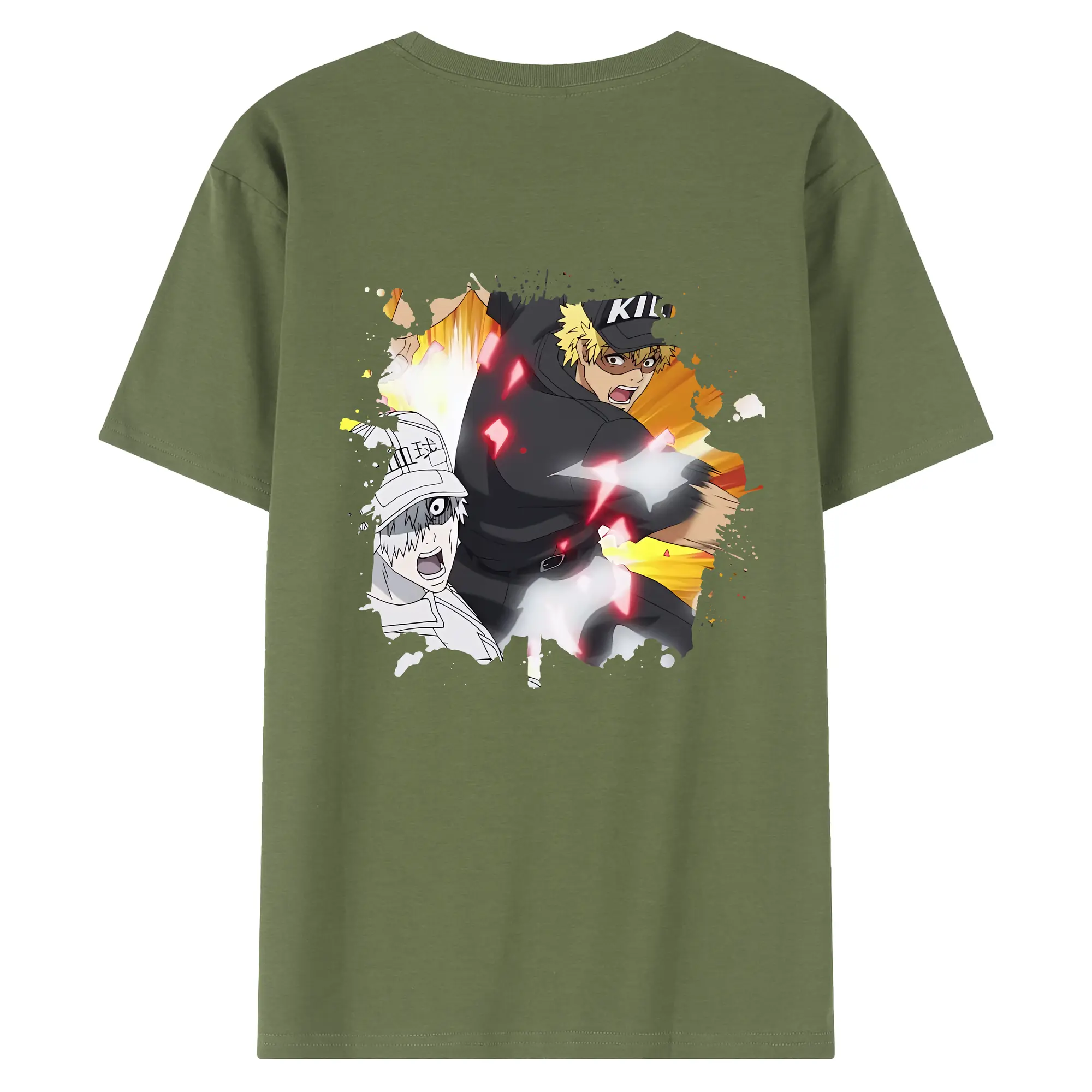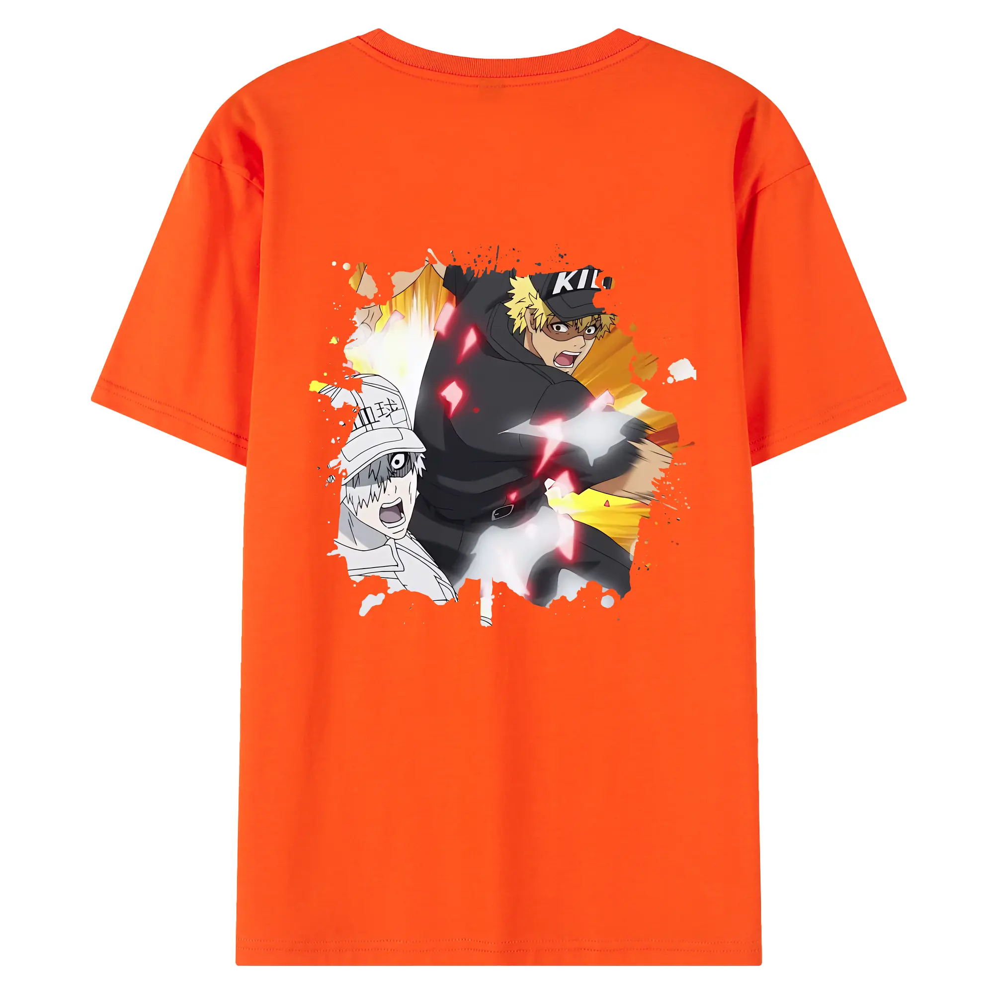はたらく細胞 グッズ,キラーT細胞 - 綿100% ヴィンテージ風 半袖Tシャツ ・ 背面プリント ・ 柔らか肌触り ・ 通気性 快適 ・ スポーツ カジュアル 外出用