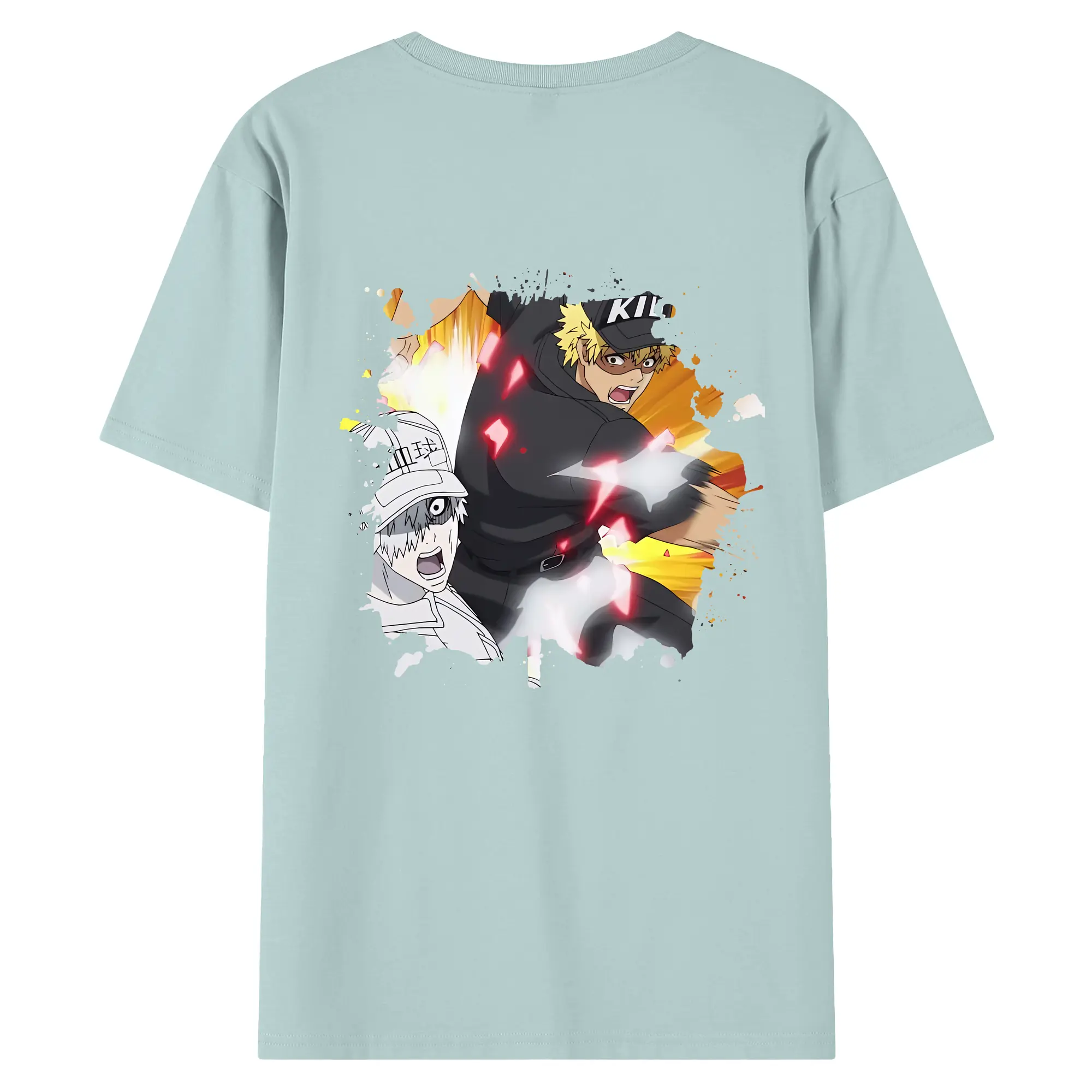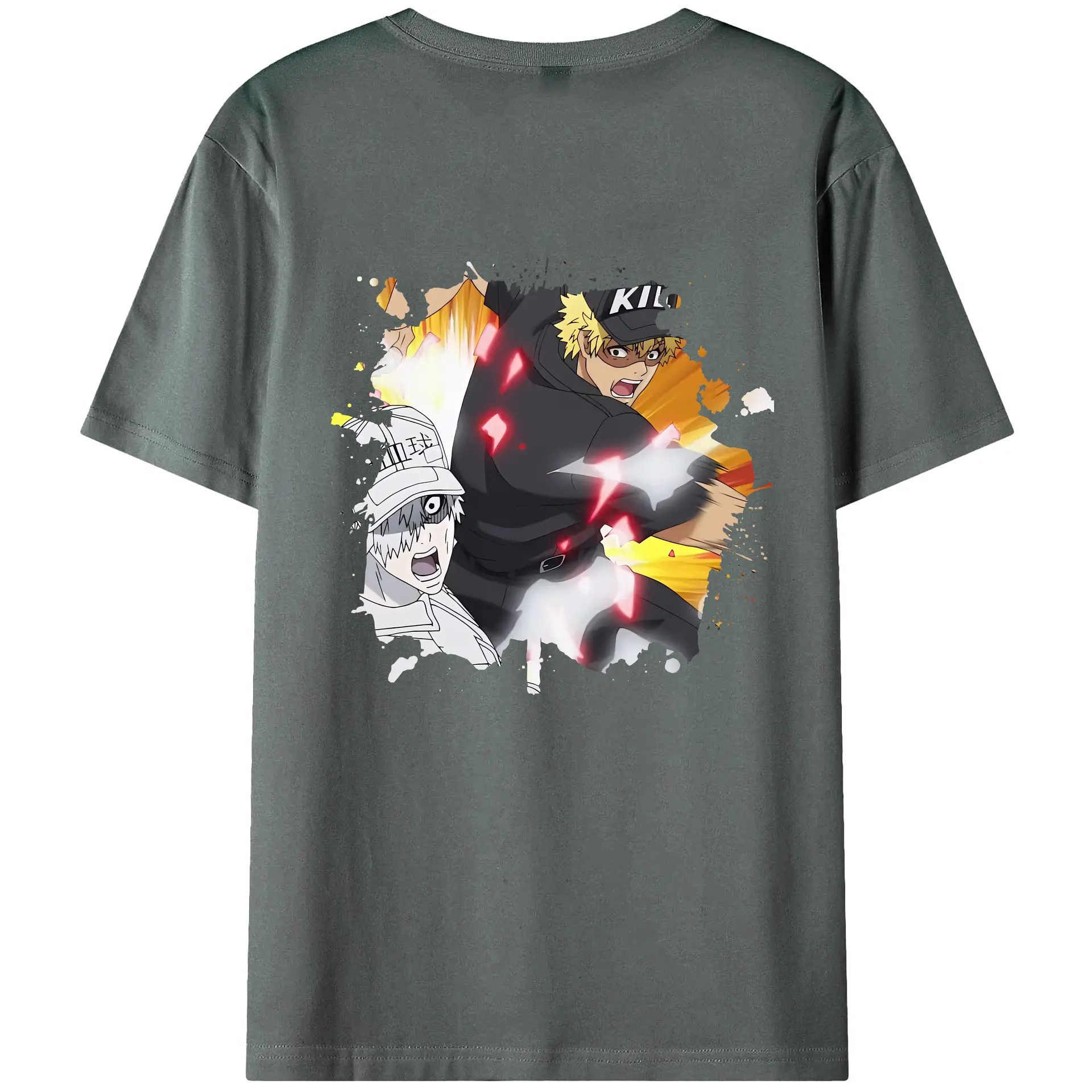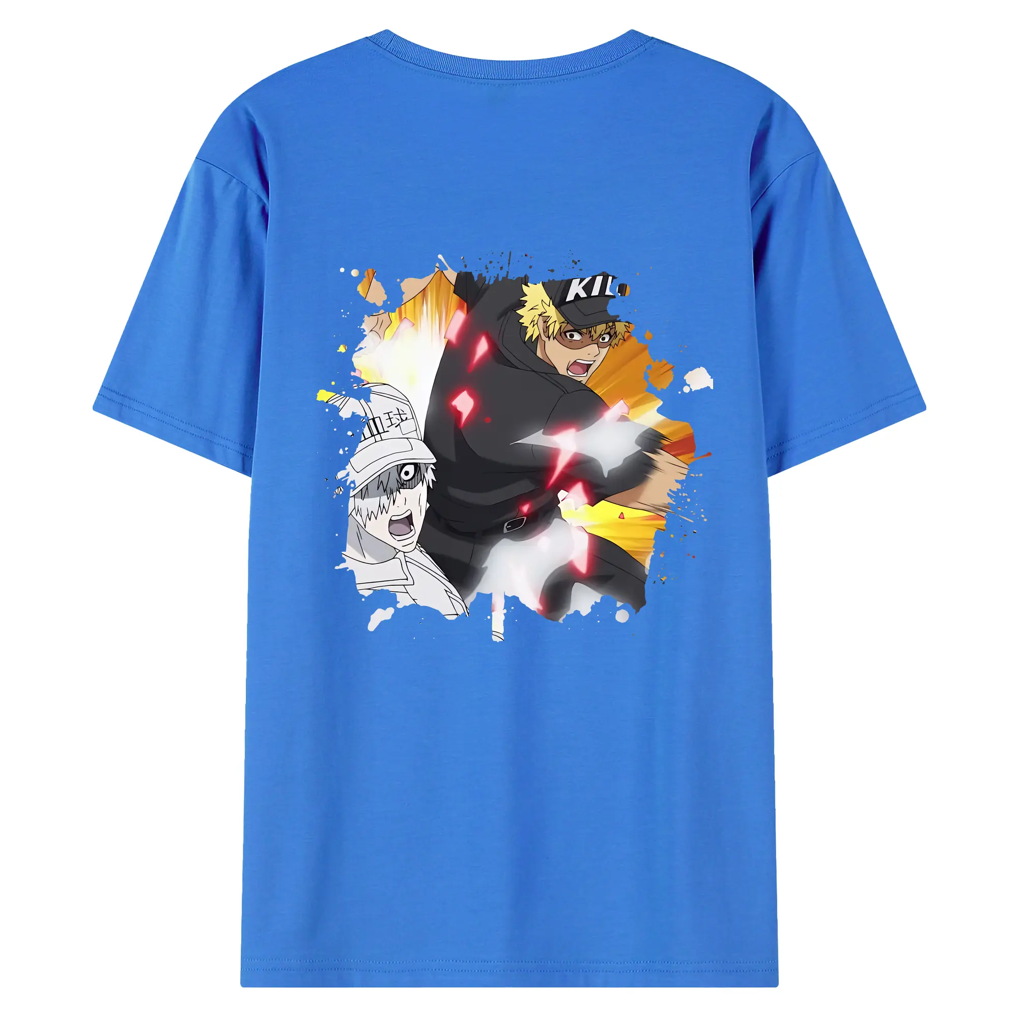 はたらく細胞 グッズ,キラーT細胞 - 綿100% 半袖Tシャツ ・ フロントプリント ・ 快適 通気性 ・ 日常使い 散歩 スポーツ用