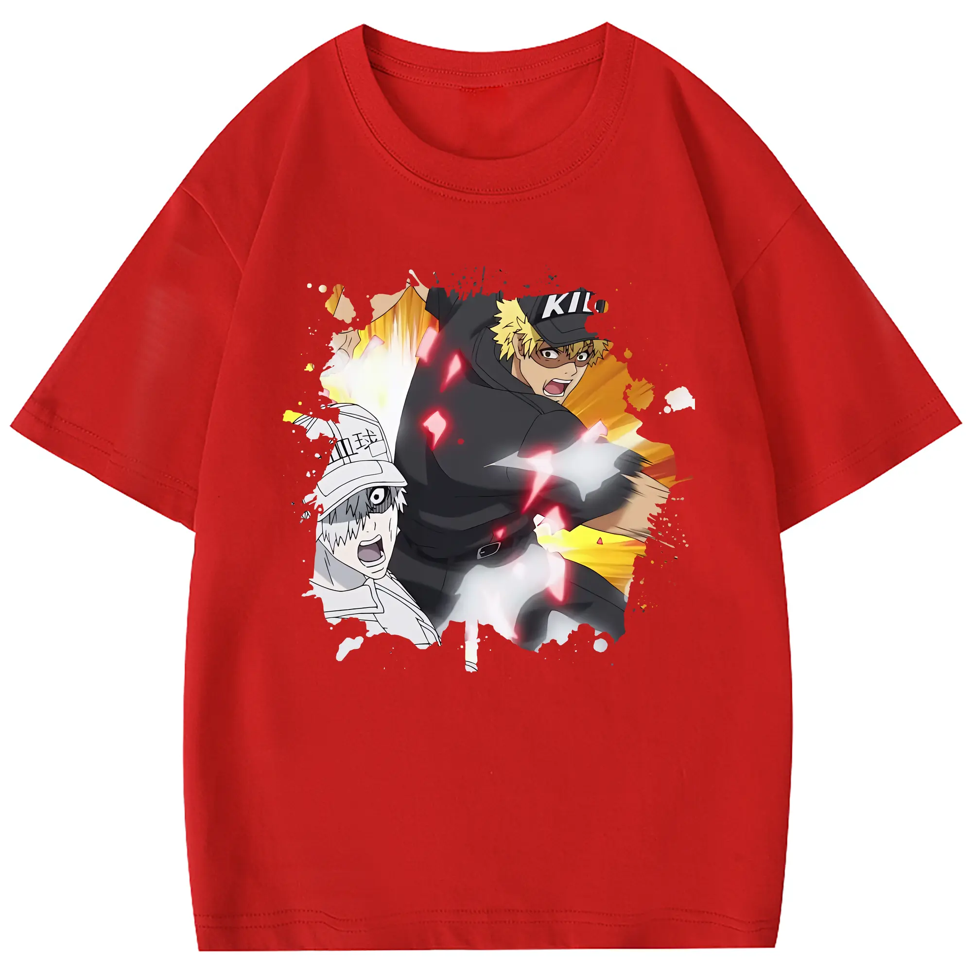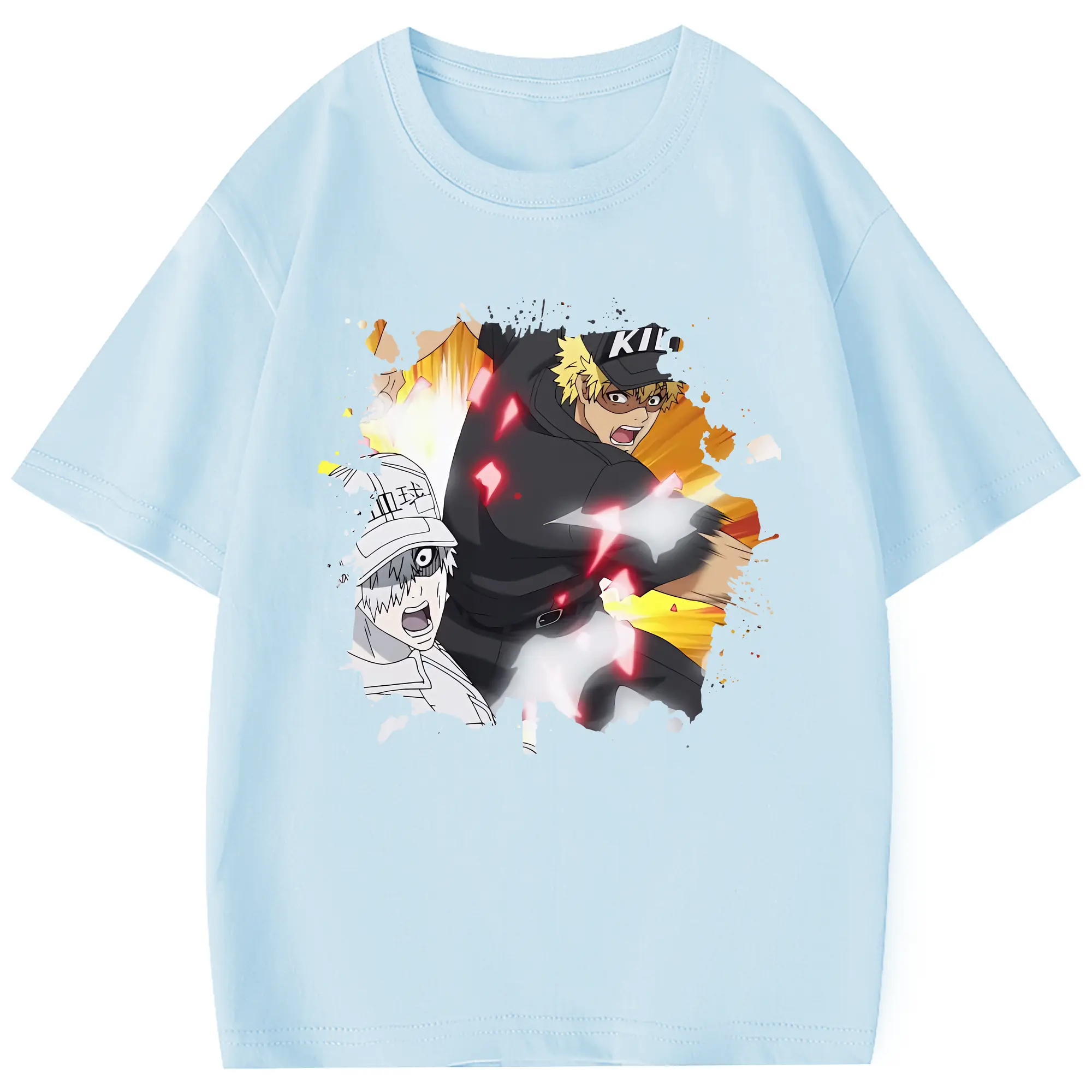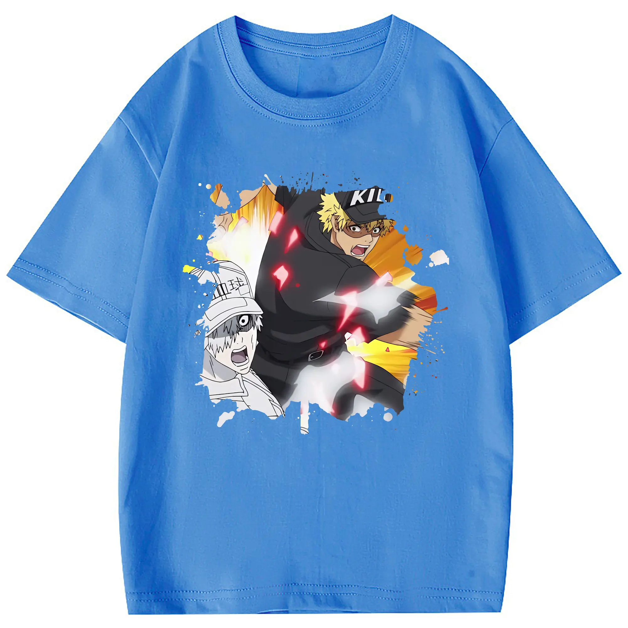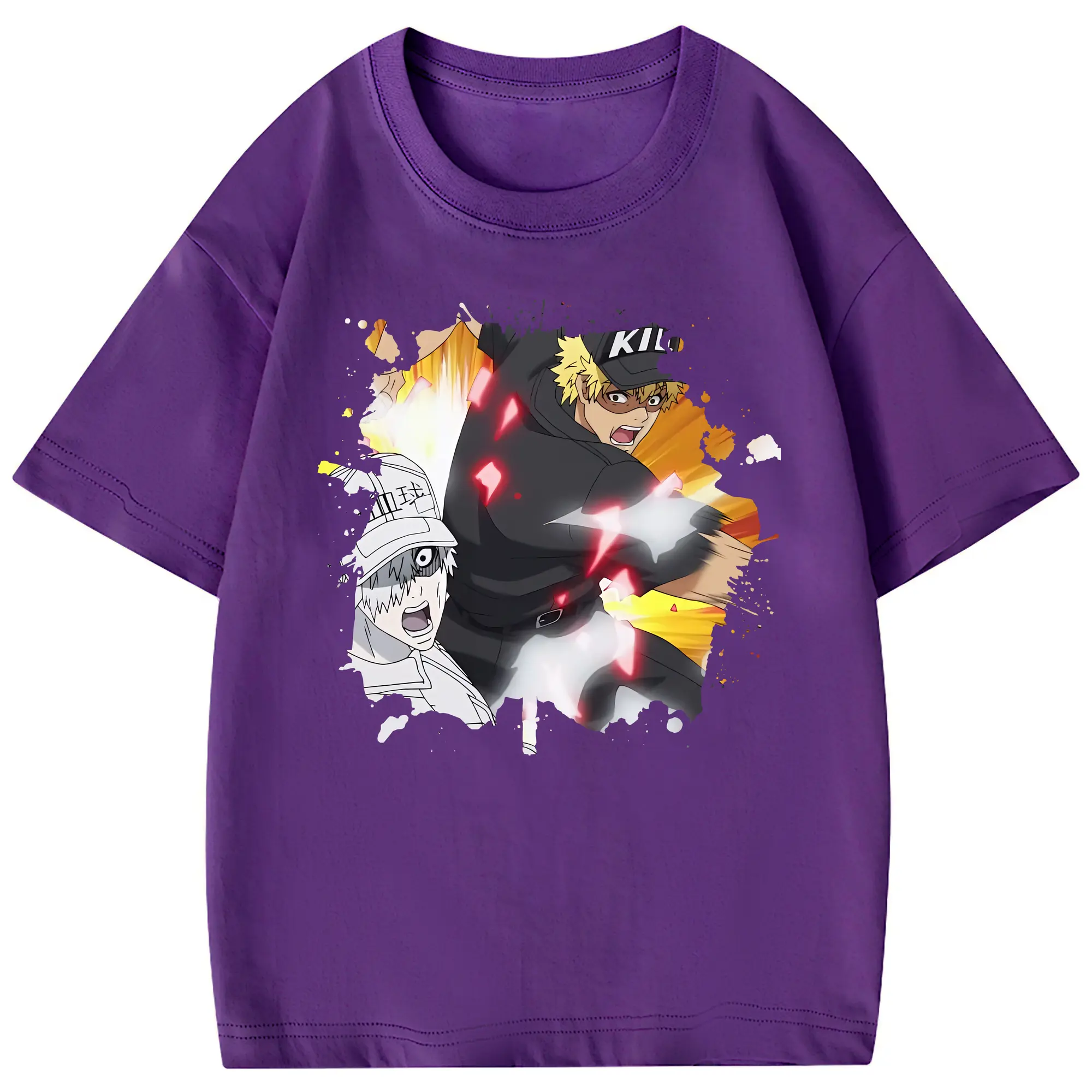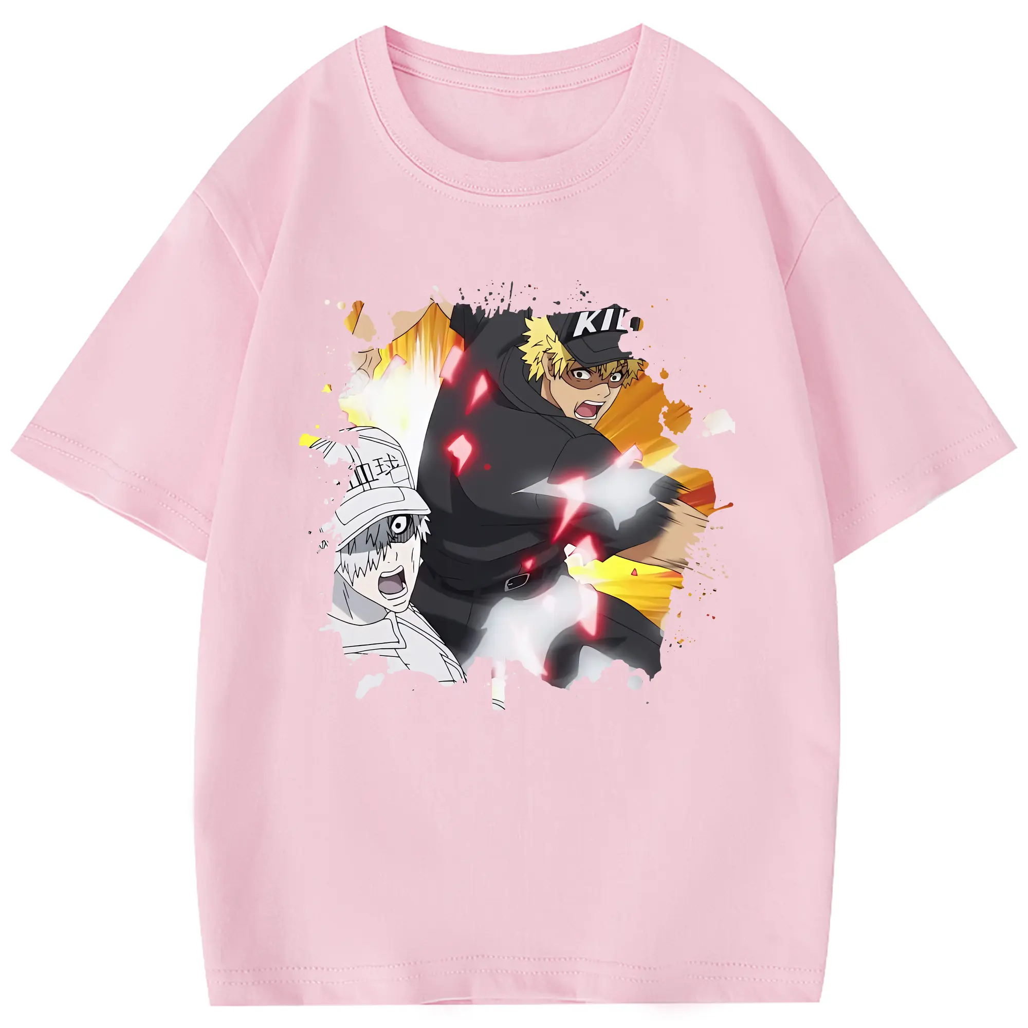 はたらく細胞 グッズ,キラーT細胞 - 綿100% 半袖Tシャツ ・ フロントプリント ・ 快適 通気性 ・ 日常使い 散歩 スポーツ用