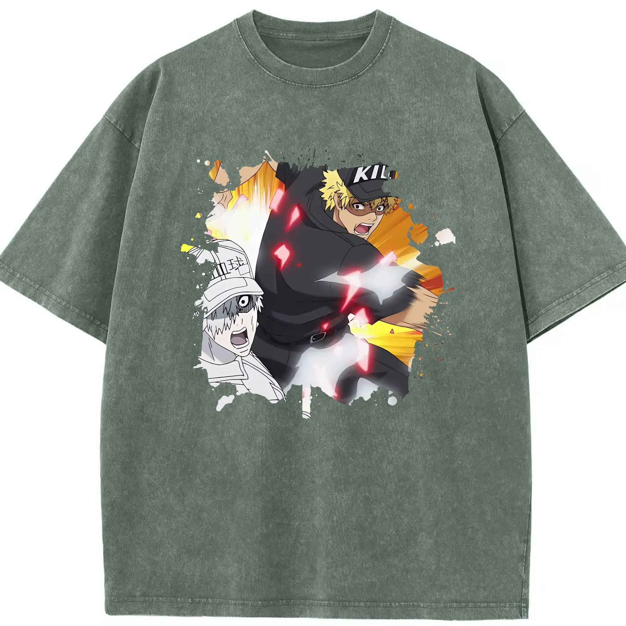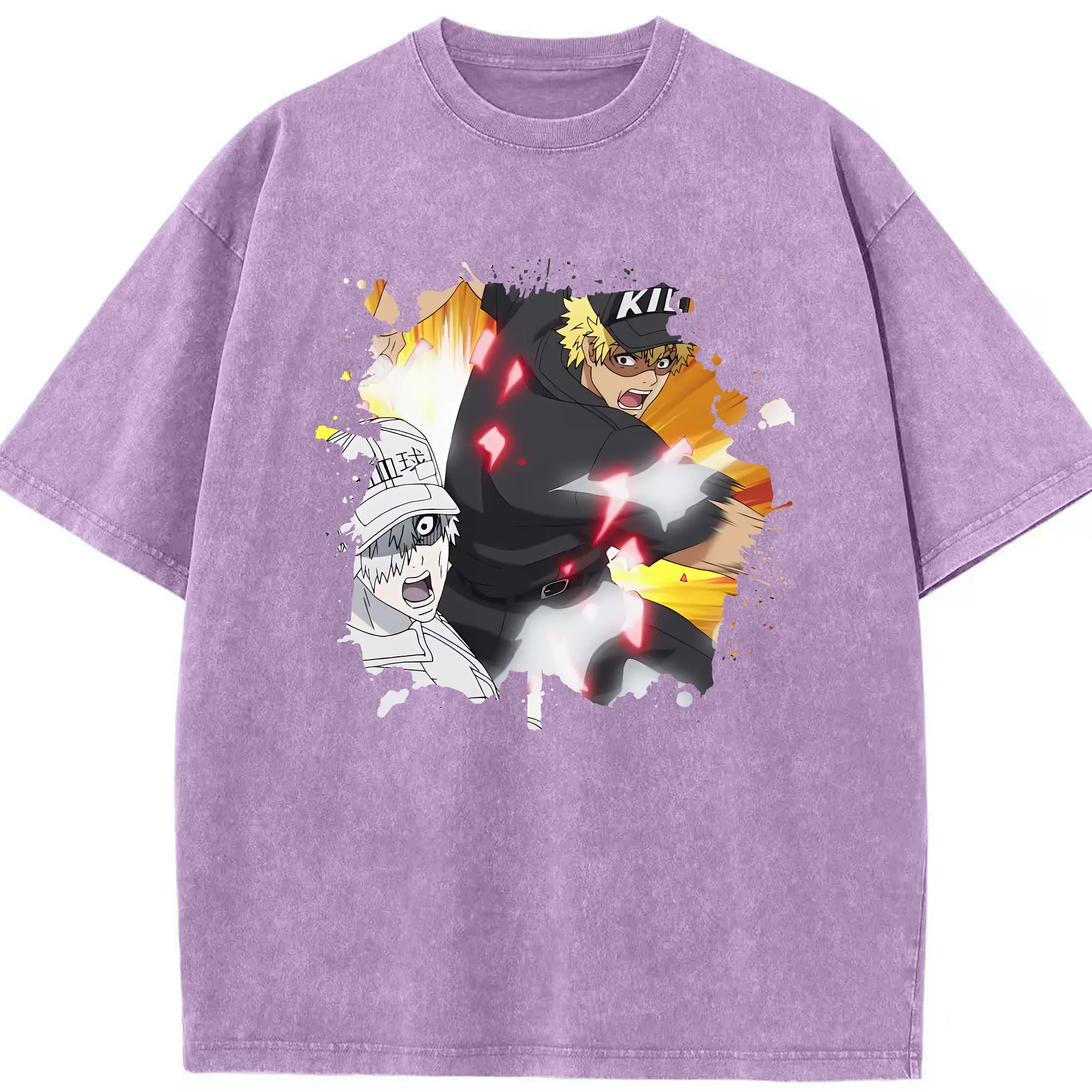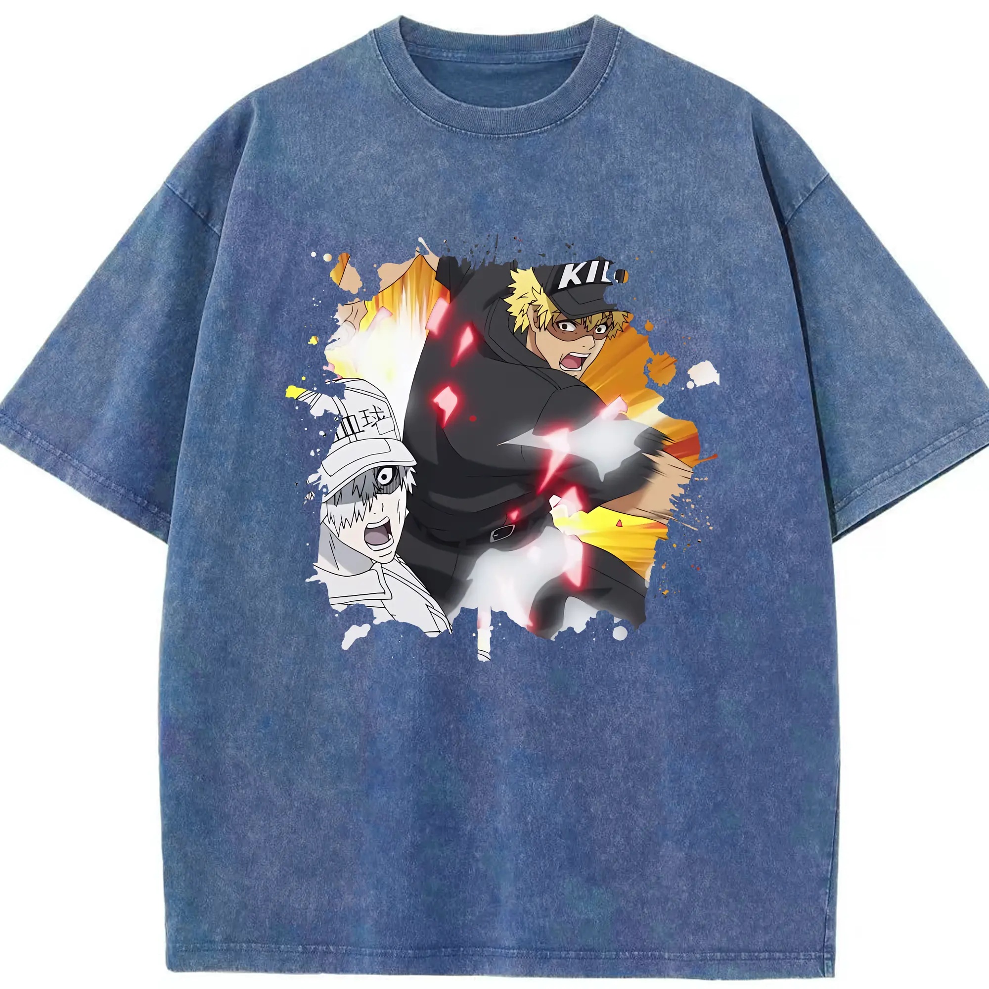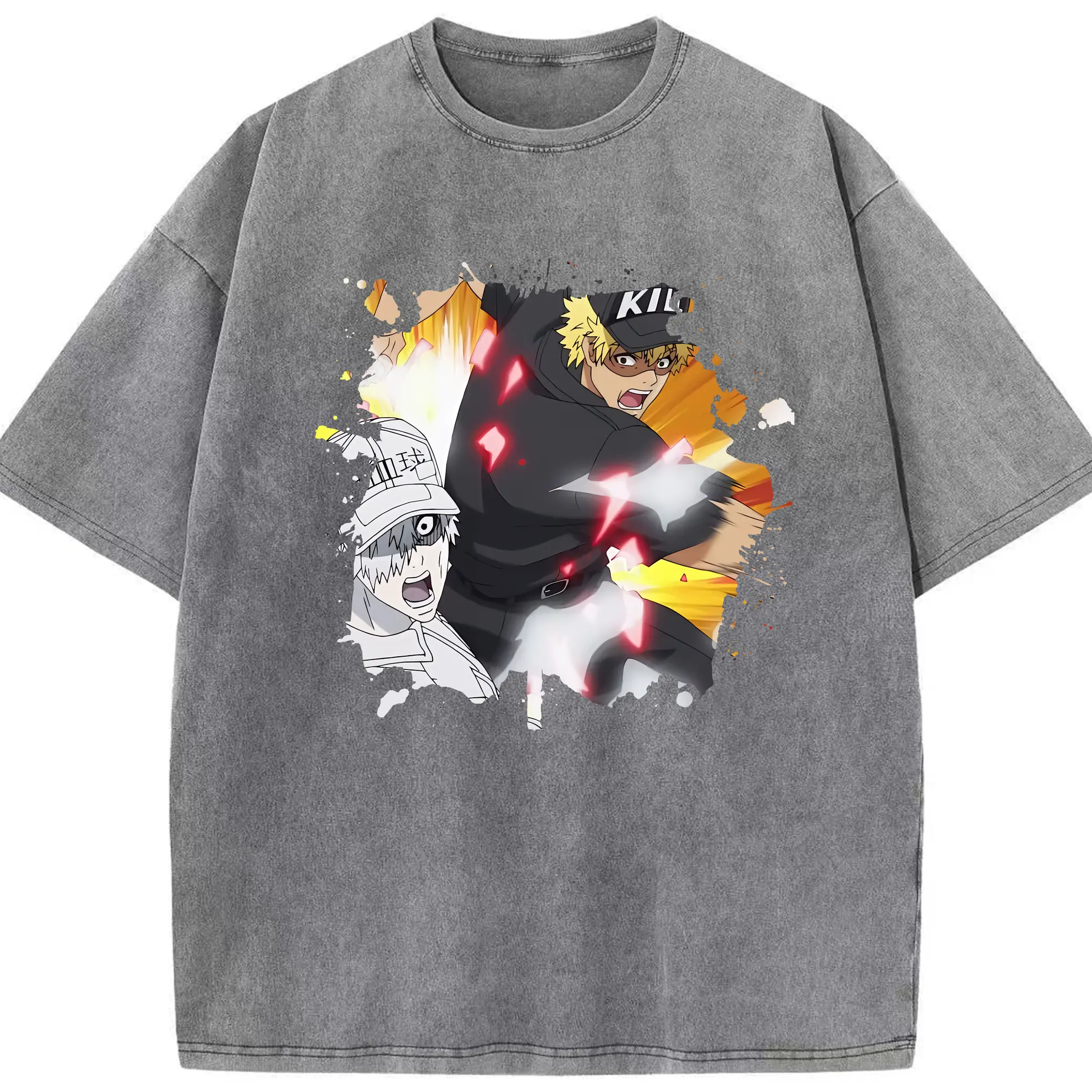 はたらく細胞 グッズ,キラーT細胞 - 綿100% ヴィンテージ風 半袖Tシャツ ・ 背面プリント ・ 柔らか肌触り ・ 通気性 快適 ・ スポーツ カジュアル 外出用