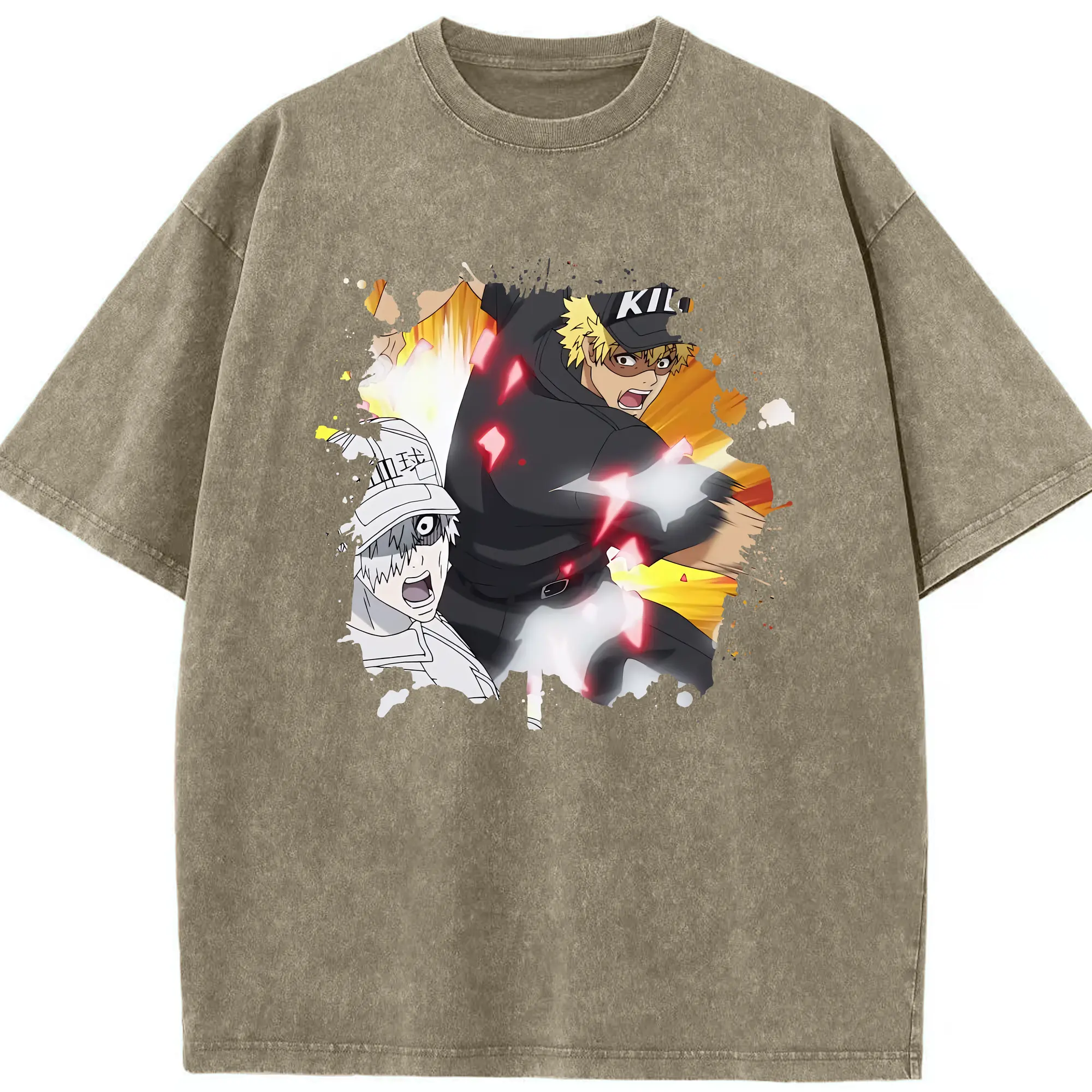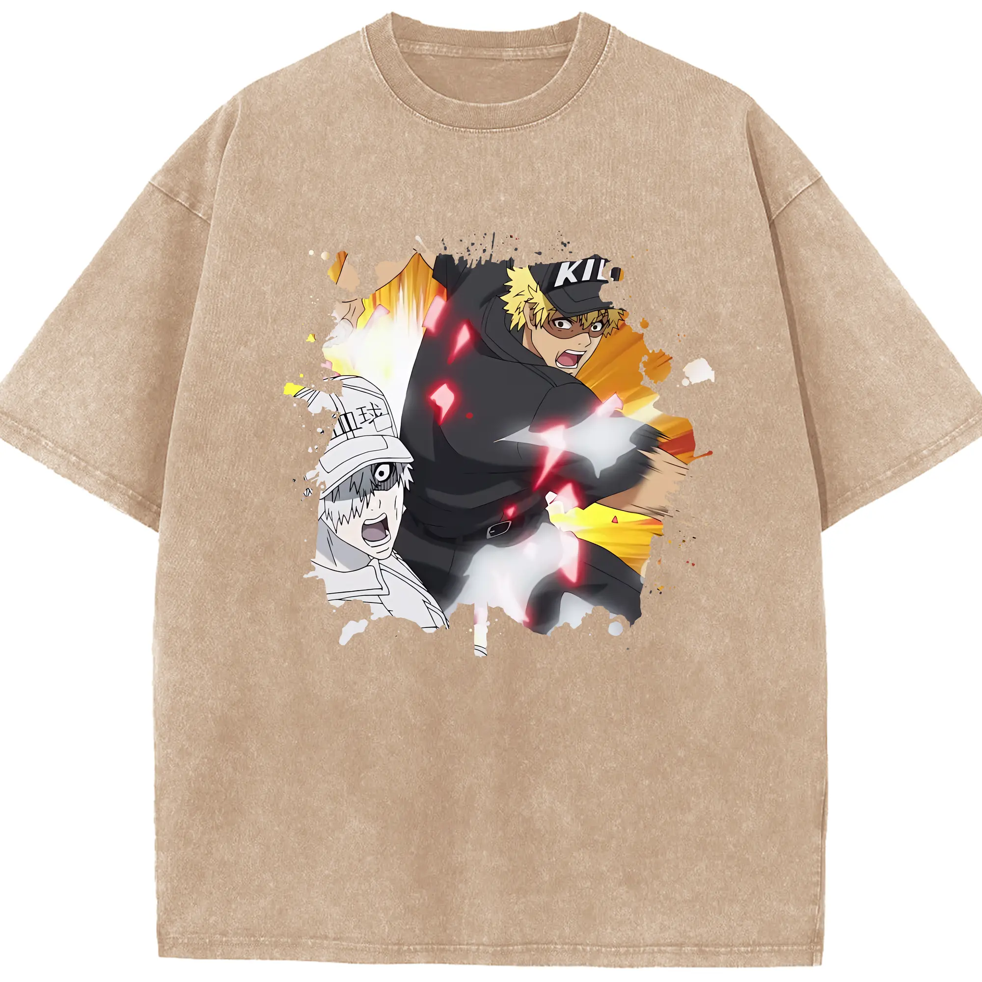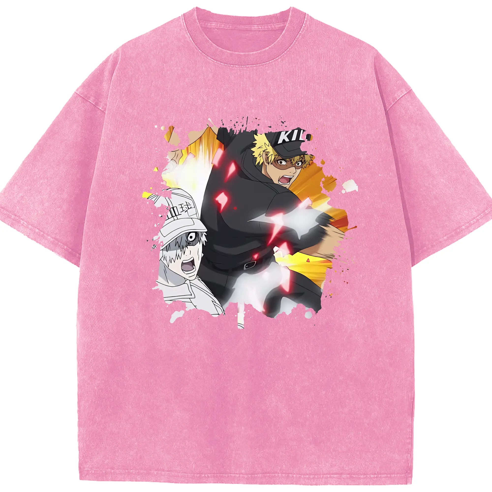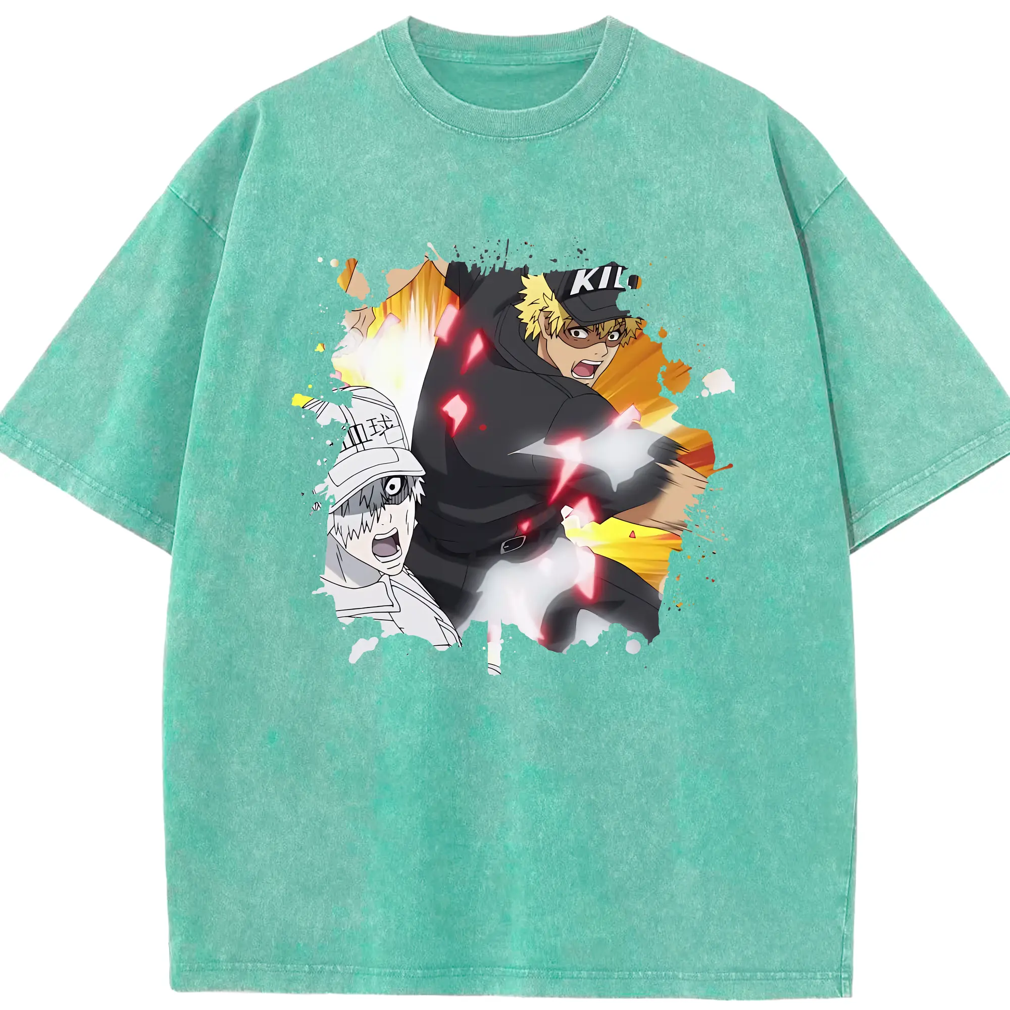 はたらく細胞 グッズ,キラーT細胞 - 綿100% ヴィンテージ風 半袖Tシャツ ・ 背面プリント ・ 柔らか肌触り ・ 通気性 快適 ・ スポーツ カジュアル 外出用