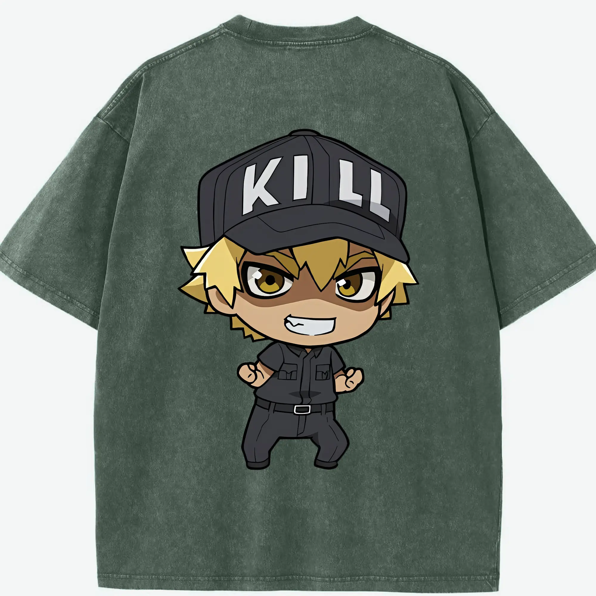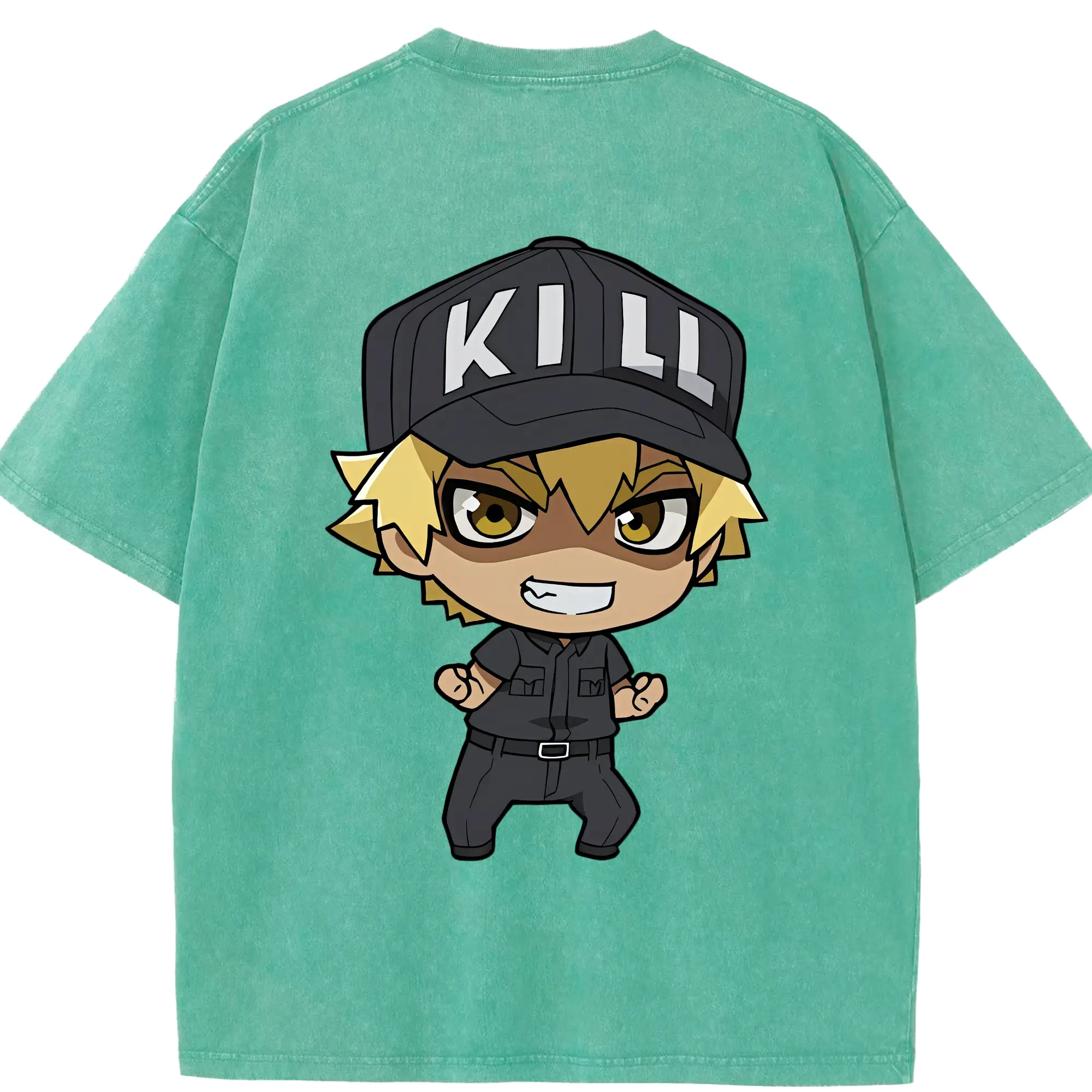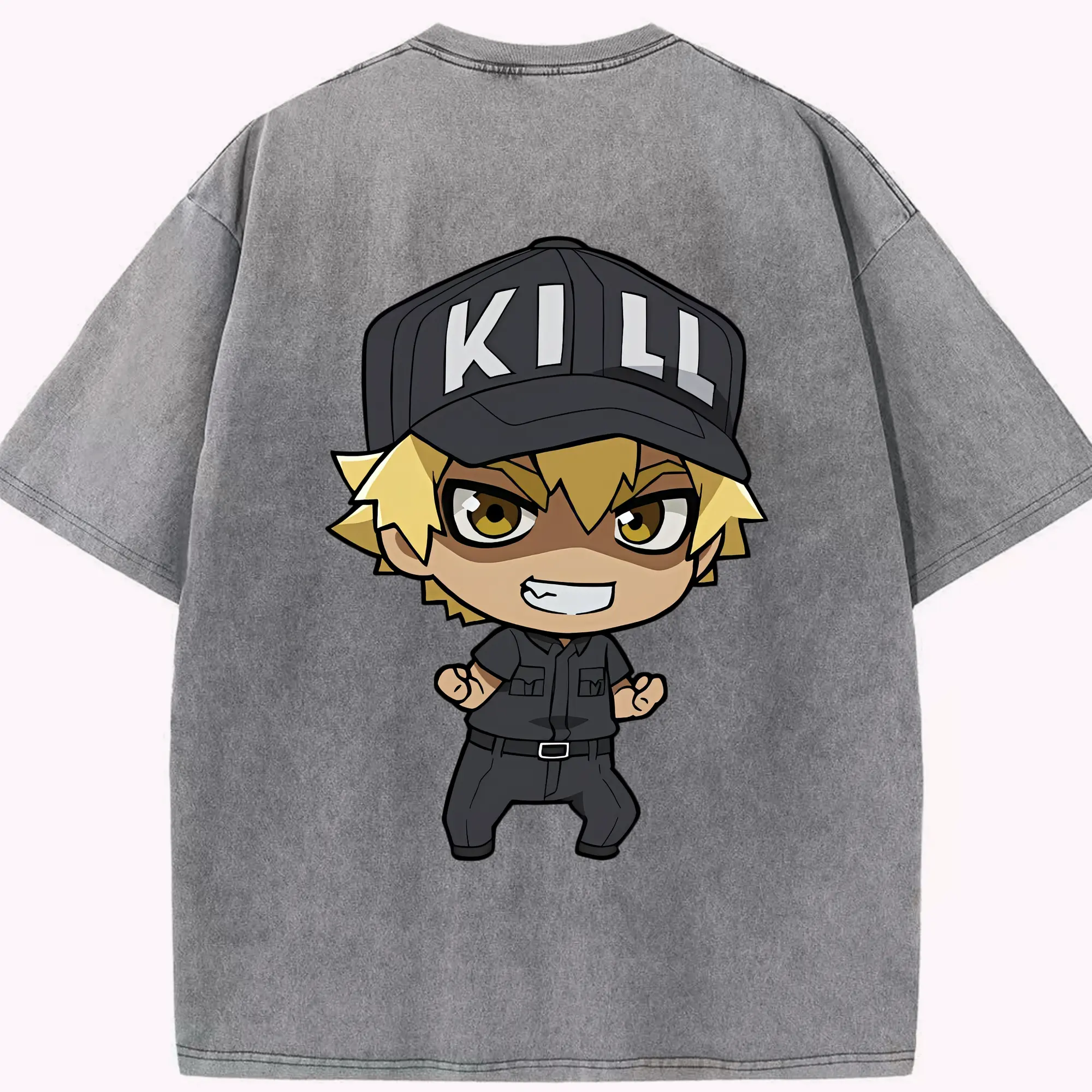 はたらく細胞 グッズ,キラーT細胞 - 綿100% ヴィンテージ風 半袖Tシャツ ・ フロントプリント ・ 柔らか肌触り ・ 通気性 快適 ・ スポーツ カジュアル 外出用