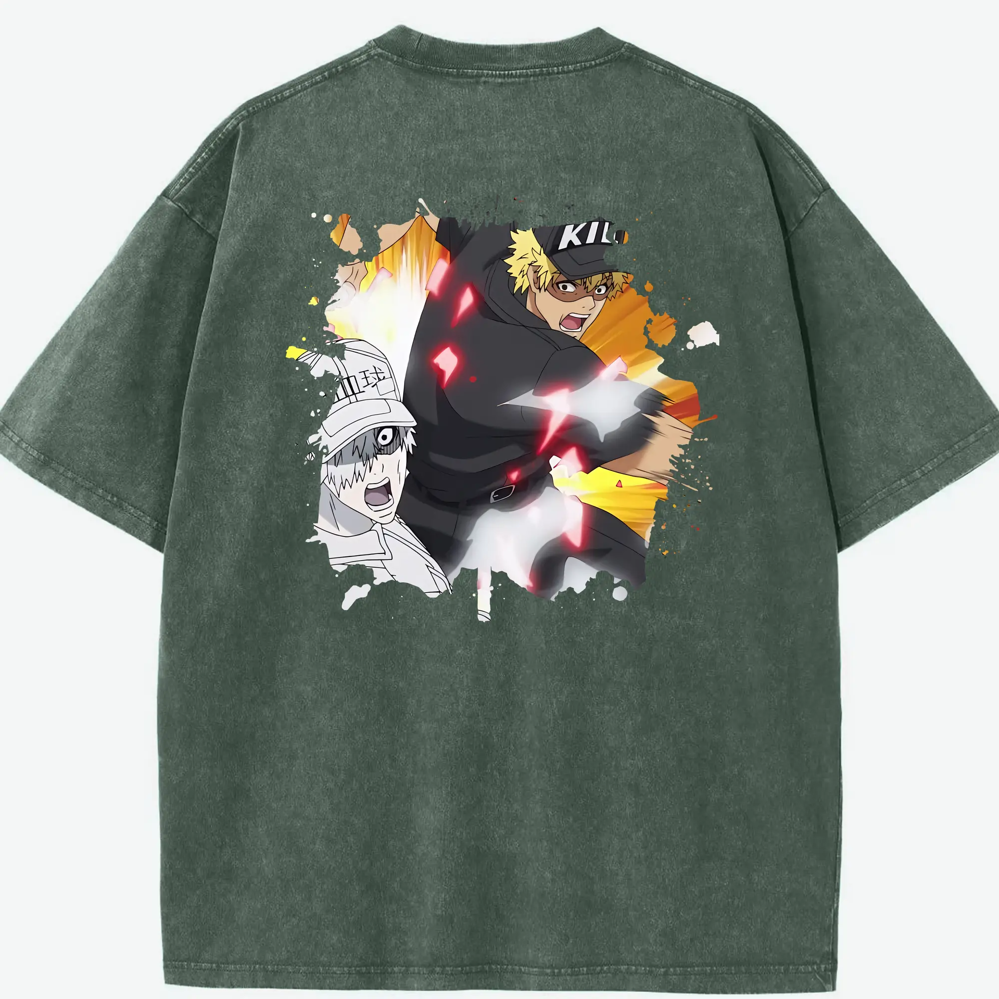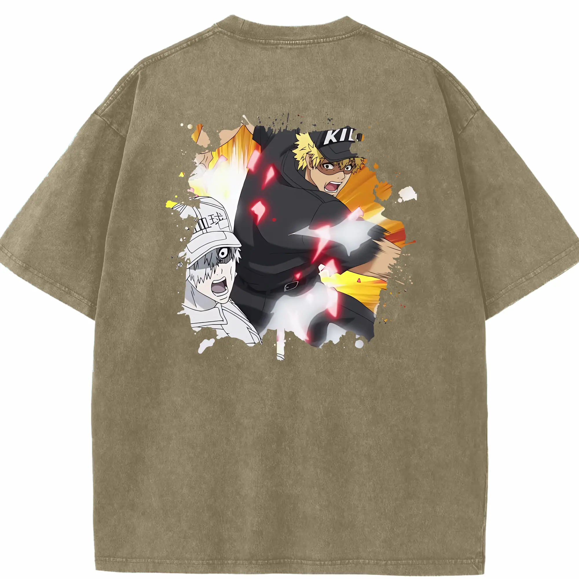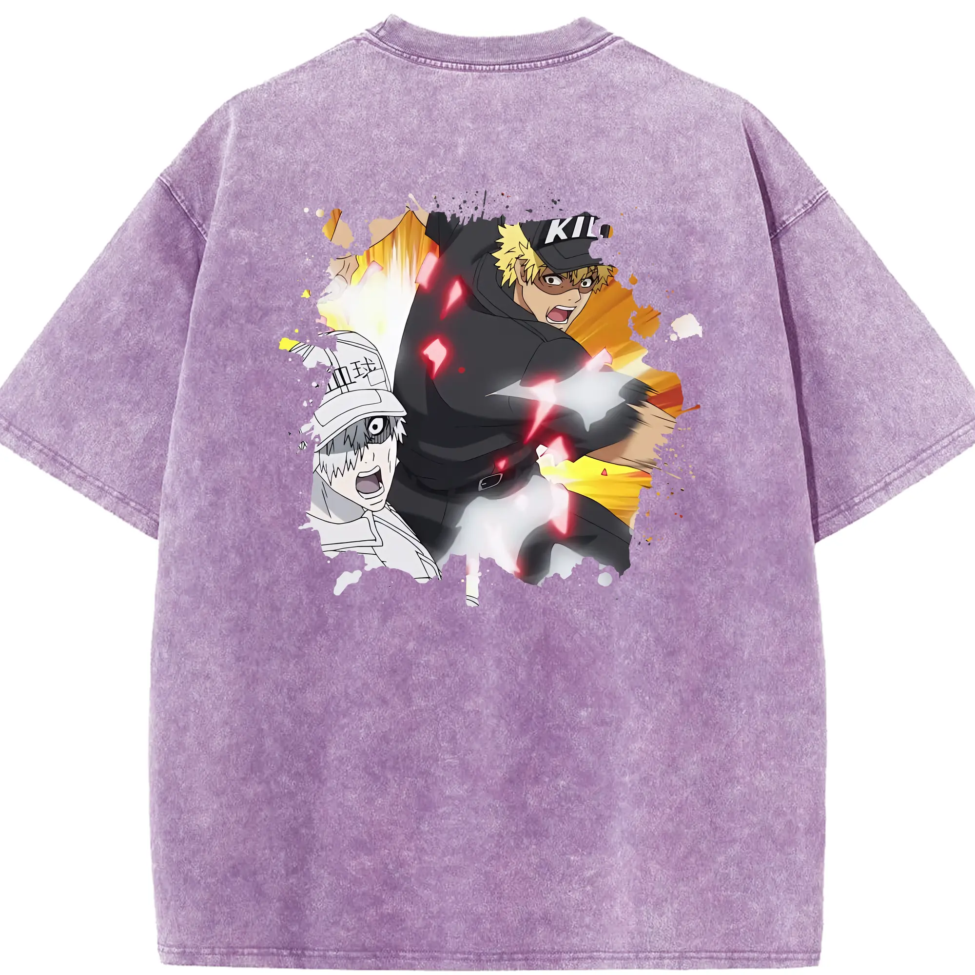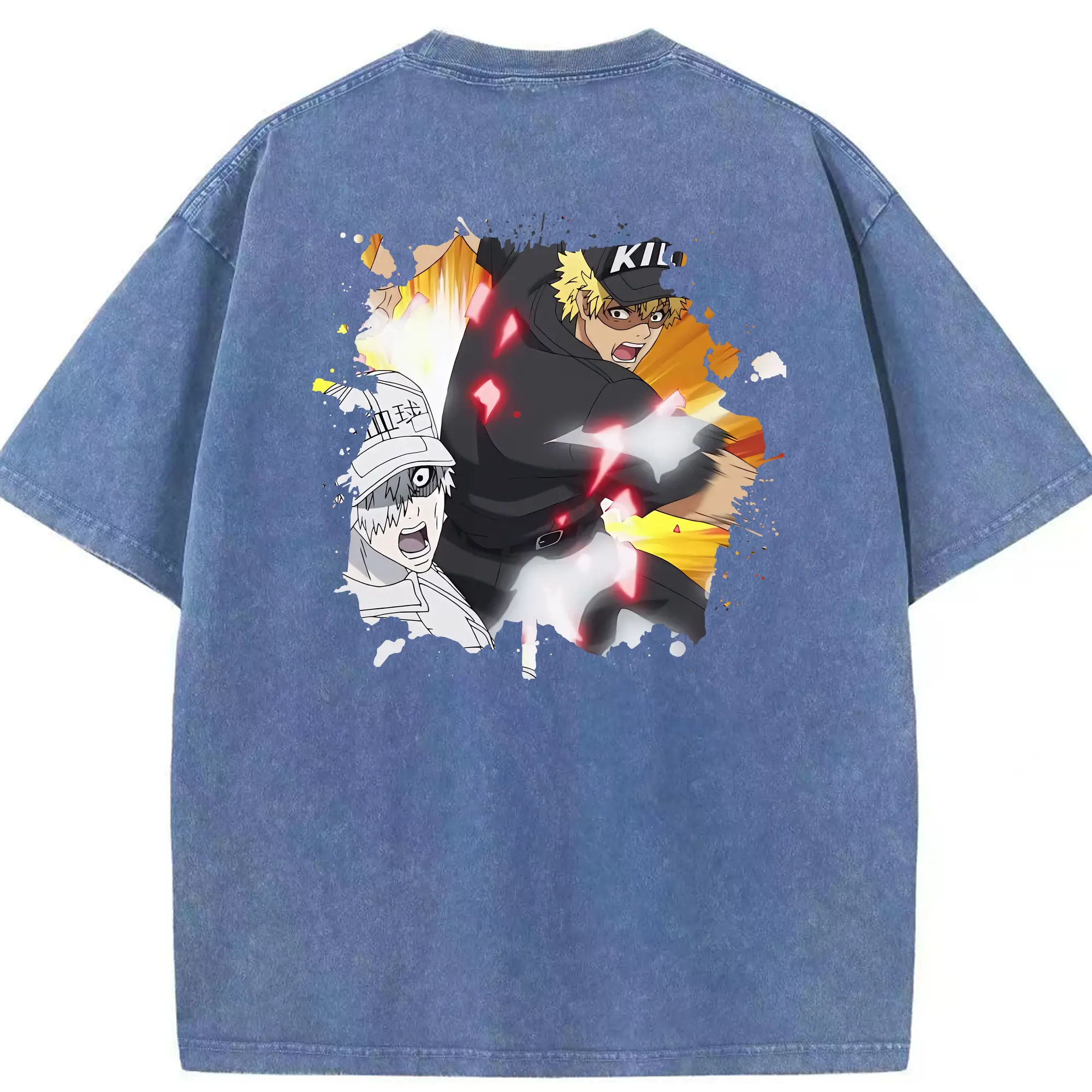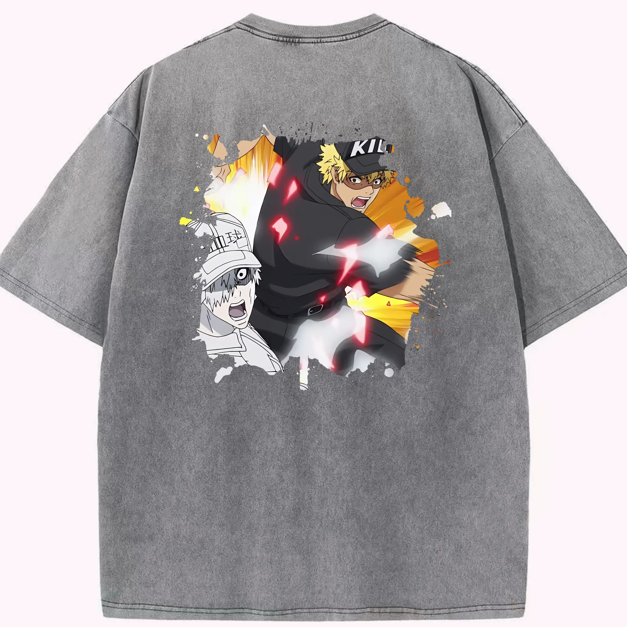 はたらく細胞 グッズ,キラーT細胞 - 綿100% ヴィンテージ風 半袖Tシャツ ・ フロントプリント ・ 柔らか肌触り ・ 通気性 快適 ・ スポーツ カジュアル 外出用