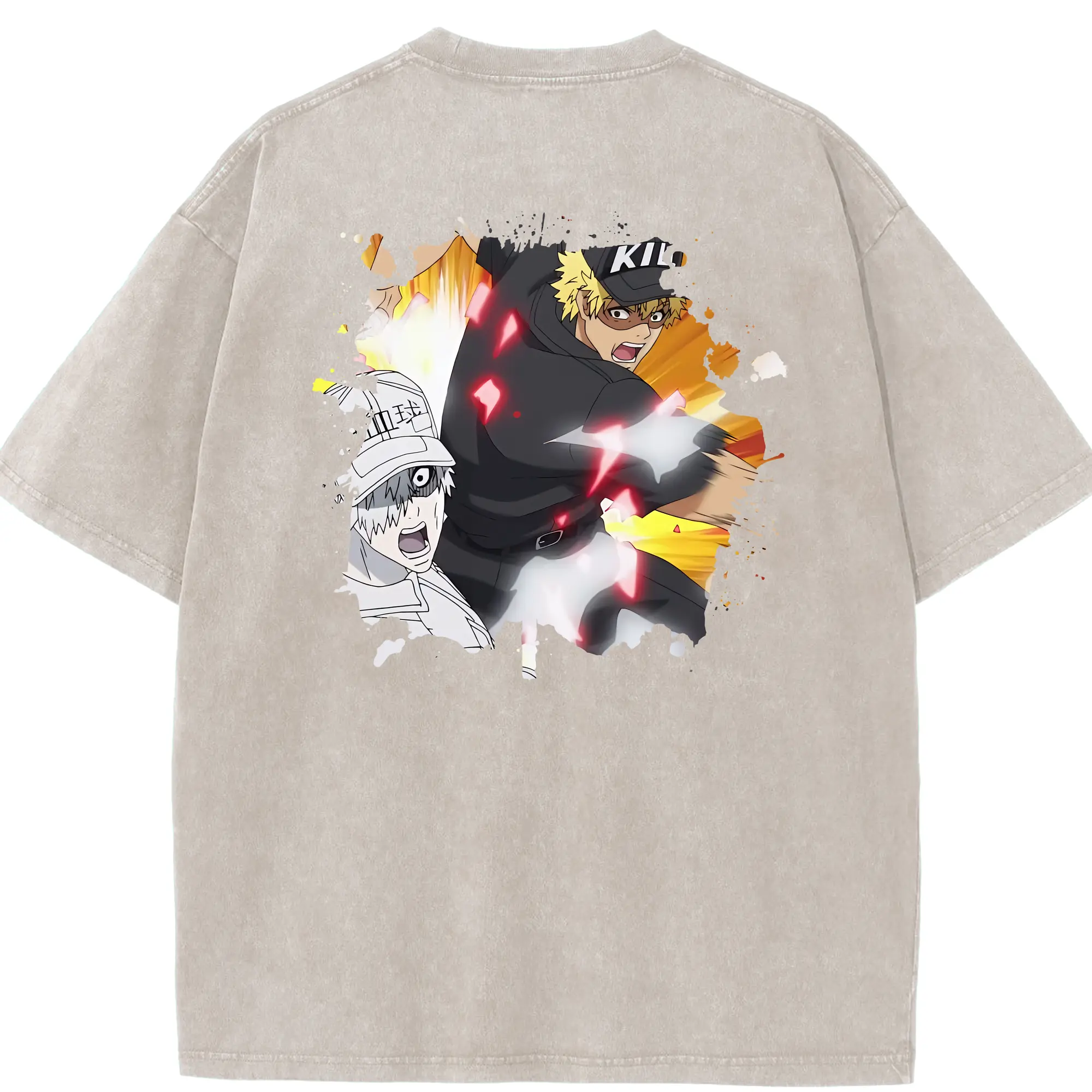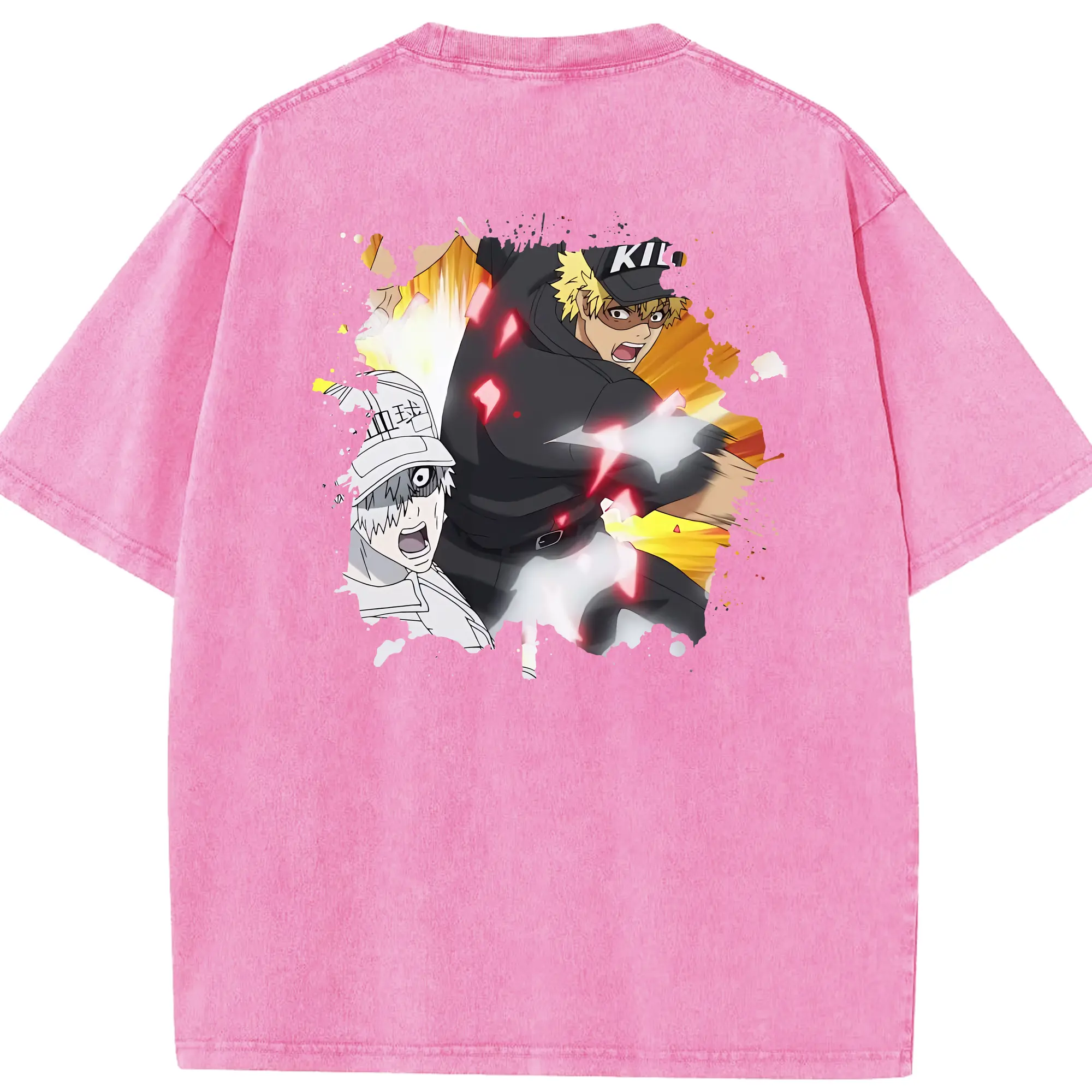 はたらく細胞 グッズ,キラーT細胞 - 綿100% 半袖Tシャツ ・ バックプリント ・ 快適 通気性 ・ 日常使い 散歩 スポーツ用