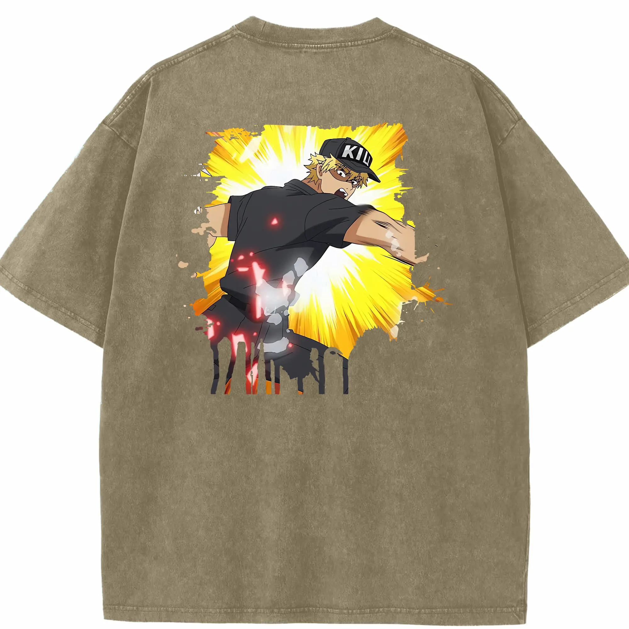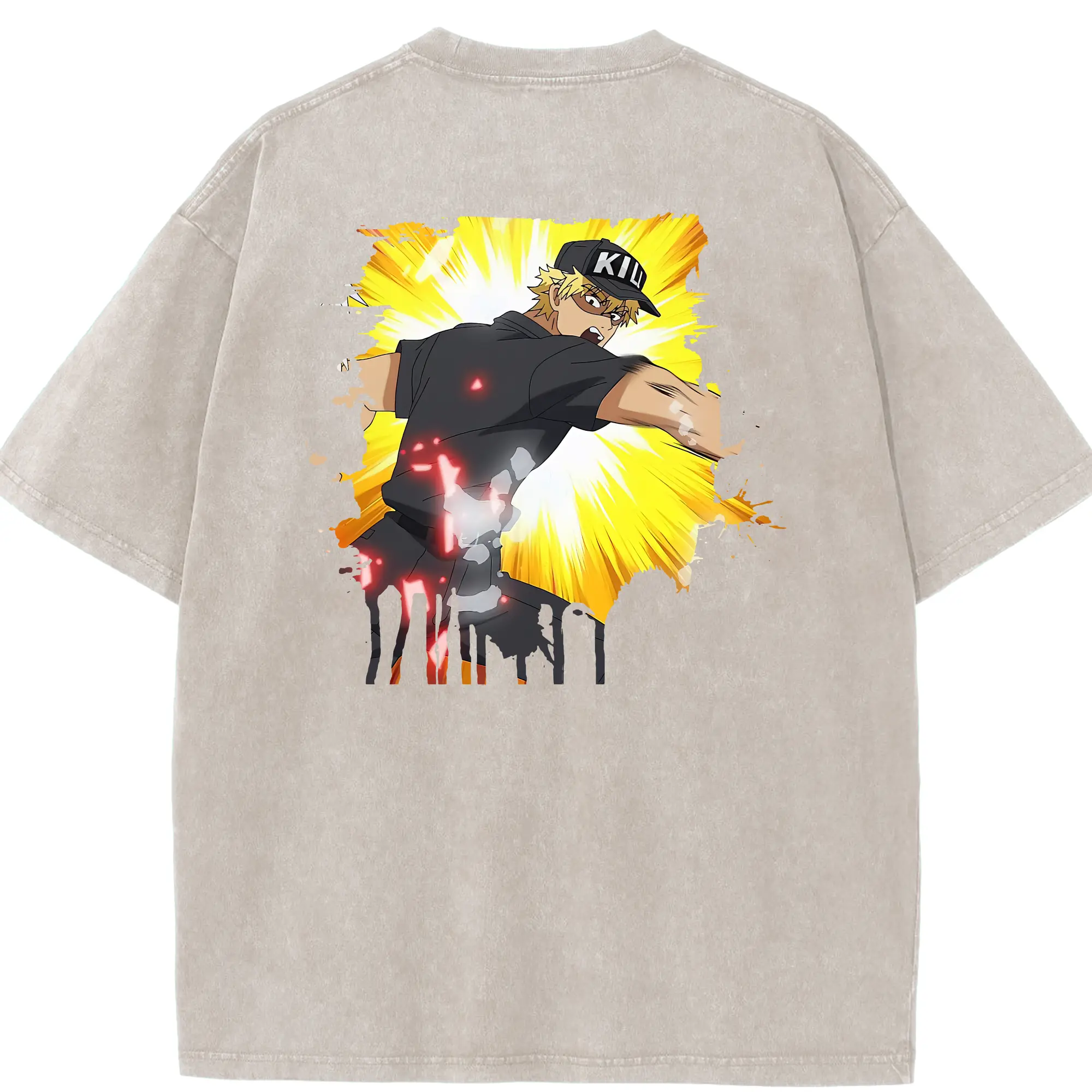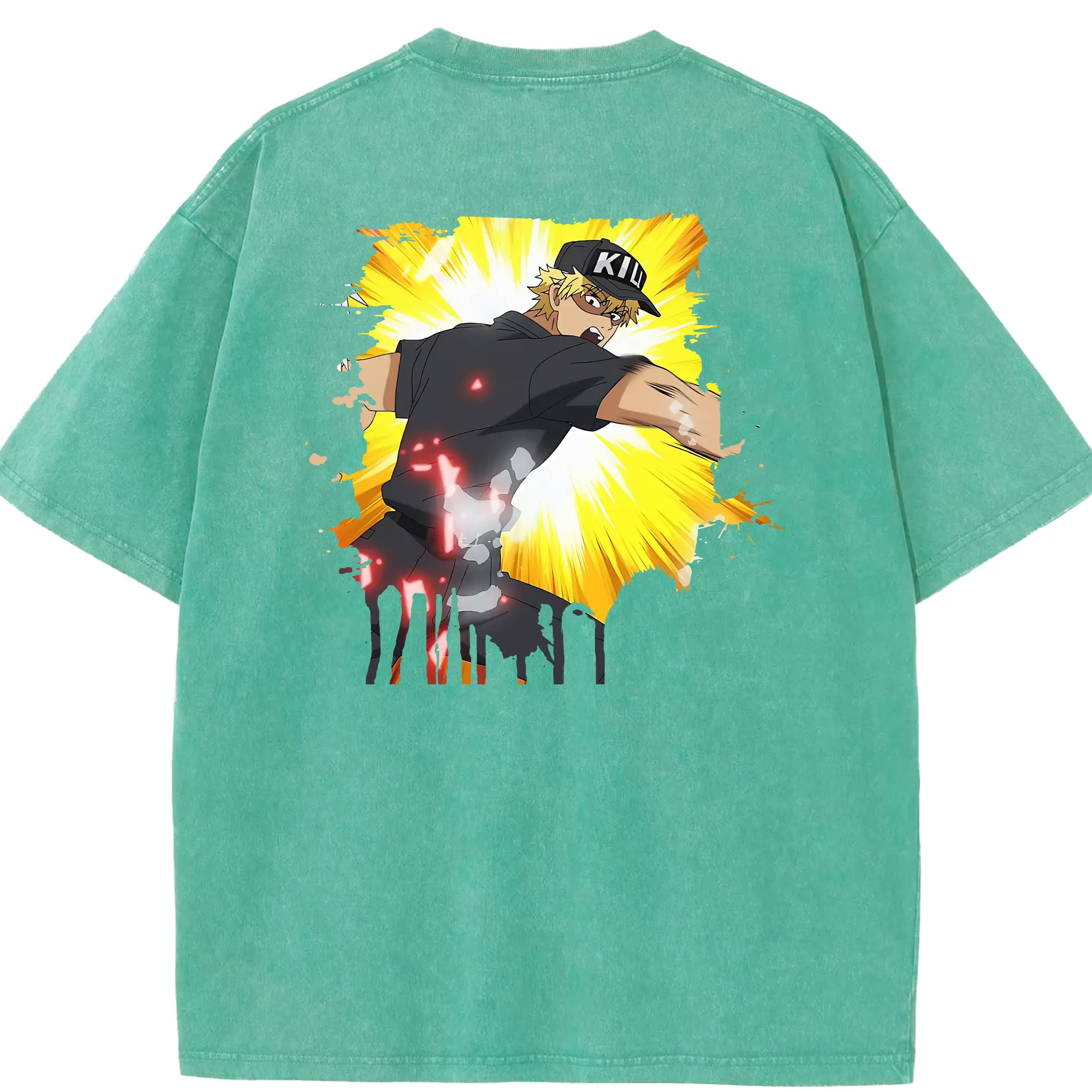 ダンダダン グッズ,オカルン - 綿100% ヴィンテージ風 半袖Tシャツ ・ 背面プリント ・ 柔らか肌触り ・ 通気性 快適 ・ スポーツ カジュアル 外出用