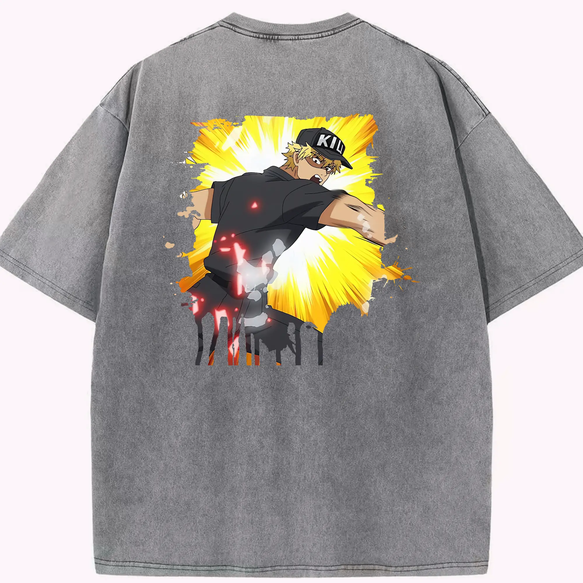 はたらく細胞 グッズ,キラーT細胞 - 綿100% ヴィンテージ風 半袖Tシャツ ・ フロントプリント ・ 柔らか肌触り ・ 通気性 快適 ・ スポーツ カジュアル 外出用