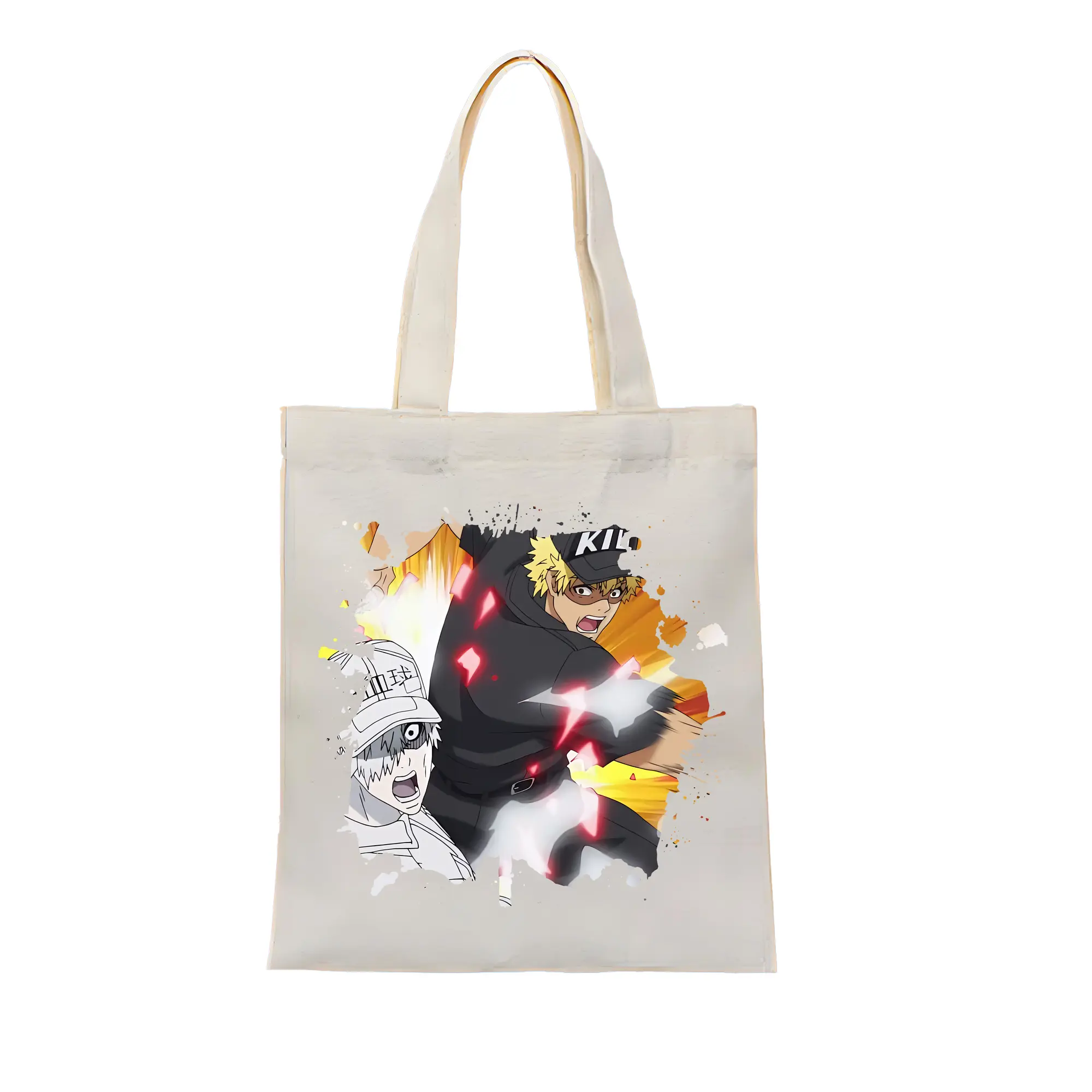 はたらく細胞 グッズ,キラーT細胞 - 縦型キャンバス手提げバッグ(トートバッグ) ・ キャンバス素材 ・ ショッピング用 ・ 軽量 丈夫 お手入れ簡単