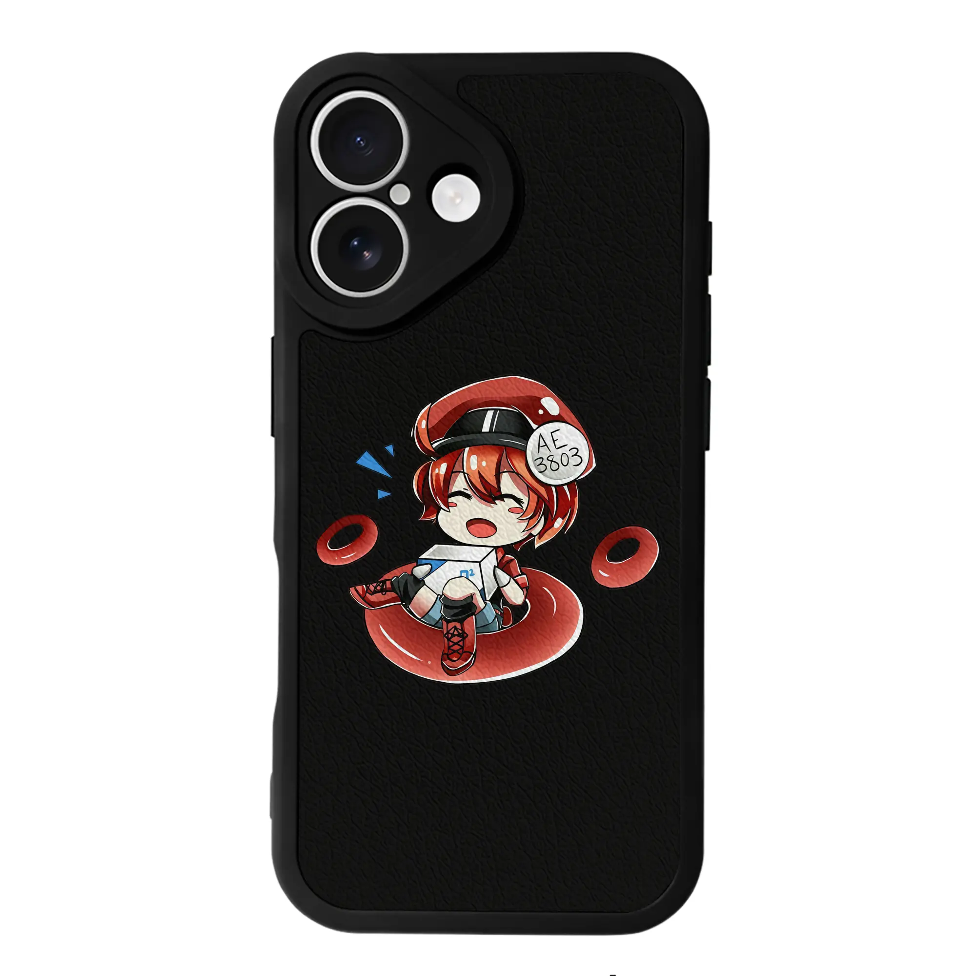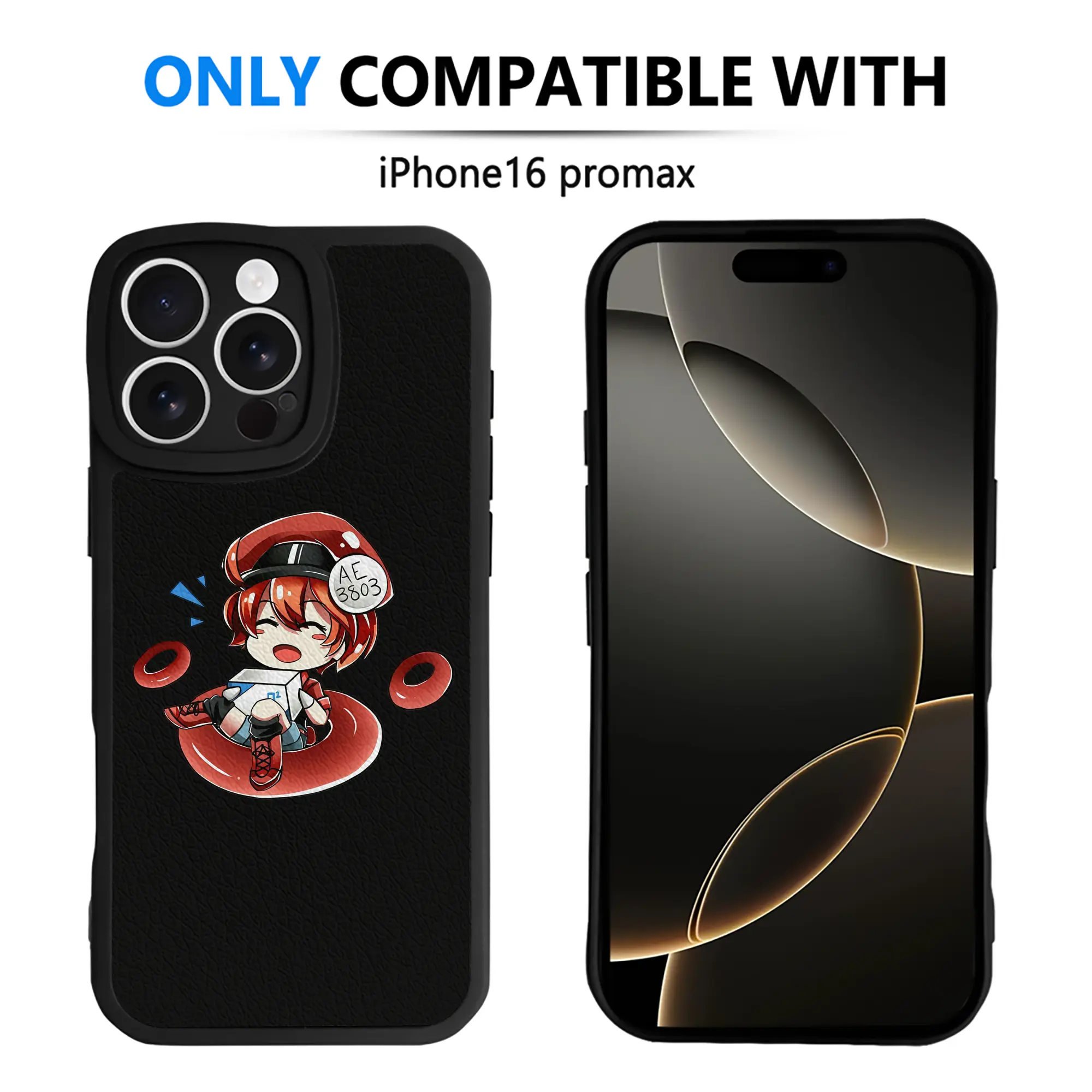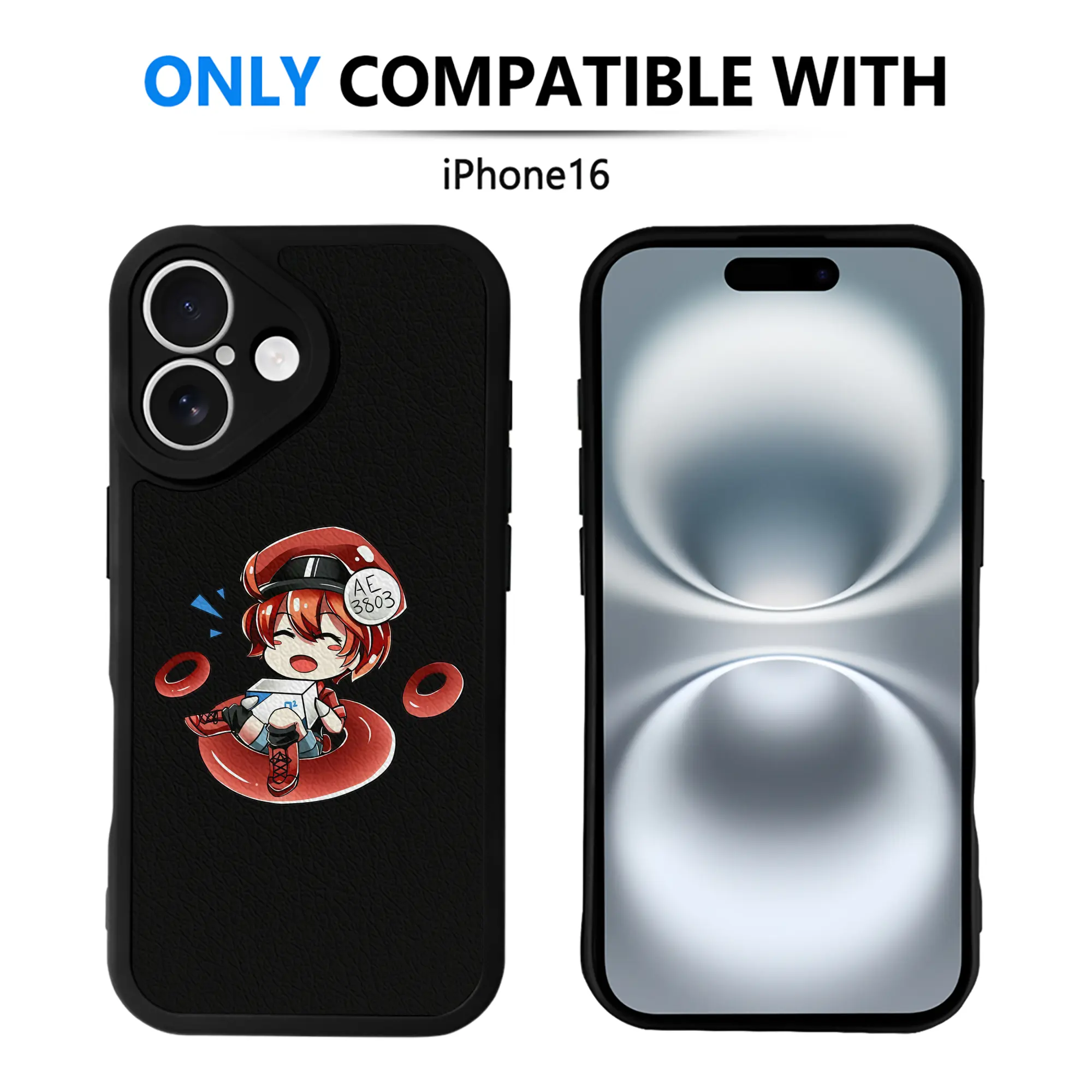 はたらく細胞 グッズ,赤血球 - IPhone 16シリーズ対応 ・ シリコンスマホケース ・ レザー調 ・ 高精度フィット ・ 耐衝撃 ・ ワイヤレス充電対応 ・ 精密カット