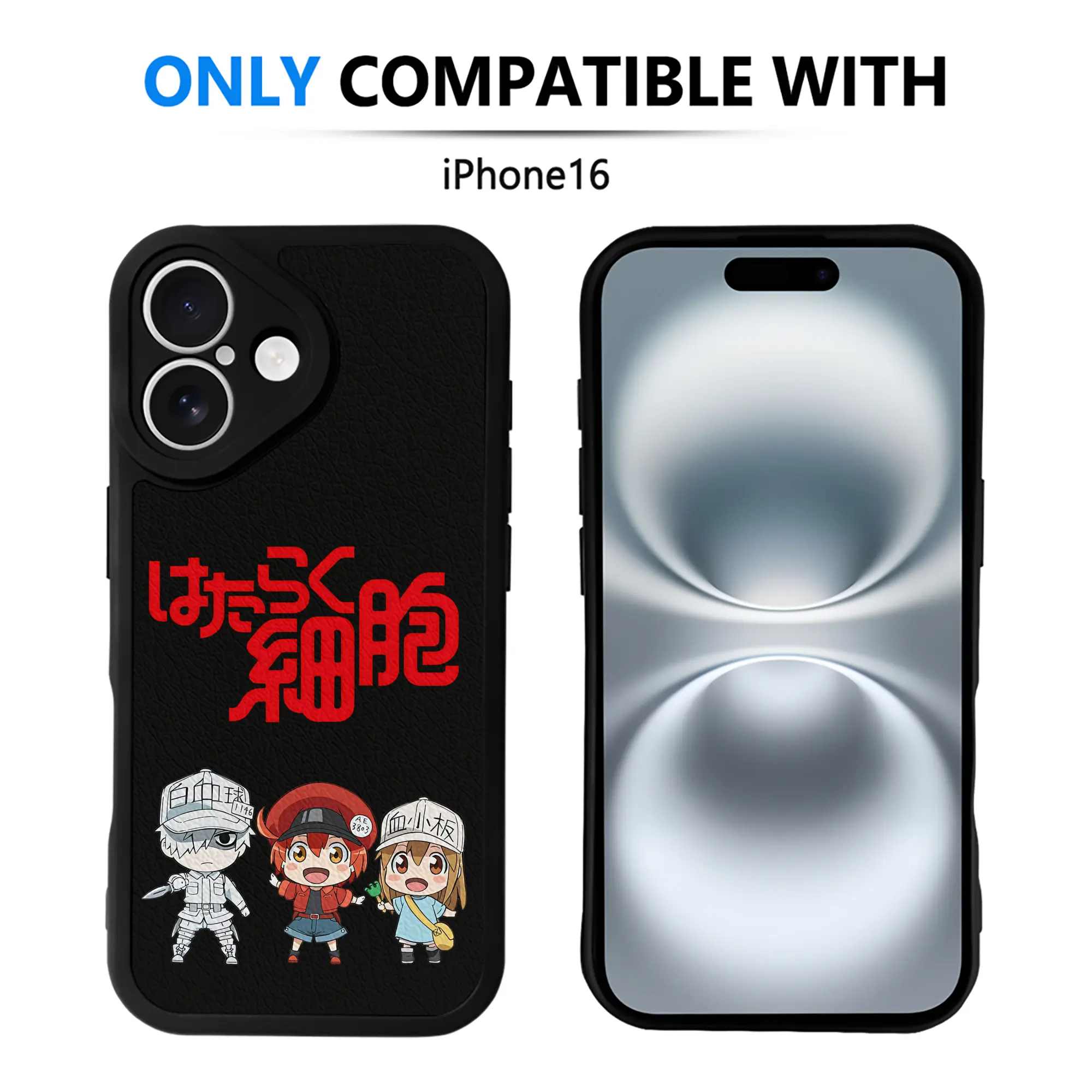 はたらく細胞 グッズ,赤血球 - IPhone 16シリーズ対応 ・ シリコンスマホケース ・ レザー調 ・ 高精度フィット ・ 耐衝撃 ・ ワイヤレス充電対応 ・ 精密カット