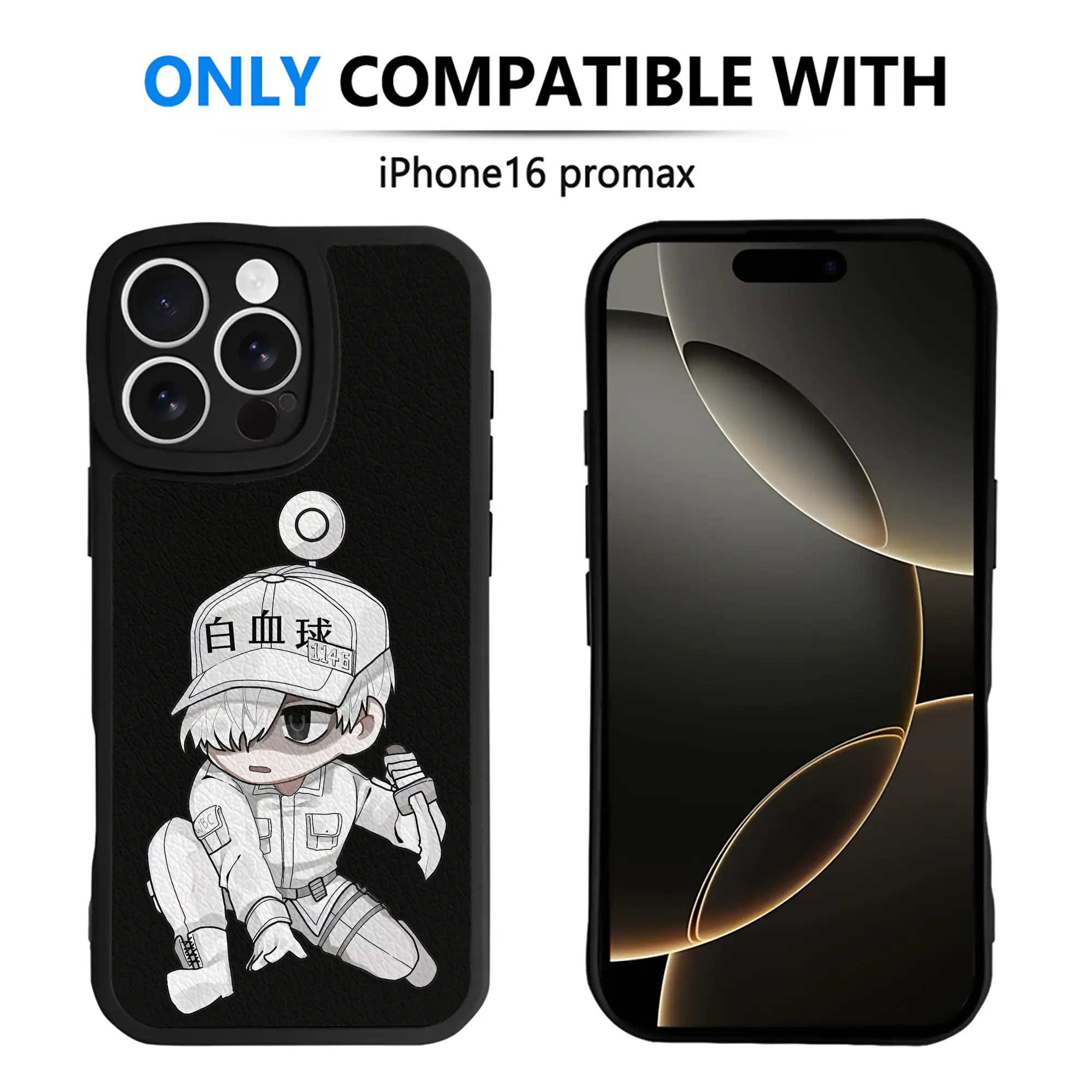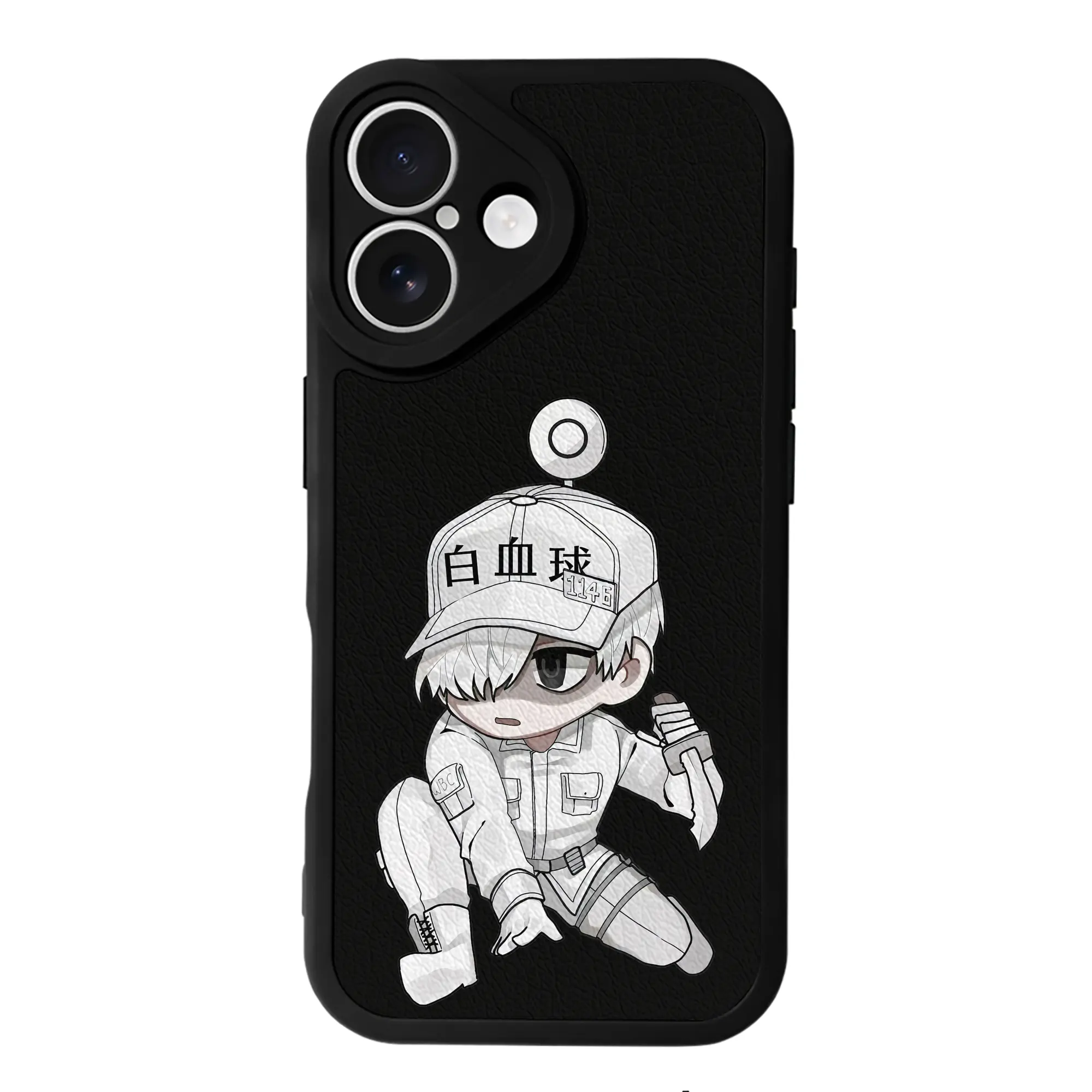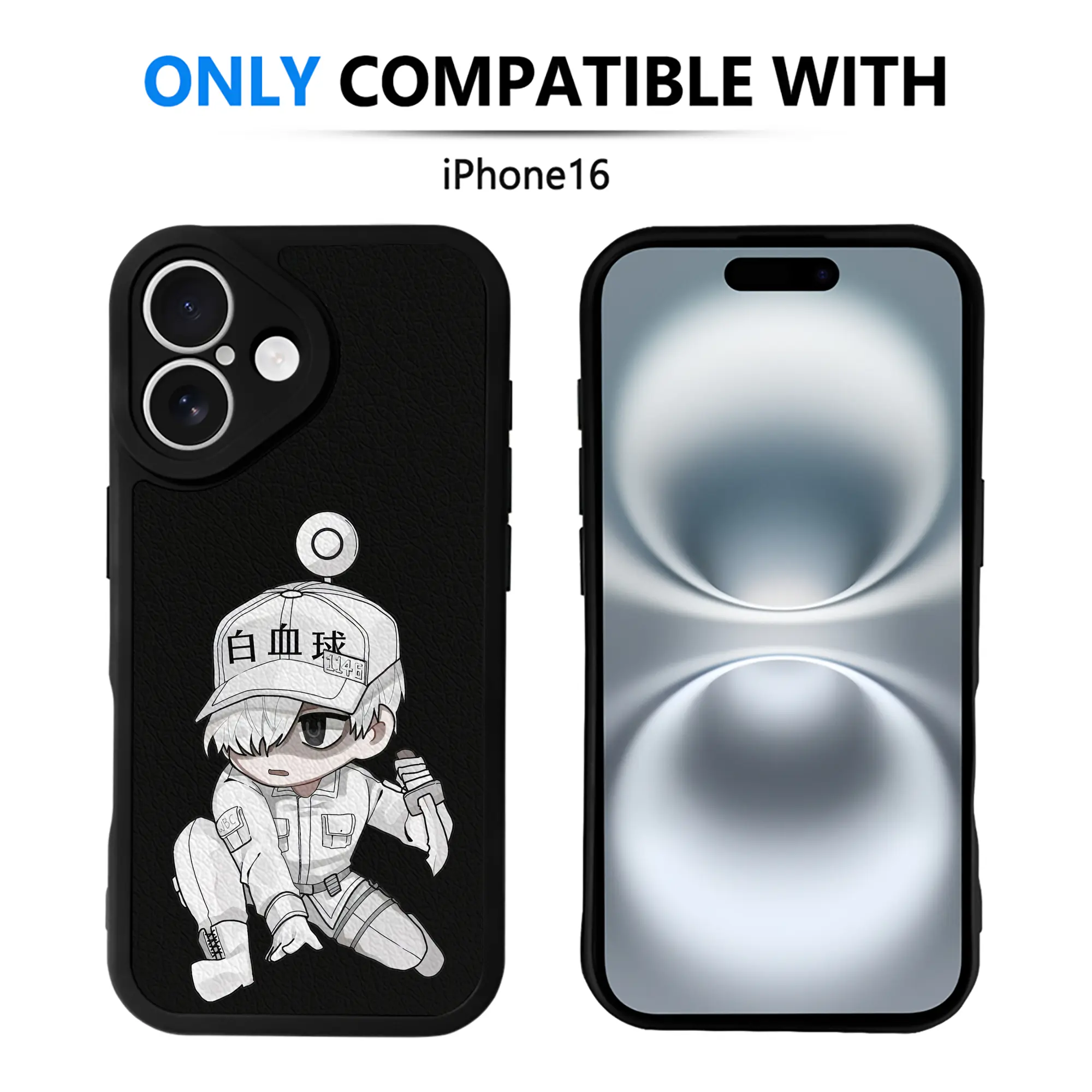 はたらく細胞 グッズ,白血球 - IPhone 16シリーズ対応 ・ シリコンスマホケース ・ レザー調 ・ 高精度フィット ・ 耐衝撃 ・ ワイヤレス充電対応 ・ 精密カット
