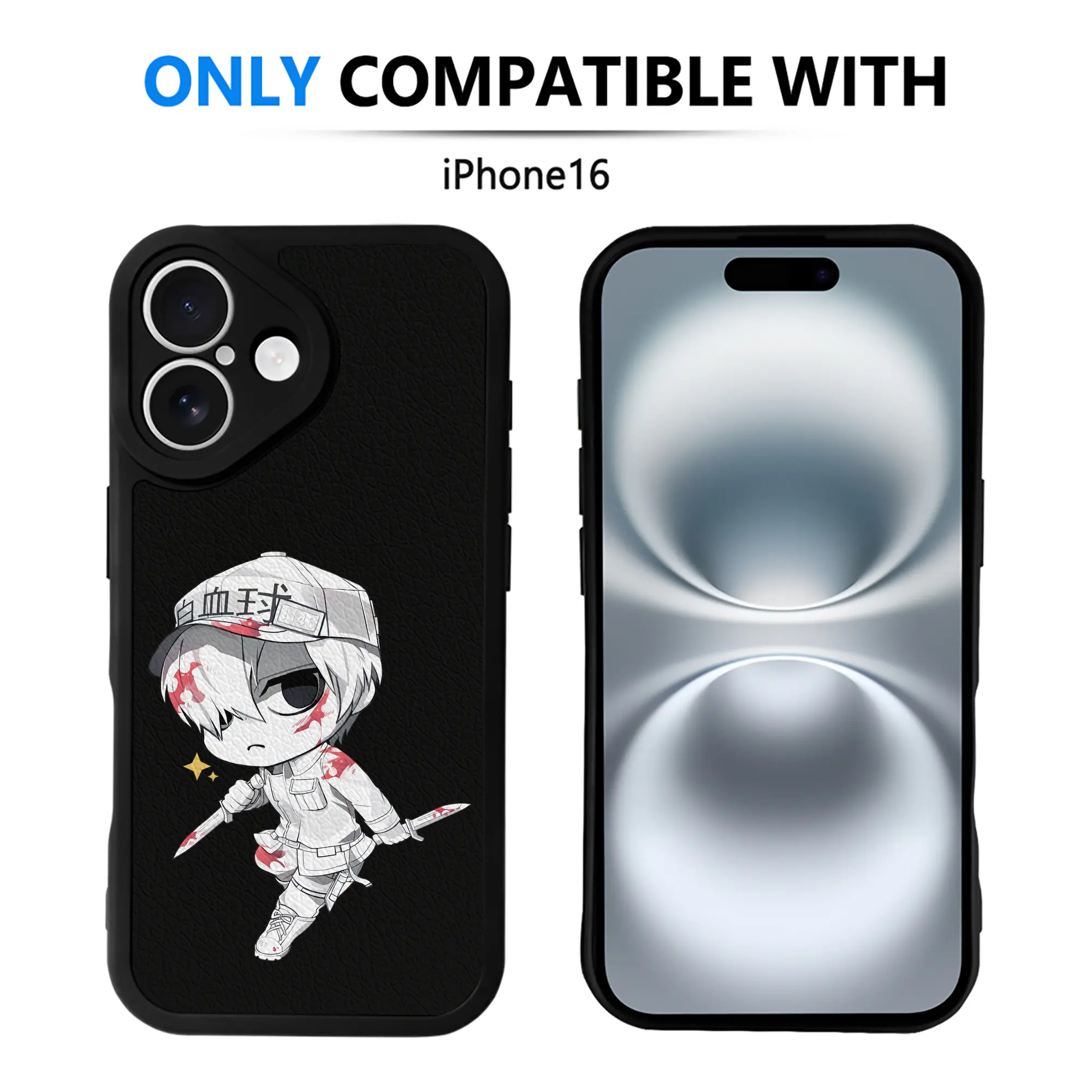 はたらく細胞 グッズ,白血球 - IPhone 16シリーズ対応 ・ シリコンスマホケース ・ レザー調 ・ 高精度フィット ・ 耐衝撃 ・ ワイヤレス充電対応 ・ 精密カット