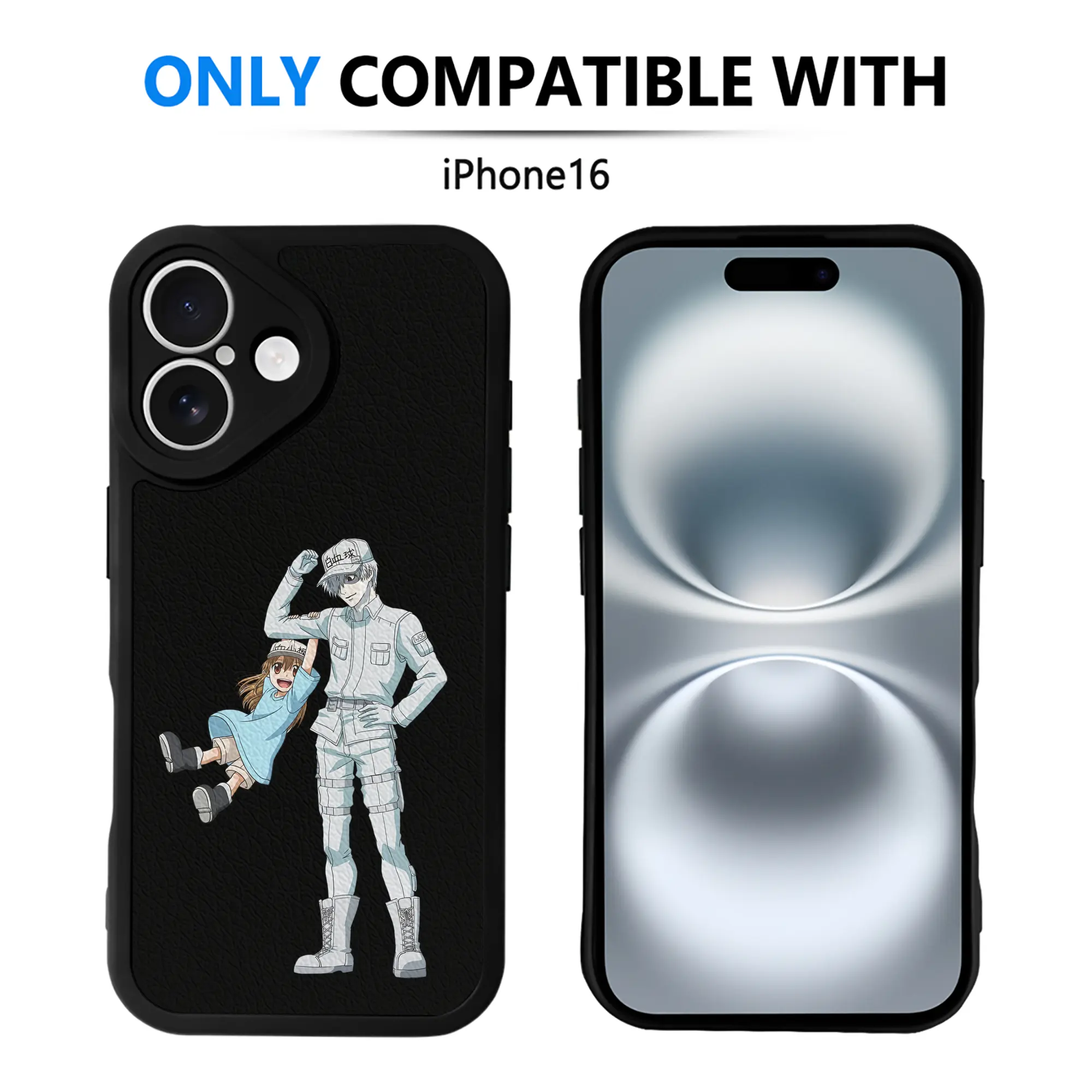 はたらく細胞 グッズ,白血球 - IPhone 16シリーズ対応 ・ シリコンスマホケース ・ レザー調 ・ 高精度フィット ・ 耐衝撃 ・ ワイヤレス充電対応 ・ 精密カット