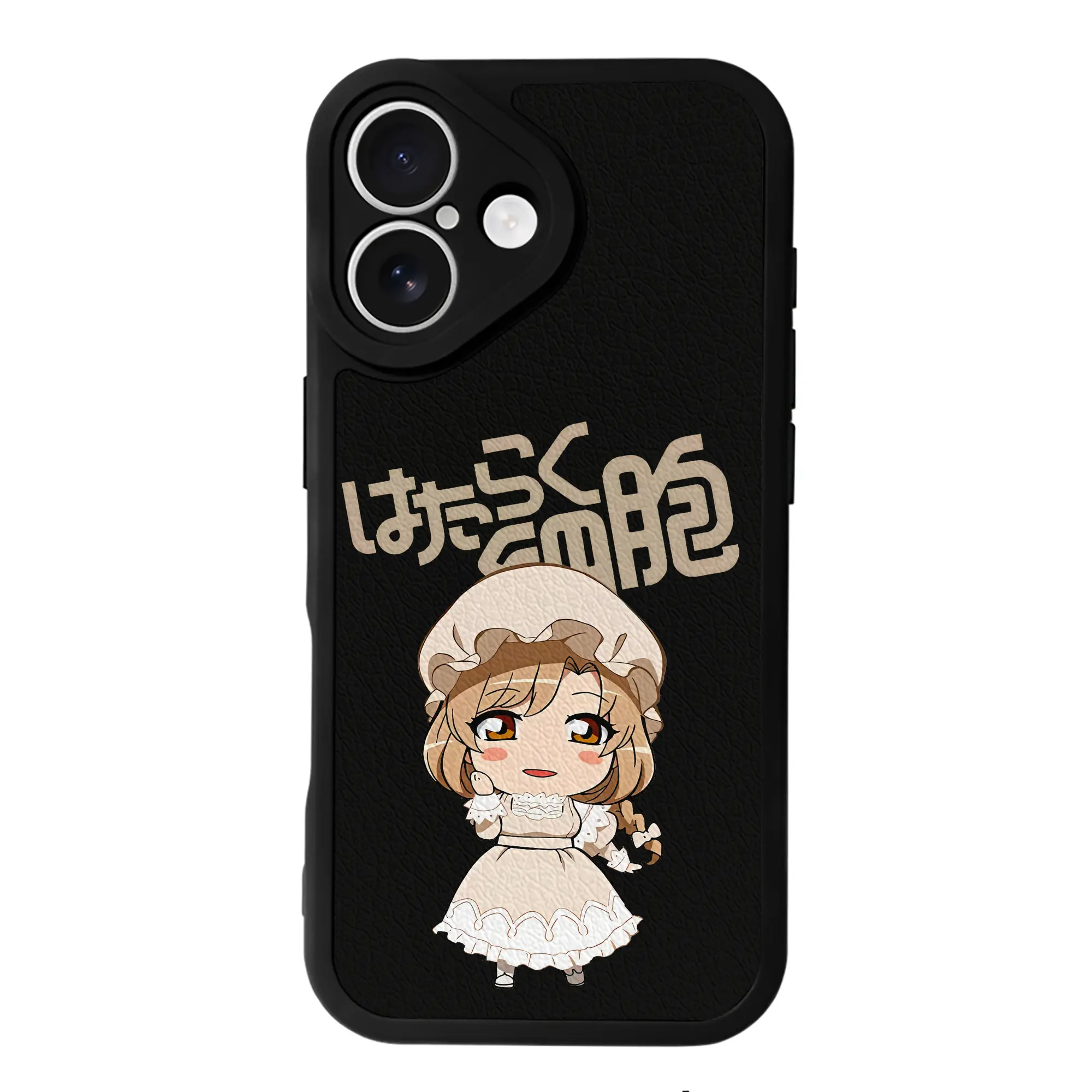 はたらく細胞 グッズ,マクロファージ - IPhone 16シリーズ対応 ・ シリコンスマホケース ・ レザー調 ・ 高精度フィット ・ 耐衝撃 ・ ワイヤレス充電対応 ・ 精密カット