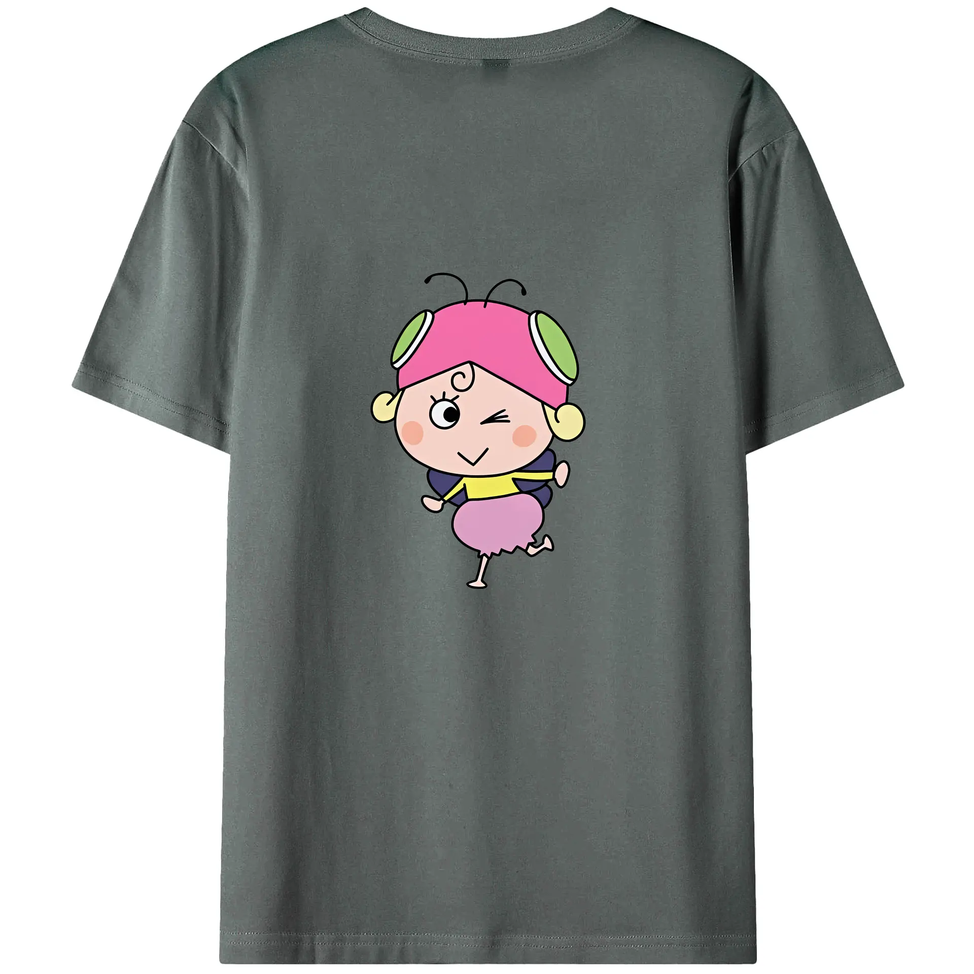はなかっぱ グッズ,アゲルちゃん - 綿100% ヴィンテージ風 半袖Tシャツ ・ 背面プリント ・ 柔らか肌触り ・ 通気性 快適 ・ スポーツ カジュアル 外出用