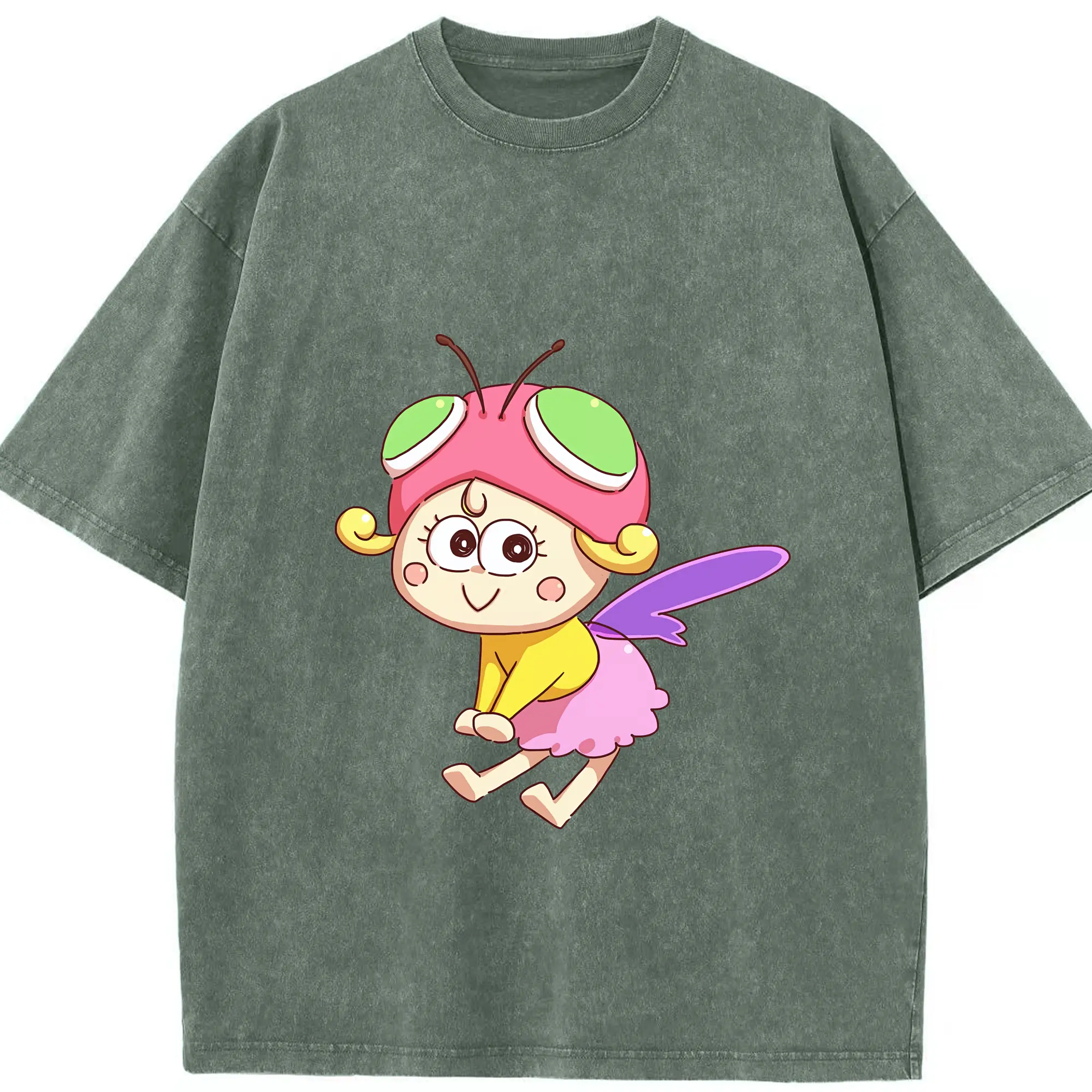 はなかっぱ グッズ,アゲルちゃん - 綿100% ヴィンテージ風 半袖Tシャツ ・ 背面プリント ・ 柔らか肌触り ・ 通気性 快適 ・ スポーツ カジュアル 外出用