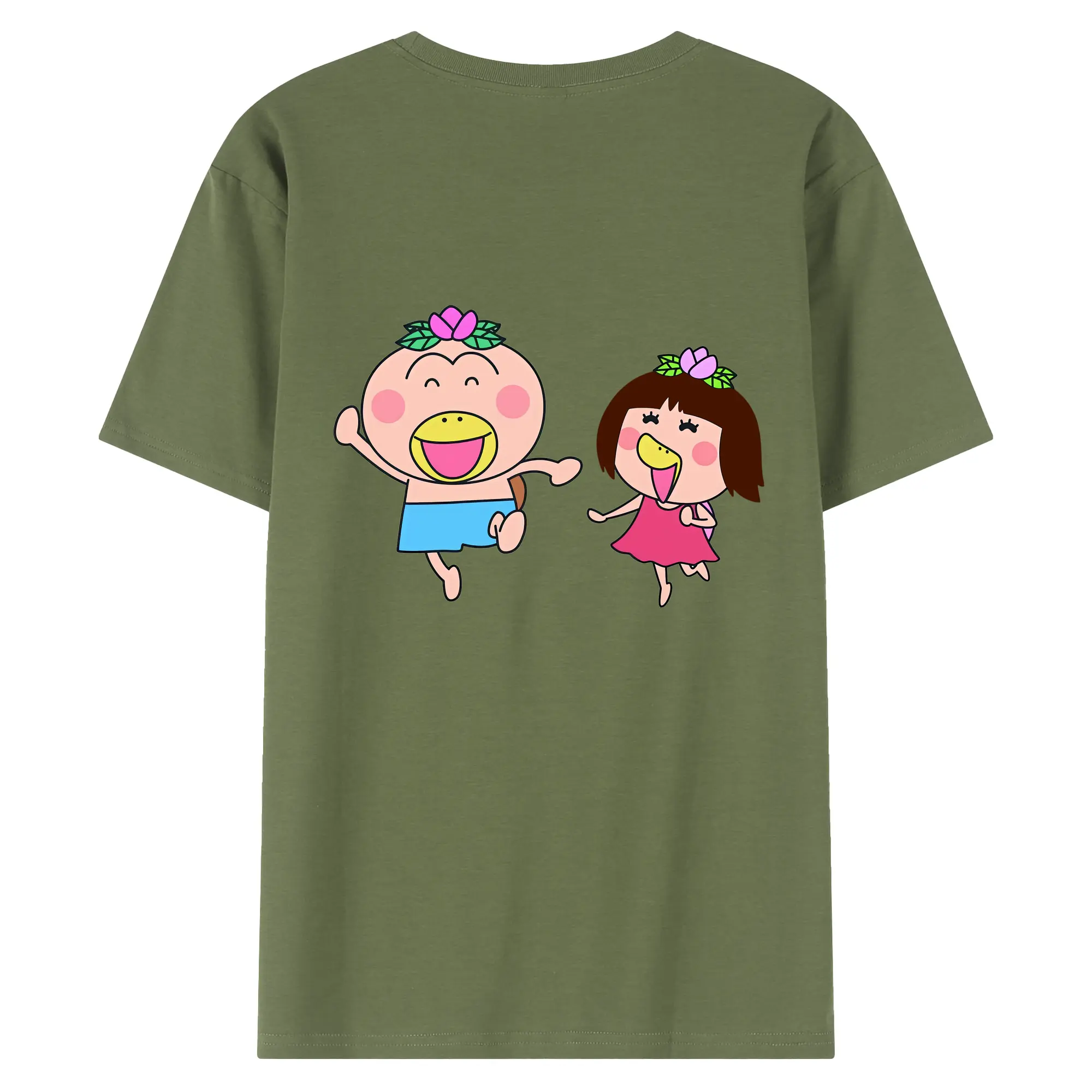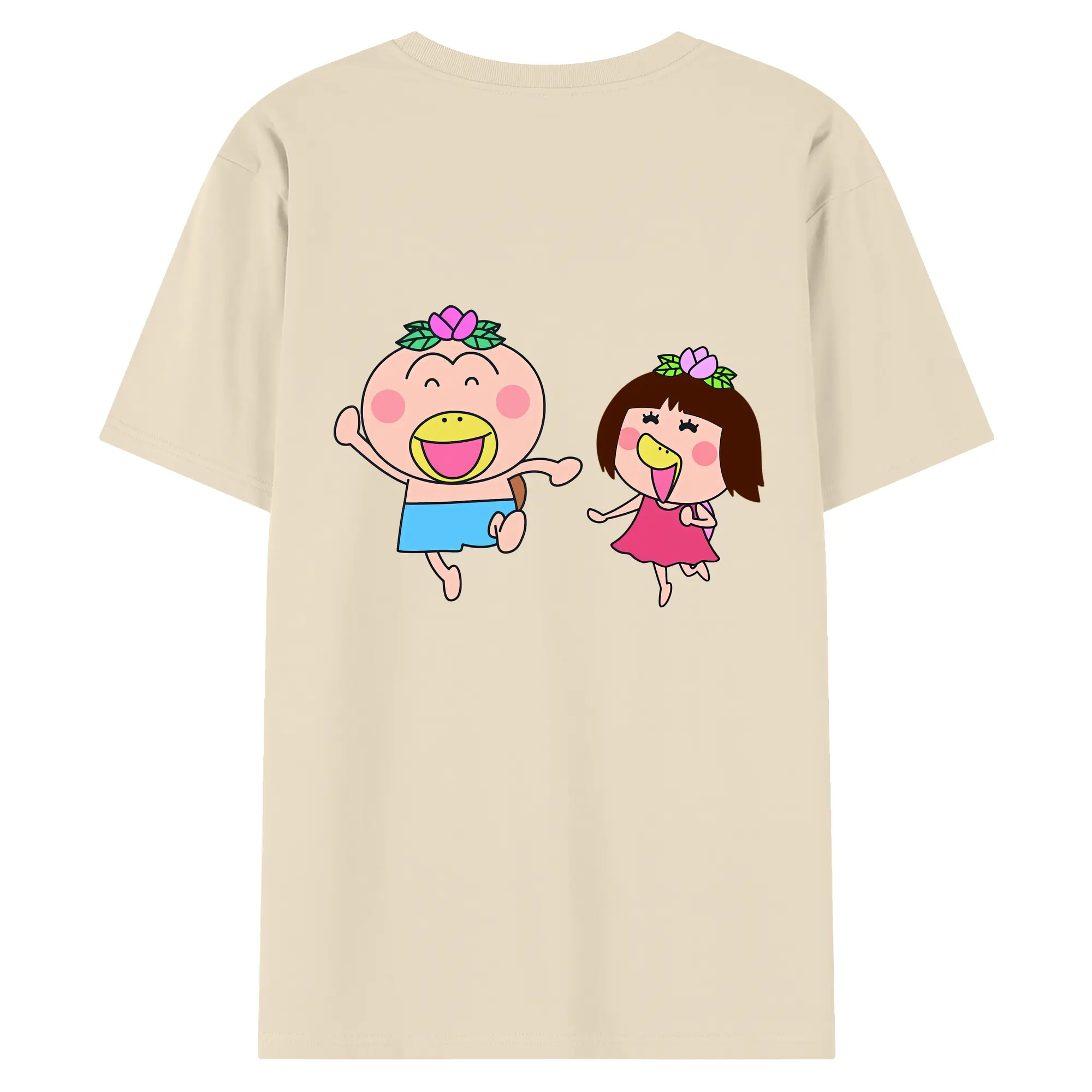 はなかっぱ グッズ,ももかっぱちゃん - 綿100% ヴィンテージ風 半袖Tシャツ ・ 背面プリント ・ 柔らか肌触り ・ 通気性 快適 ・ スポーツ カジュアル 外出用