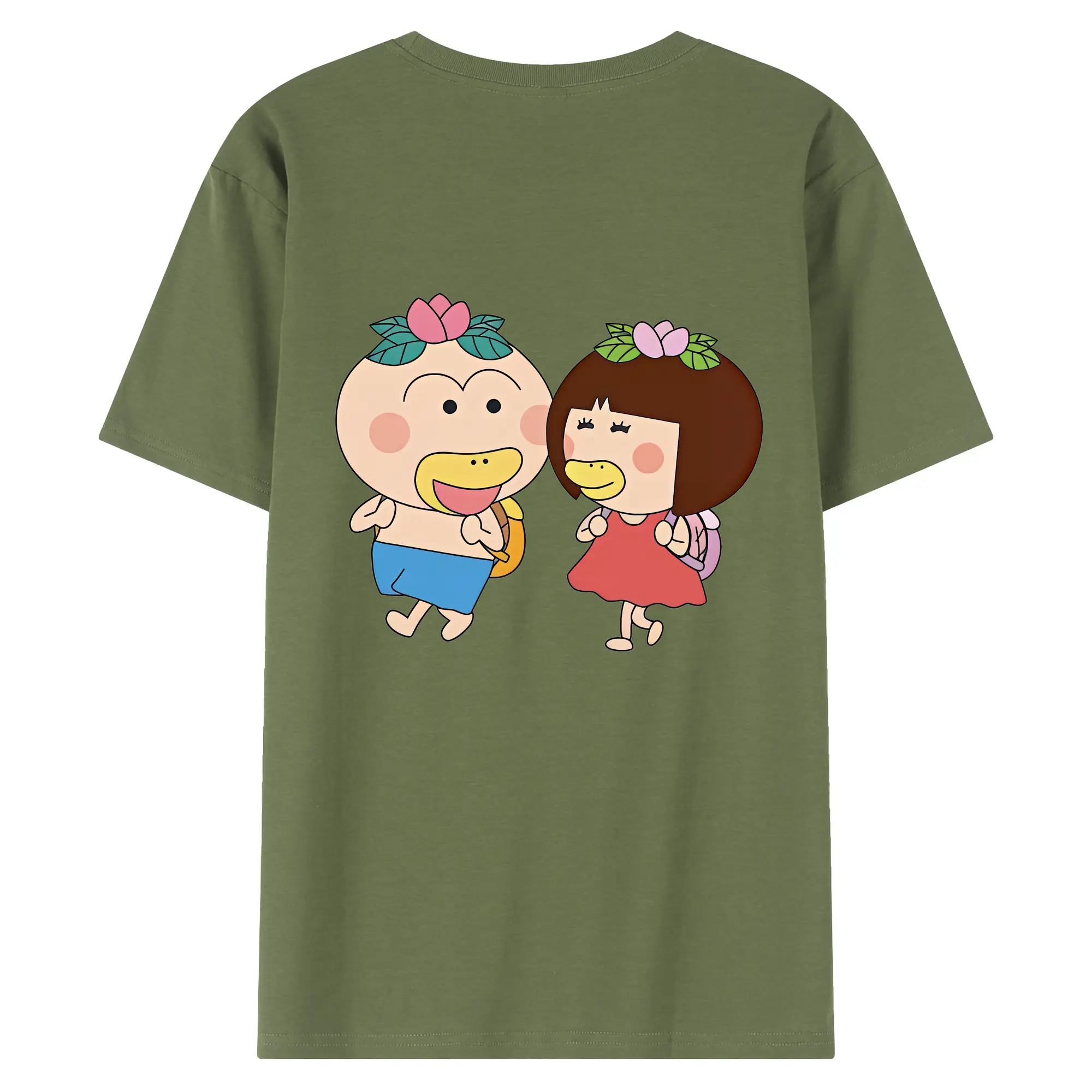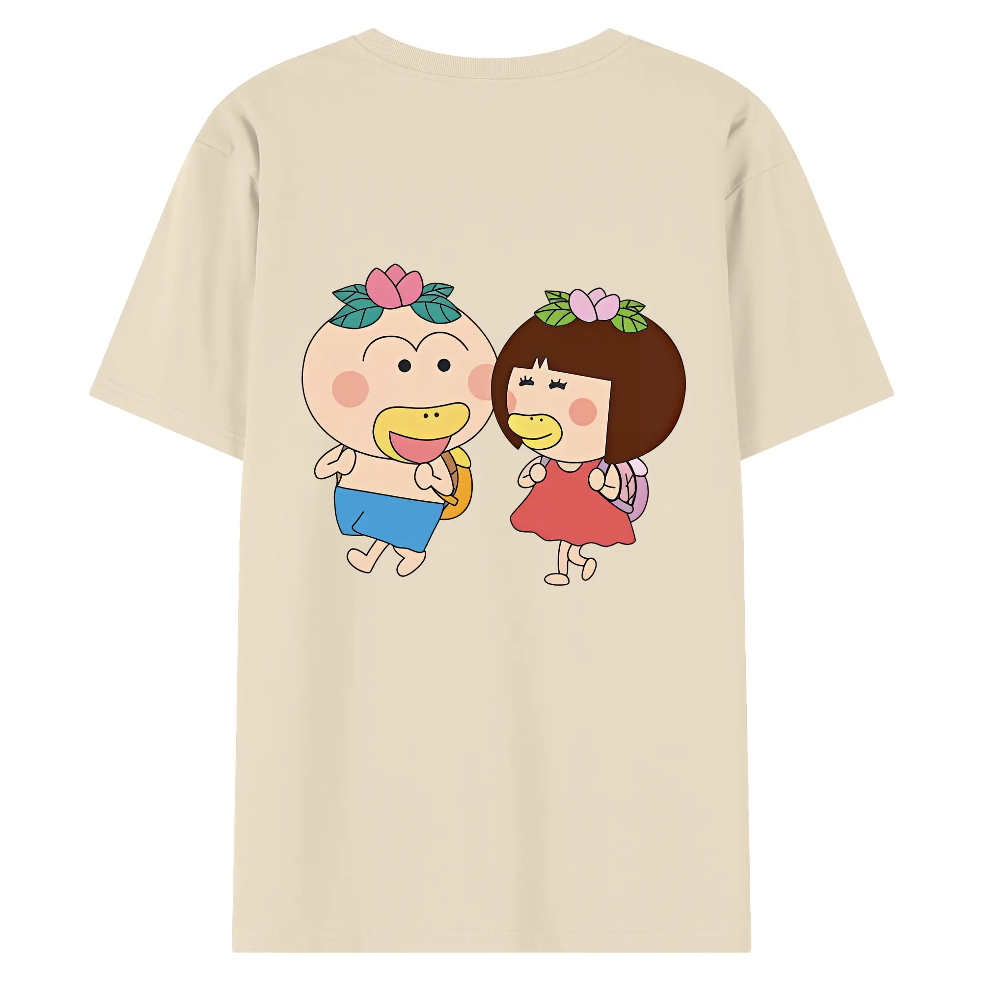 はなかっぱ グッズ,ももかっぱちゃん - 綿100% ヴィンテージ風 半袖Tシャツ ・ 背面プリント ・ 柔らか肌触り ・ 通気性 快適 ・ スポーツ カジュアル 外出用
