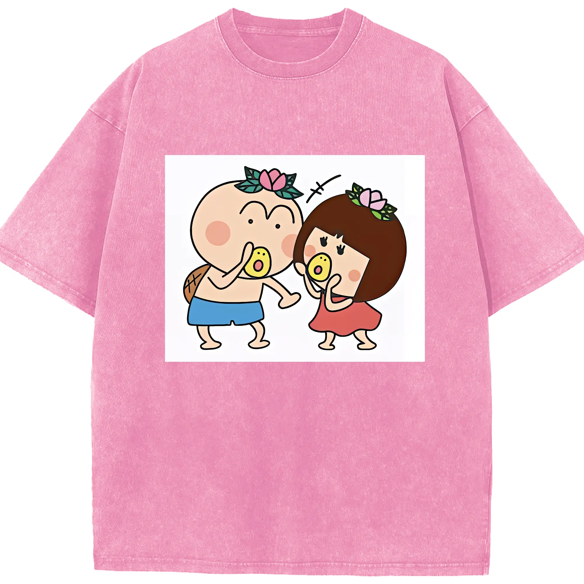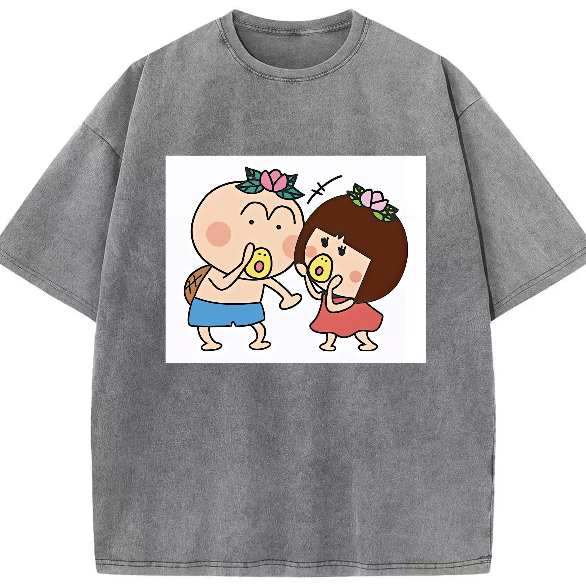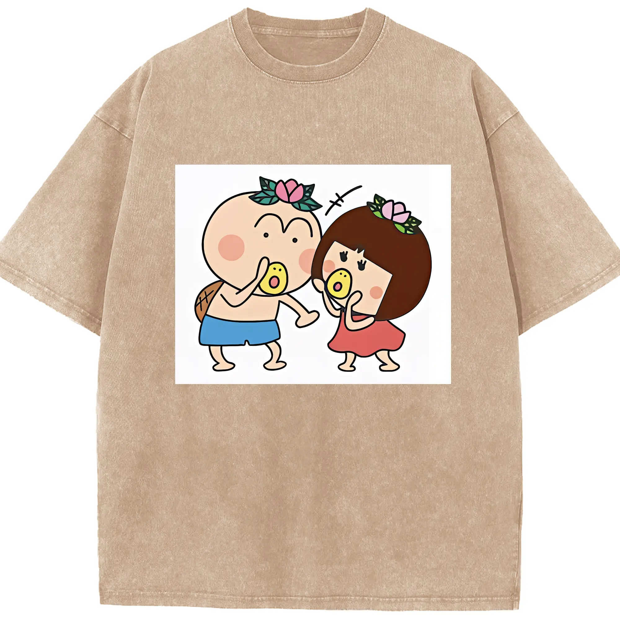 はなかっぱ グッズ,ももかっぱちゃん - 綿100% ヴィンテージ風 半袖Tシャツ ・ 背面プリント ・ 柔らか肌触り ・ 通気性 快適 ・ スポーツ カジュアル 外出用