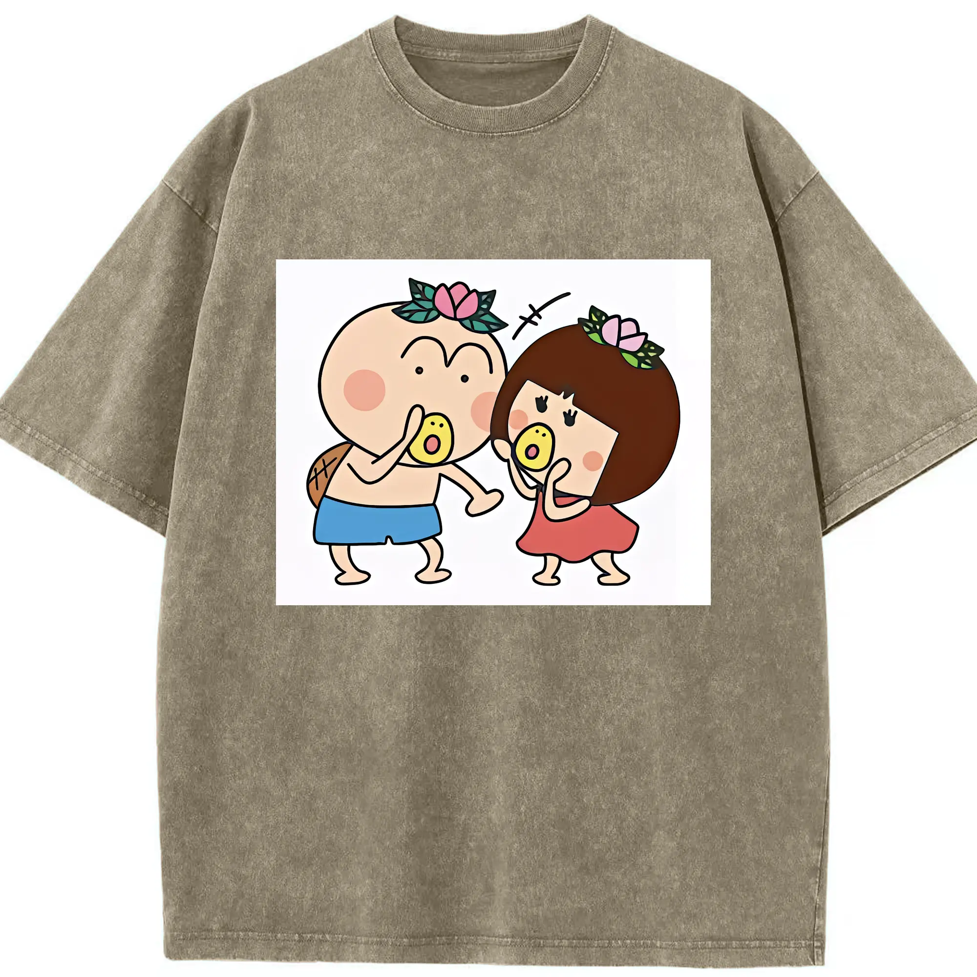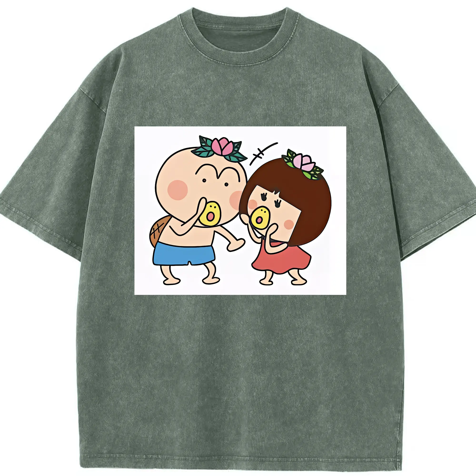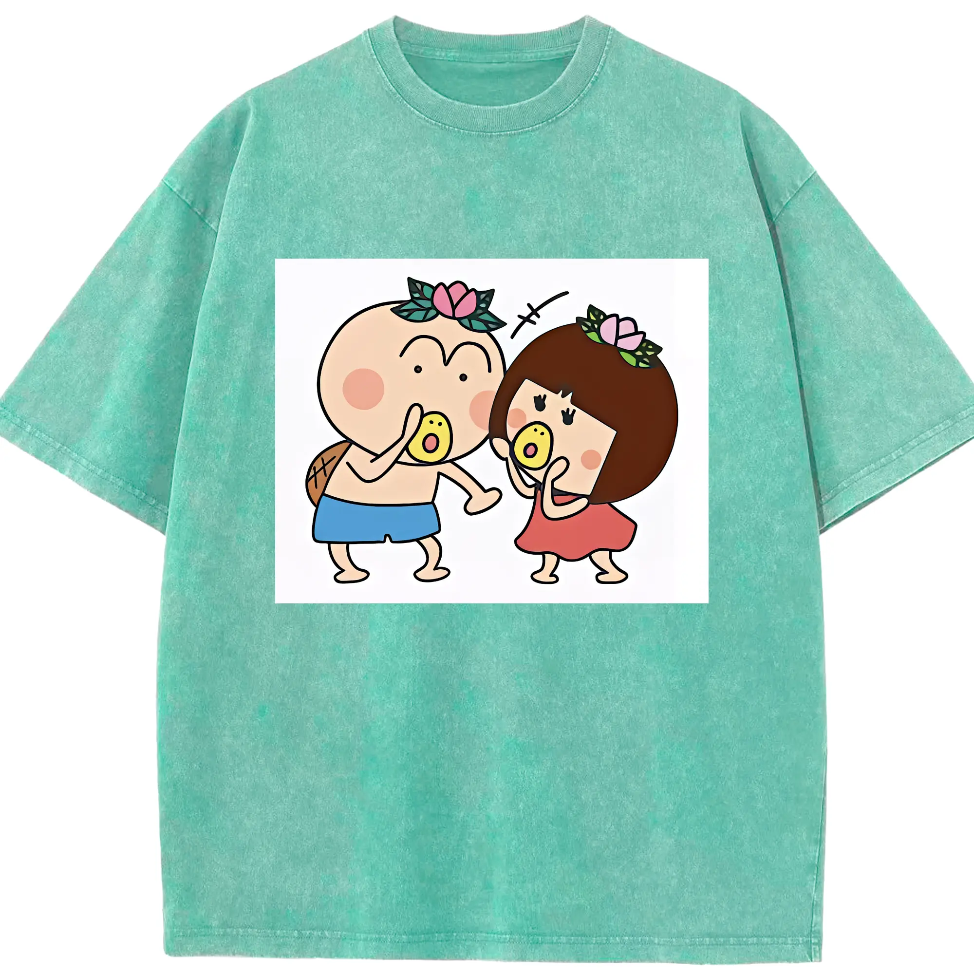 はなかっぱ グッズ,ももかっぱちゃん - 綿100% ヴィンテージ風 半袖Tシャツ ・ 背面プリント ・ 柔らか肌触り ・ 通気性 快適 ・ スポーツ カジュアル 外出用