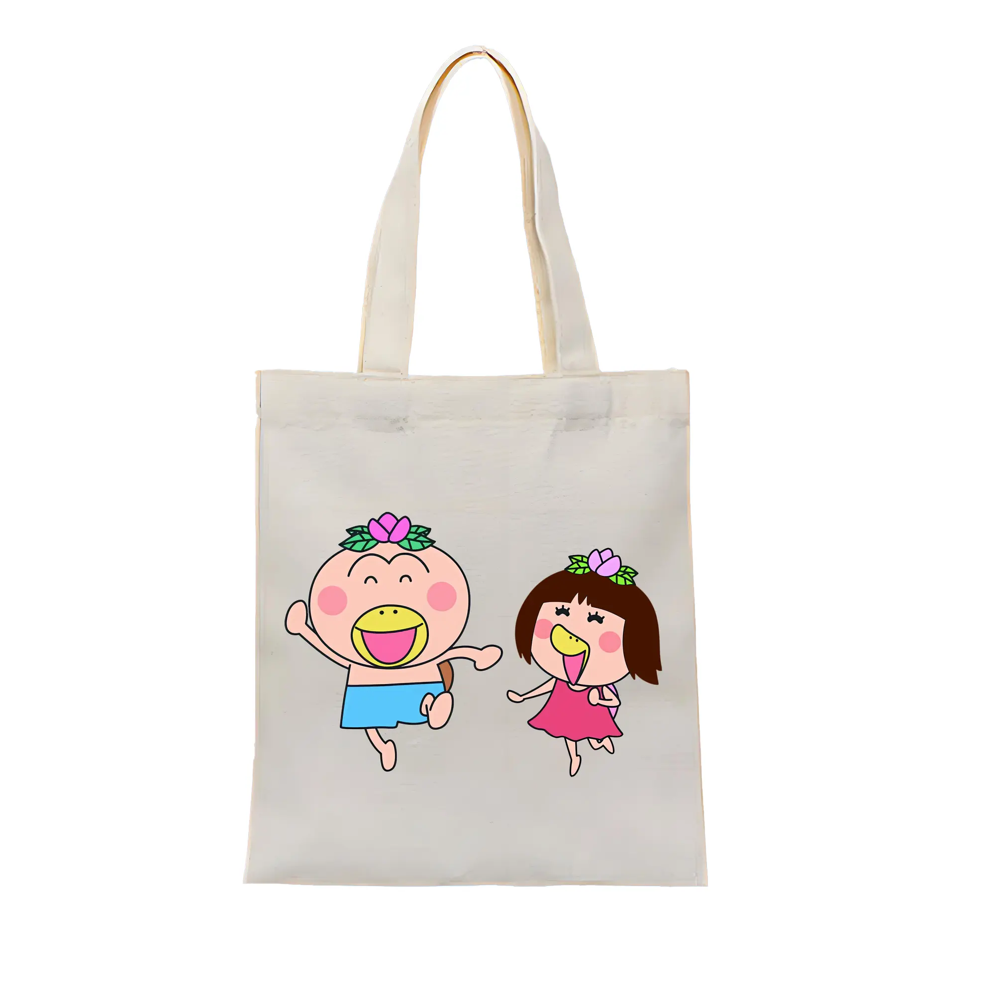 はなかっぱ グッズ,ももかっぱちゃん - 縦型キャンバス手提げバッグ(トートバッグ) ・ キャンバス素材 ・ ショッピング用 ・ 軽量 丈夫 お手入れ簡単